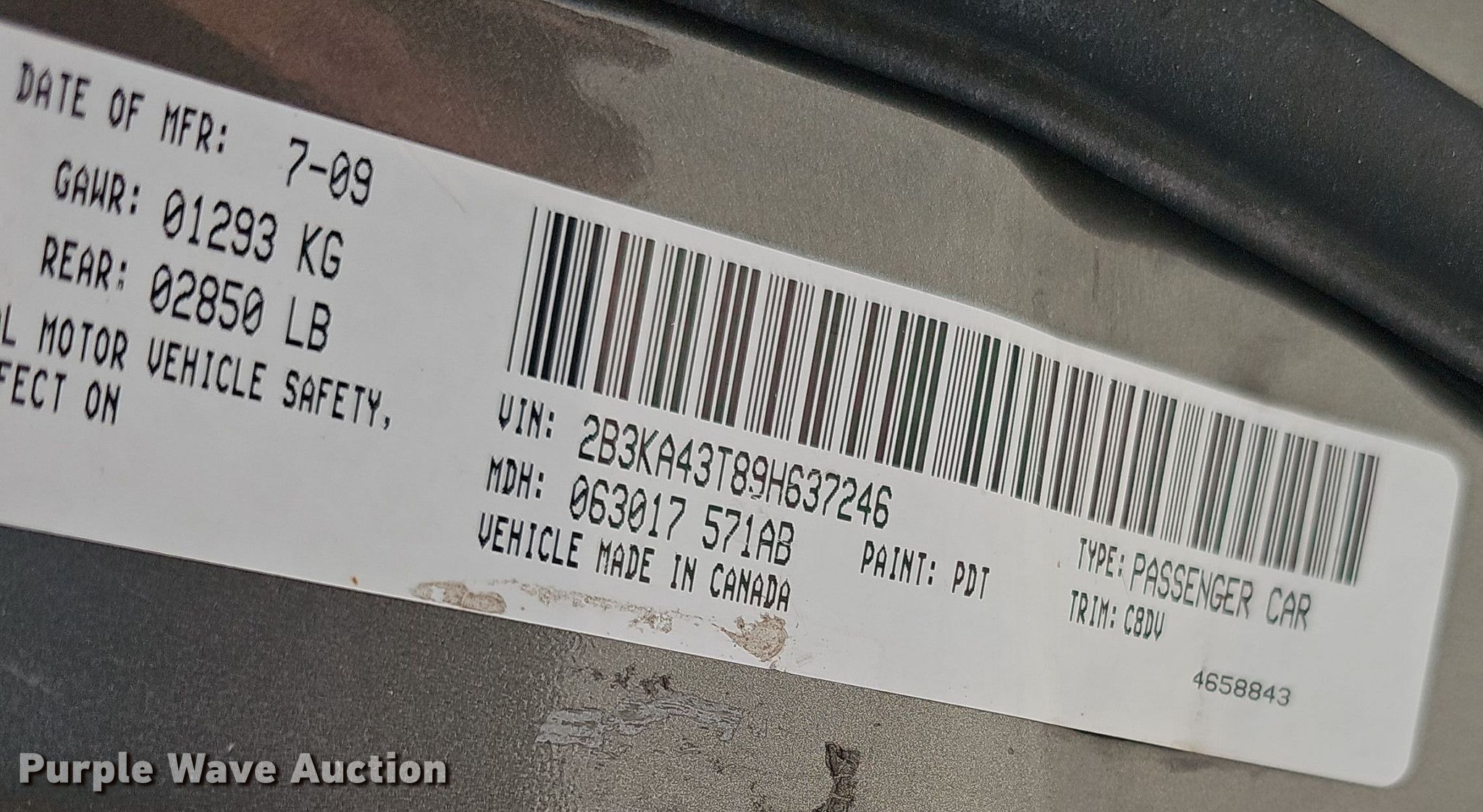 - VIN: 2B3KA43T89H637246