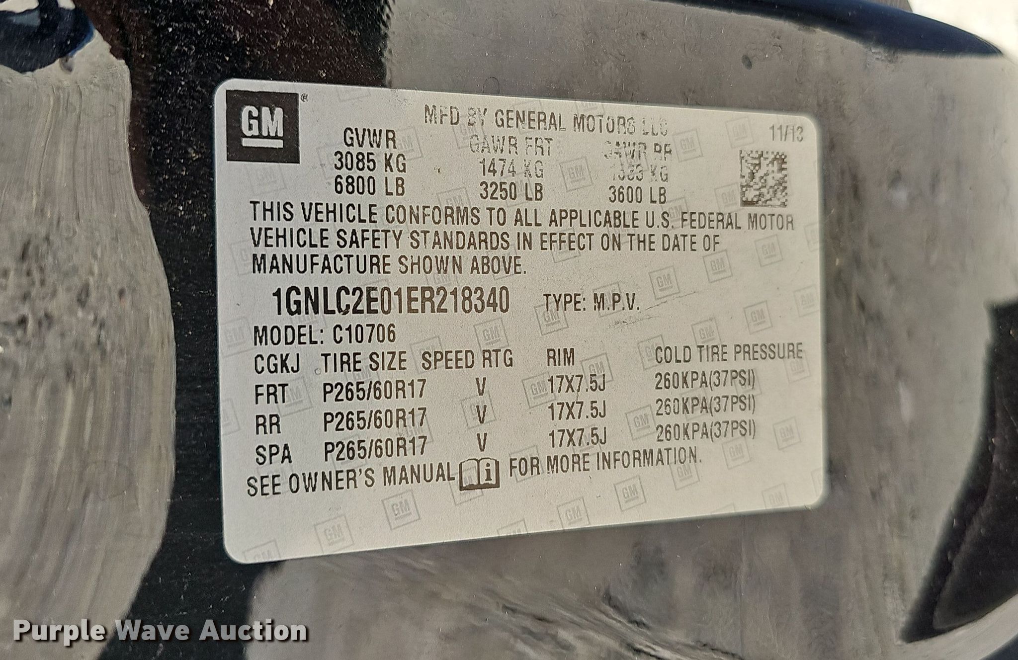 2014 Chevrolet Tahoe Police SUV. Miles: 188,647 on odometer, VIN: 1GNLC2E01ER218340, Unit #: 50995. Engine Displacement: 5.3L V8 OHV, Cylinders: 8, Fuel type: Gas. Transmission Automatic. Interior AC, Heat, Seat: Power driver, Power passenger, Power windows, Power locks, Cruise control. Tires Size: 265/60R17. Arkansas title. Title distribution may be delayed up to 14 days from verification of funds. Benton County. Bentonville, AR 72712