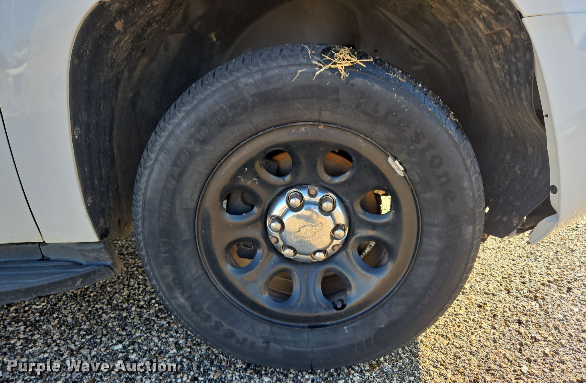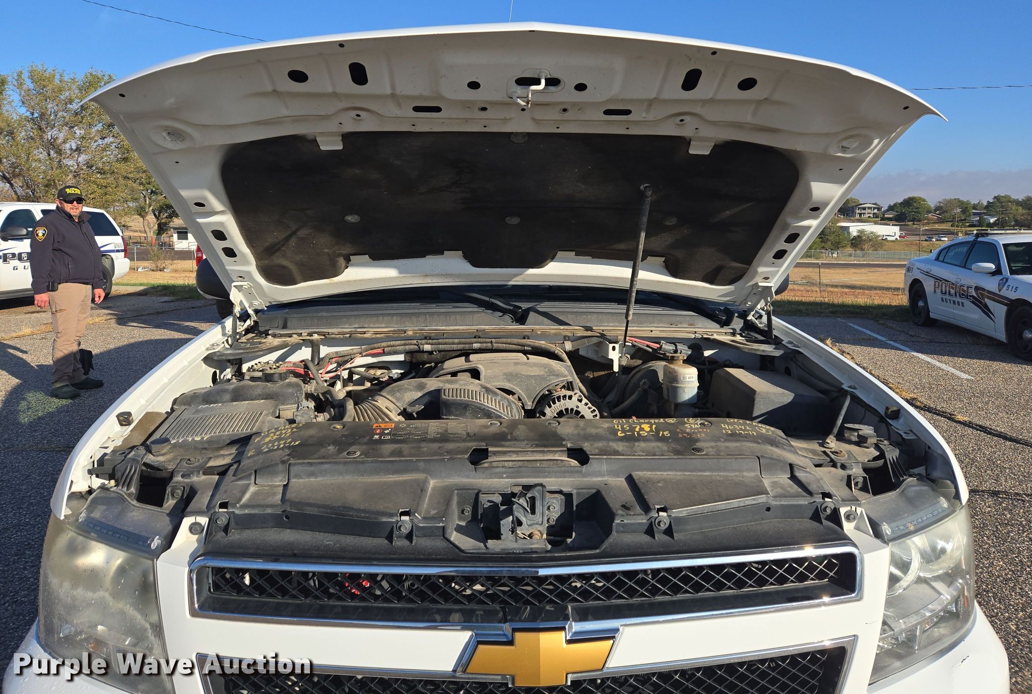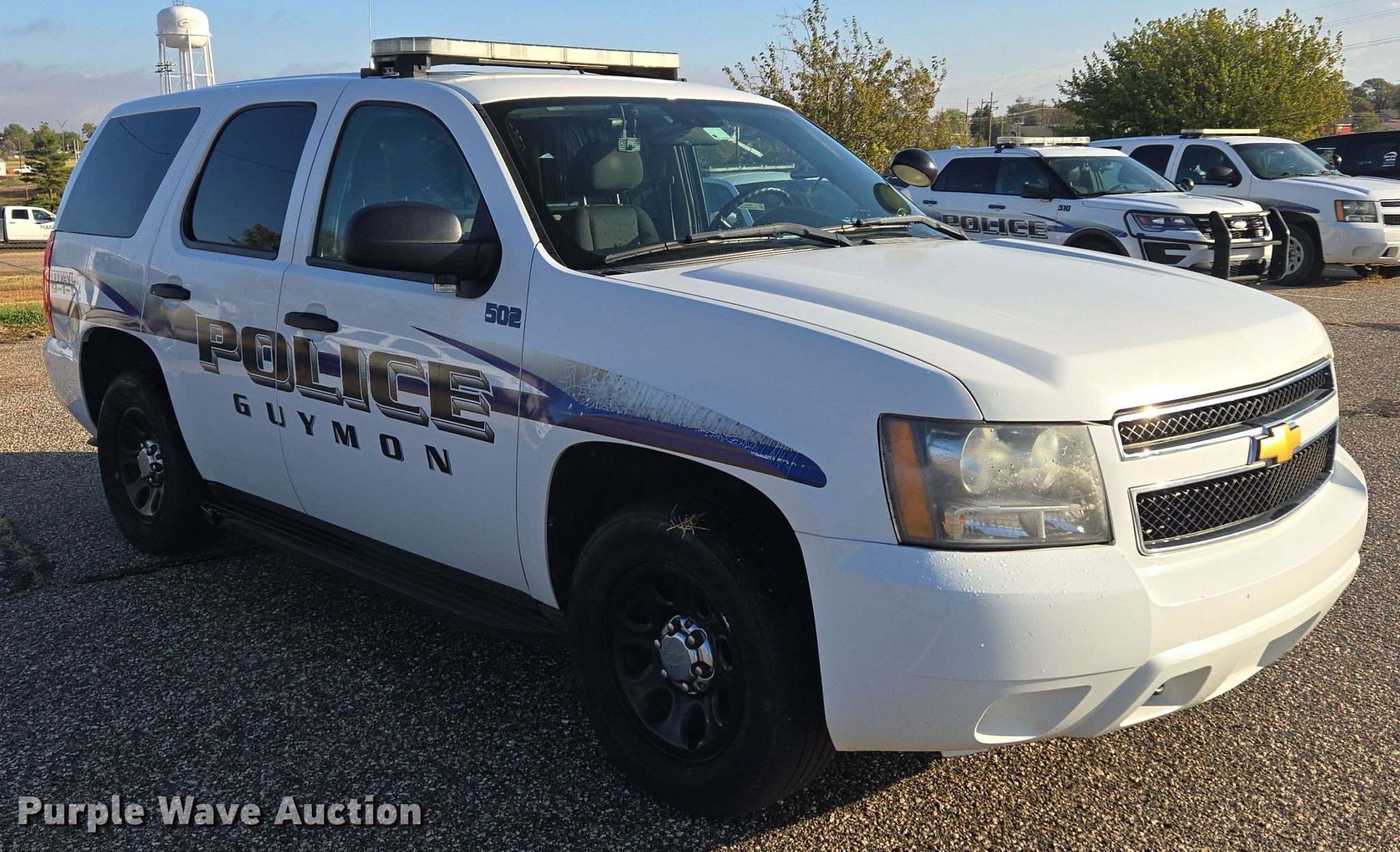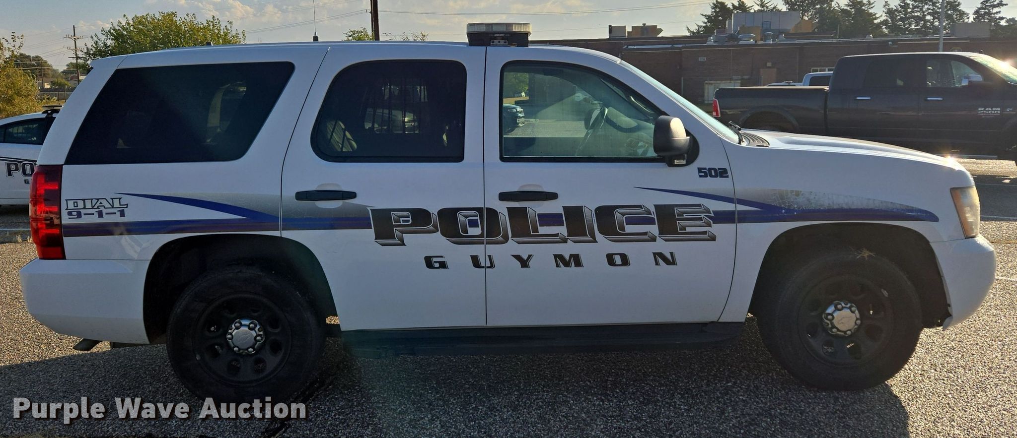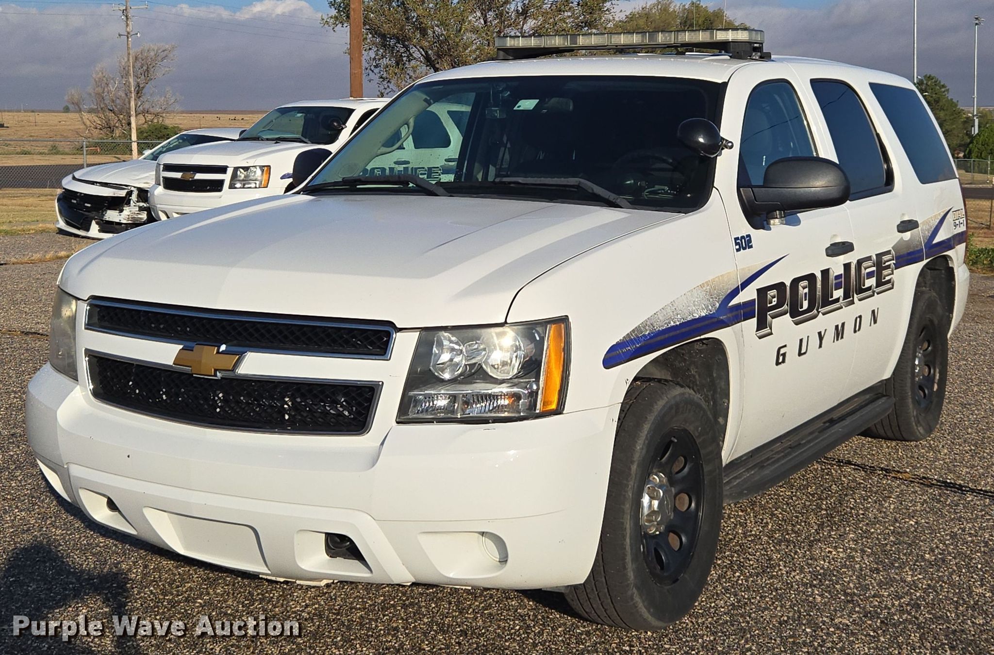 2012 Chevrolet Tahoe Police SUV. VIN: 1GNLC2E01CR281290, Unit #: 502. Engine Displacement: 5.3L V8 OHV, Cylinders: 8, Fuel type: Gas. Transmission Automatic. Interior AC, Heat, Power windows, Power locks, Cruise control. Tires Size: 265/60R17. Notes Law enforcement equipment will be removed prior to auction, Dash warning indicator: TPMS, Dead battery. Oklahoma title. Title distribution may be delayed up to 30 days from verification of funds. City of Guymon, OK. Guymon, OK 73942