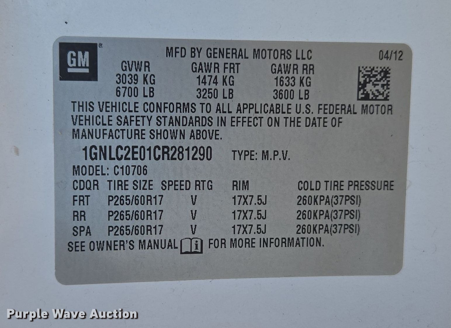 Purple Wave is selling a used Passenger Vehicle in Oklahoma. This item is a 2012 Chevrolet Tahoe Police SUV with the following: VIN: 1GNLC2E01CR281290, Unit #: 502