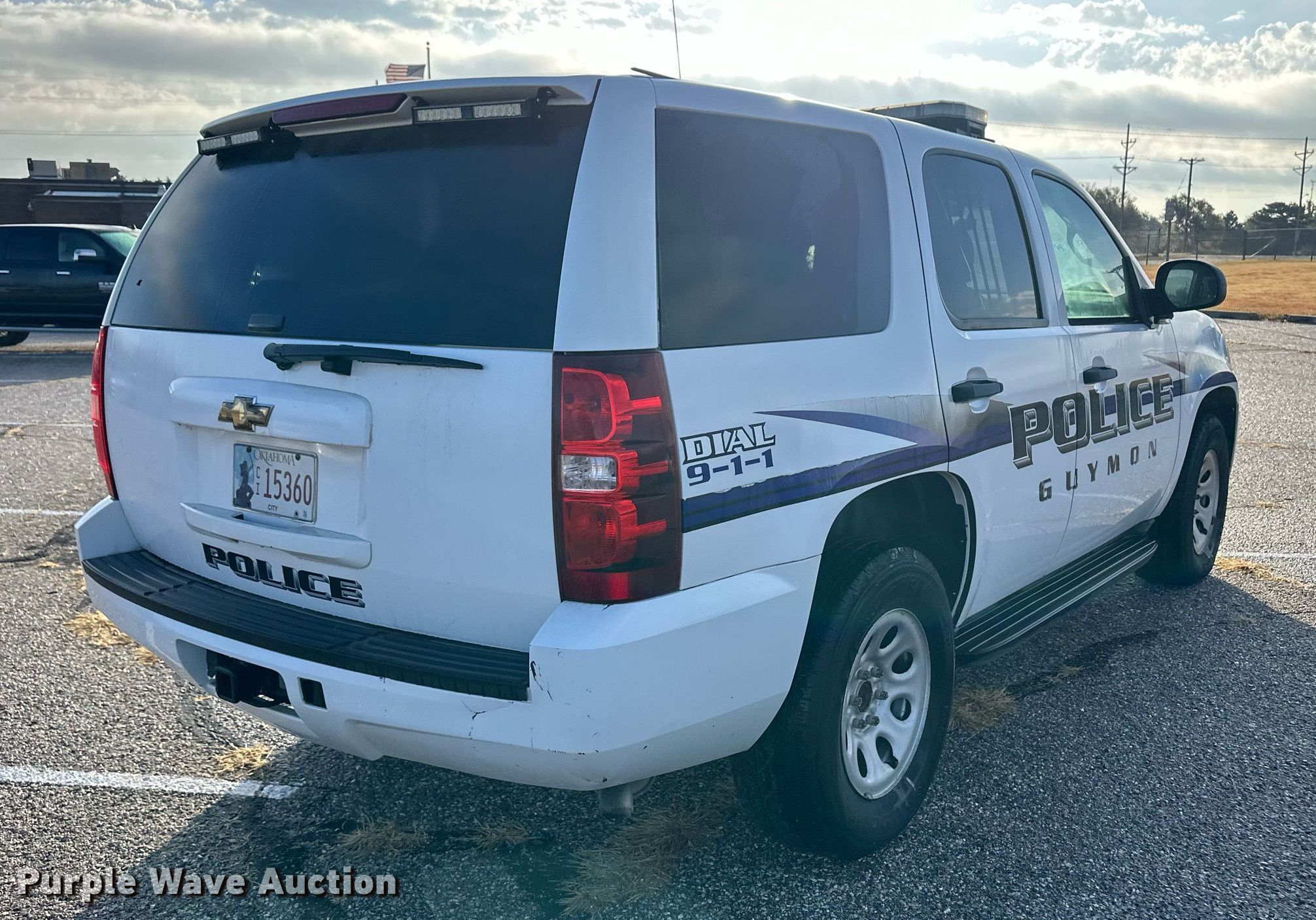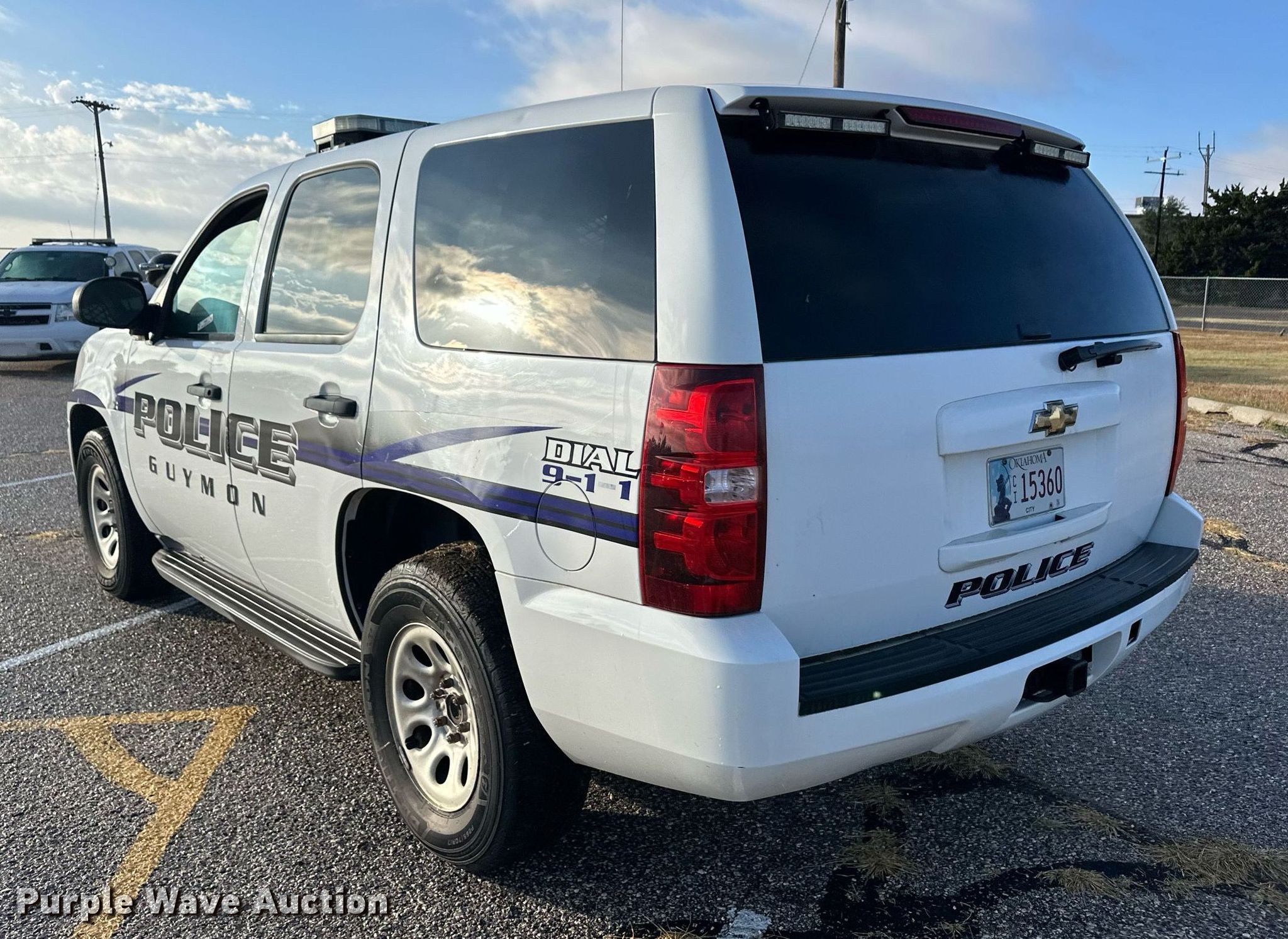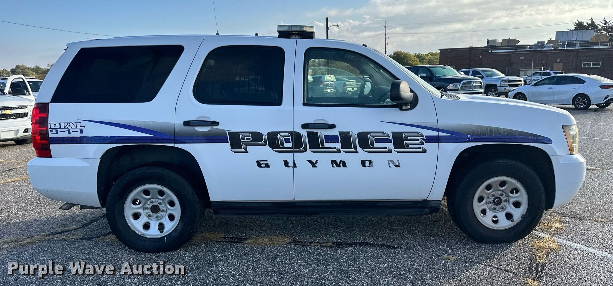 2011 Chevrolet Tahoe Police SUV. Miles: 88,769 on odometer, VIN: 1GNSK2E02BR247095, Unit #: 549. Engine Displacement: 5.3L V8 OHV, Cylinders: 8, Fuel type: Gas. Transmission Automatic. Interior AC, Heat, Seat: Power driver, Power windows, Power locks, Cruise control. Tires Size: 265/70R17. Notes Law enforcement equipment will be removed prior to auction, Dead battery. Oklahoma title. Title distribution may be delayed up to 30 days from verification of funds. City of Guymon, OK. Guymon, OK 73942