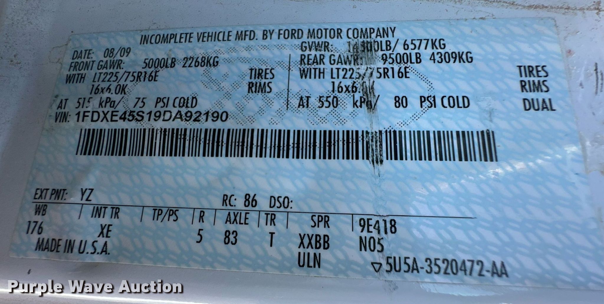 2009 Ford E450 shuttle bus. Miles: 124,727 on odometer, VIN: 1FDXE45S19DA92190, Unit #: 1316. Engine Displacement: 6.8L, Cylinders: 10, Fuel type: Gas. Transmission Automatic. Chassis Axles: Single, Suspension: Spring, Brakes: Hydraulic. Interior AC, Heat, Cruise control, Passengers: 16, Wheelchair lift. Tires Size: 225/75R16. Notes Dash warning indicator: Check engine, Dead battery. Oklahoma title. Title distribution may be delayed up to 30 days from verification of funds. City of Guymon, OK. Guymon, OK 73942