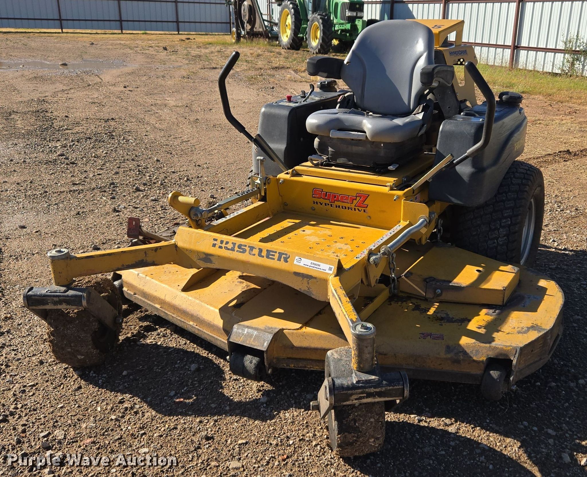 Purple Wave is selling a used Commercial Turf Mower in Oklahoma. This item is a 2014 Hustler Super Z ZTR lawn mower with the following: Hours: 1,967 on meter, Cutting width: 72", Serial: 14094659