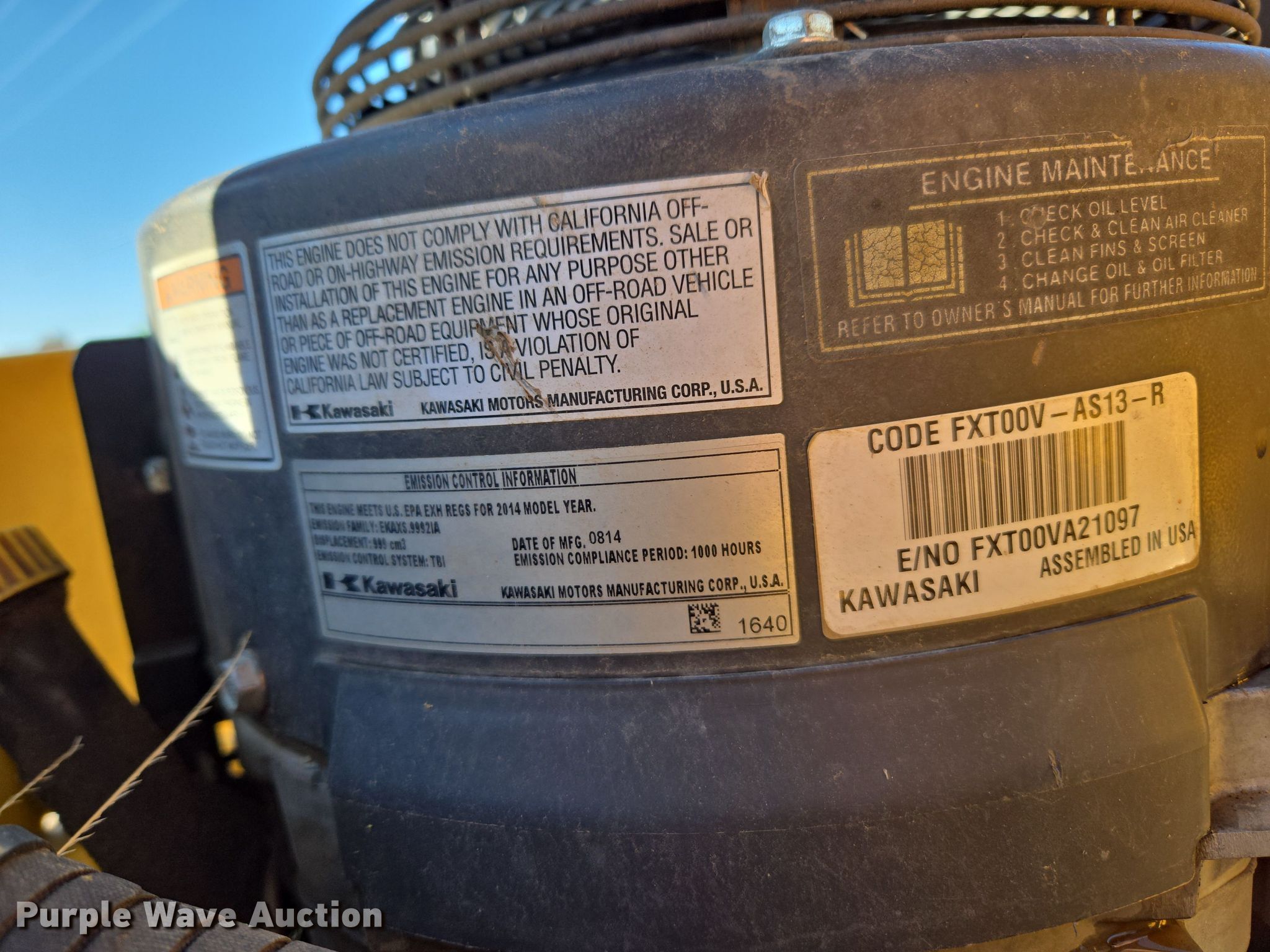 2014 Hustler Super Z ZTR lawn mower. Hours: 1,967 on meter, Cutting width: 72", Serial: 14094659. Engine Kawasaki, Serial: FXT00VA21097, Cylinders: 2, Fuel type: Gas. Transmission Hydrostatic. Tires Front: 13x6.50-6, Rear: 26x12.00-12. Notes Non-operational mower deck. City of Guymon, OK. Guymon, OK 73942