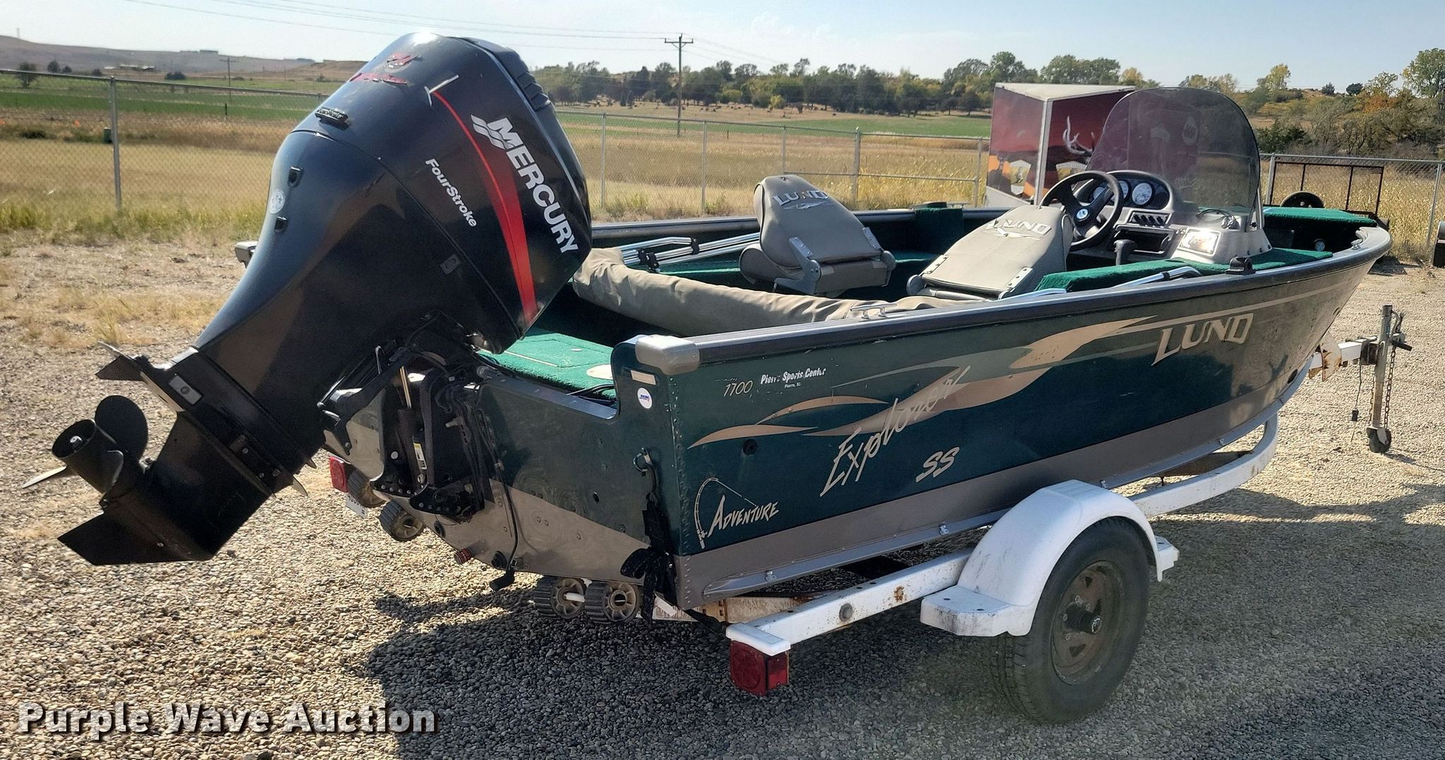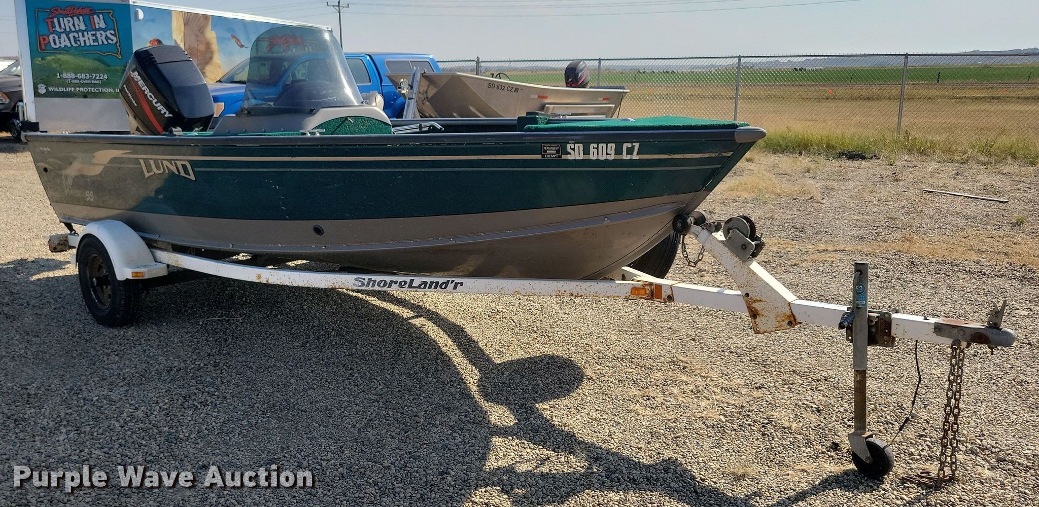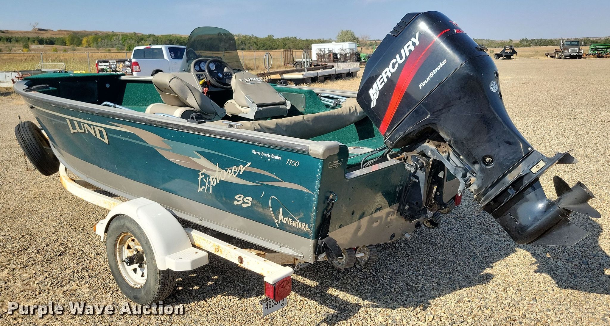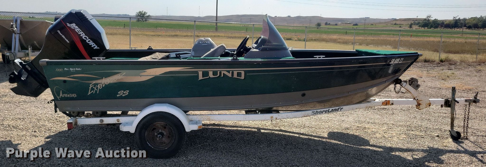 2004 Lund 1700 Explorer SS Adventure boat. Length: 17', Hull ID: US-LUNCE298F304. Engine Engine type: Outboard, Mercury Marine, Displacement: 1,596 cc, Cylinders: 4, Fuel type: Gas, HP: 75, Outdrive Propeller: Aluminum. Operators station Capacity Person: 6, 985 lbs. Features Bimini top. Trailer 2004 Midwest ShoreLand'r, VIN: 1MDAHKR154A254536, GVWR: 2,720 lbs, Ball hitch size: 2", Axles: Single, Tire size: ST175/80R13. Notes Possible engine issues, white smoke. Boat - South Dakota title. Trailer - South Dakota title. Motor - Transfer of ownership documentation will be a bill of sale. South Dakota title. South Dakota Game Fish and Parks. Fort Pierre, SD 57532