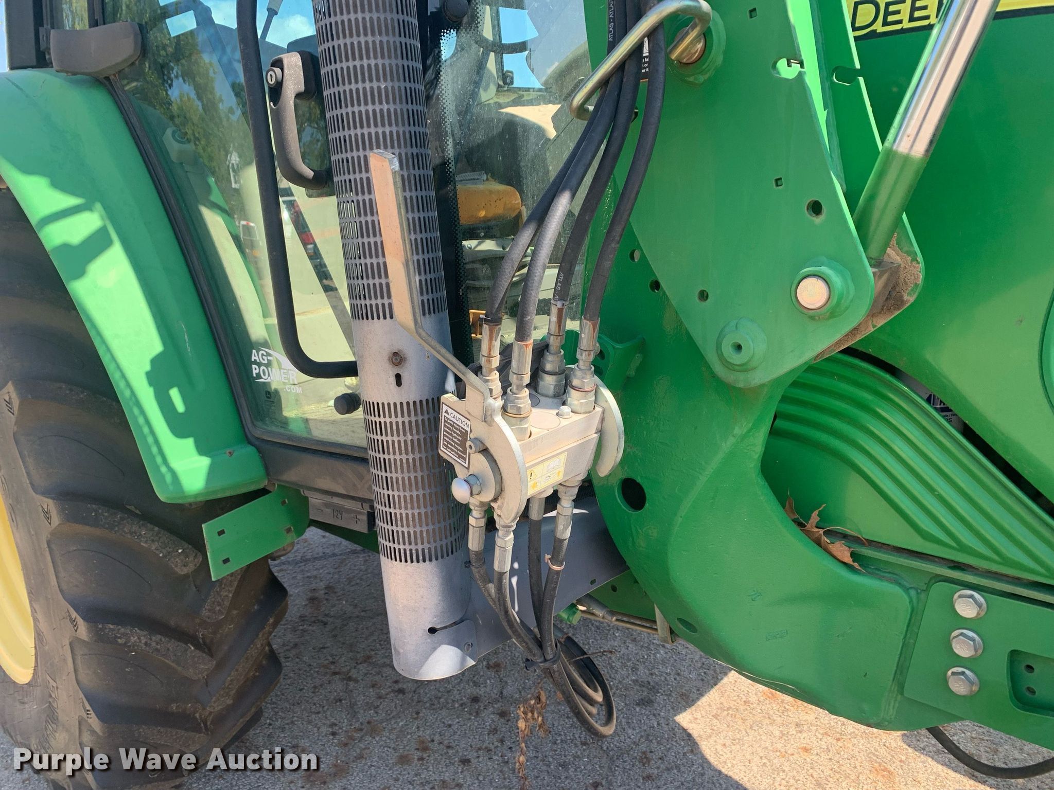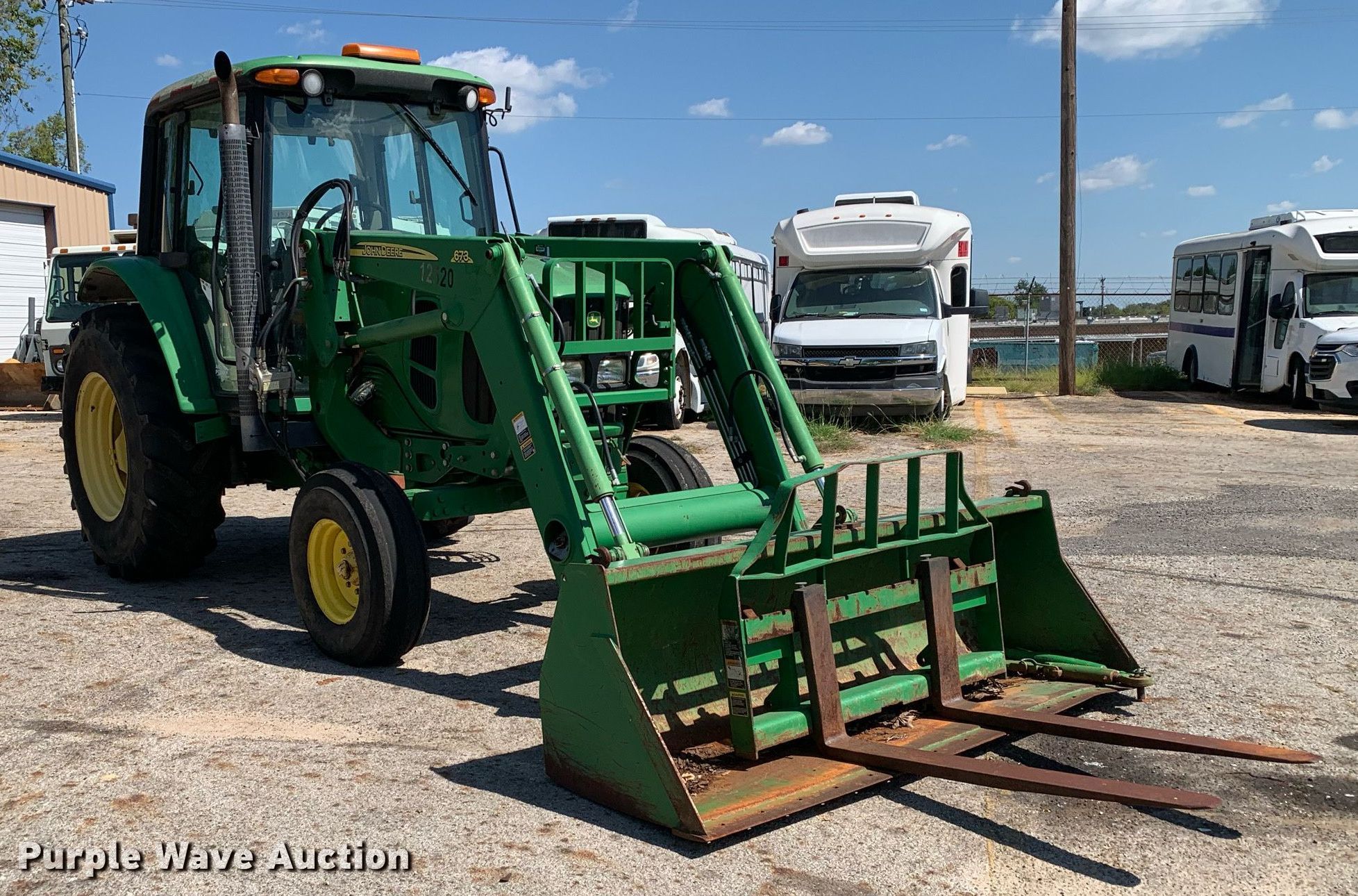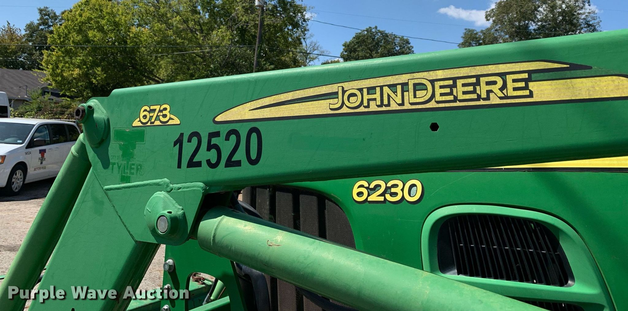 John Deere 6230 tractor. Hours: 3,756 on meter, Serial: TL17070398W12, Unit #: 12520. Engine John Deere, Cylinders: 4, Fuel type: Diesel. Transmission Synchro, 16F - 16R, Left-hand reverser, Differential lock. Operators station AC, Heat. Features PTO: 540, Hitch: Three point, Seven pin outlet, Hydraulic remote sets Rear: 2, Loader John Deere 673, Controls: Joystick, Bucket Width: 86", Forks Length: 48". Tires Front: 10.00-16, Rear: 460/85R30. City of Tyler, TX. Tyler, TX 75702