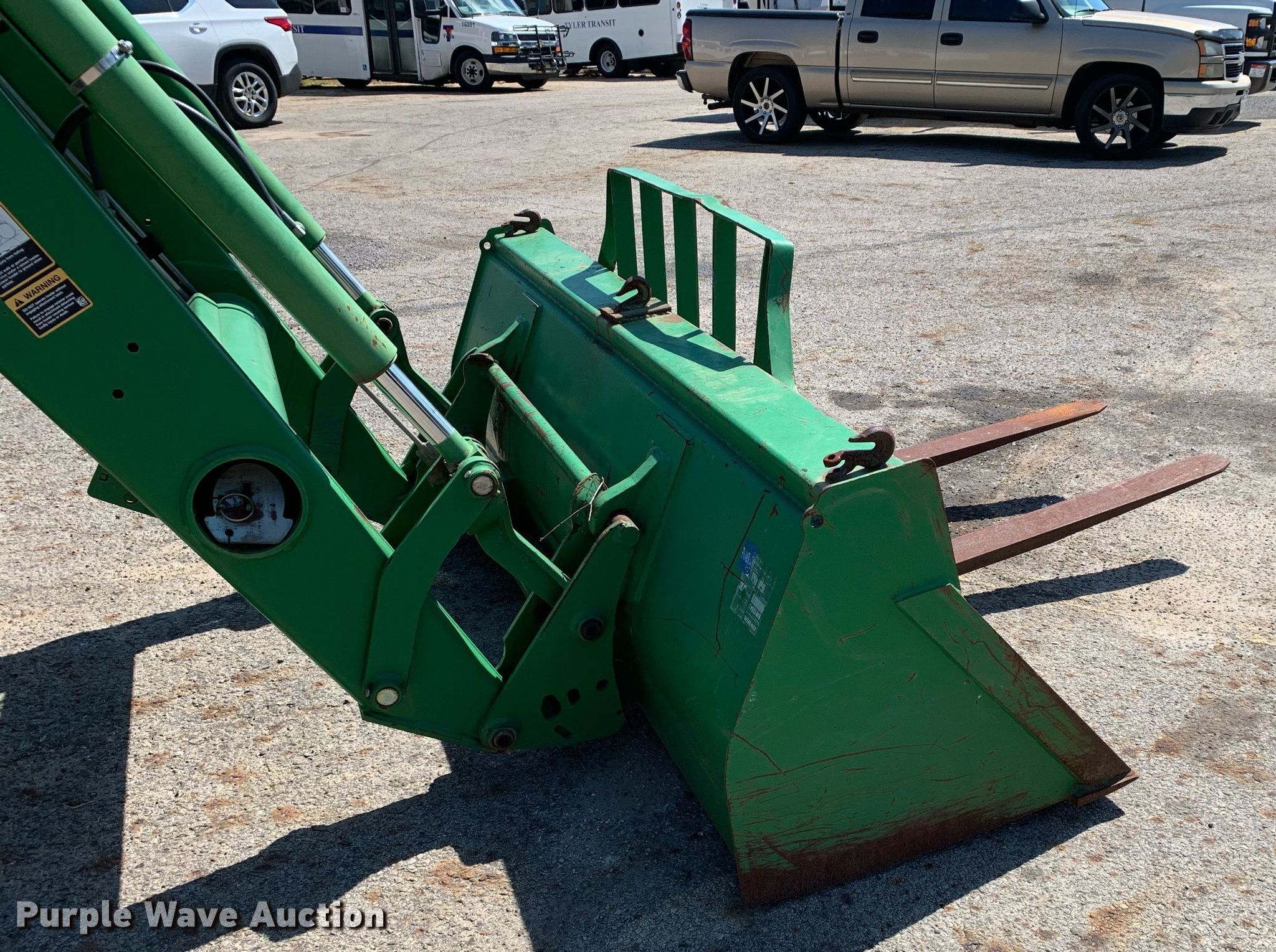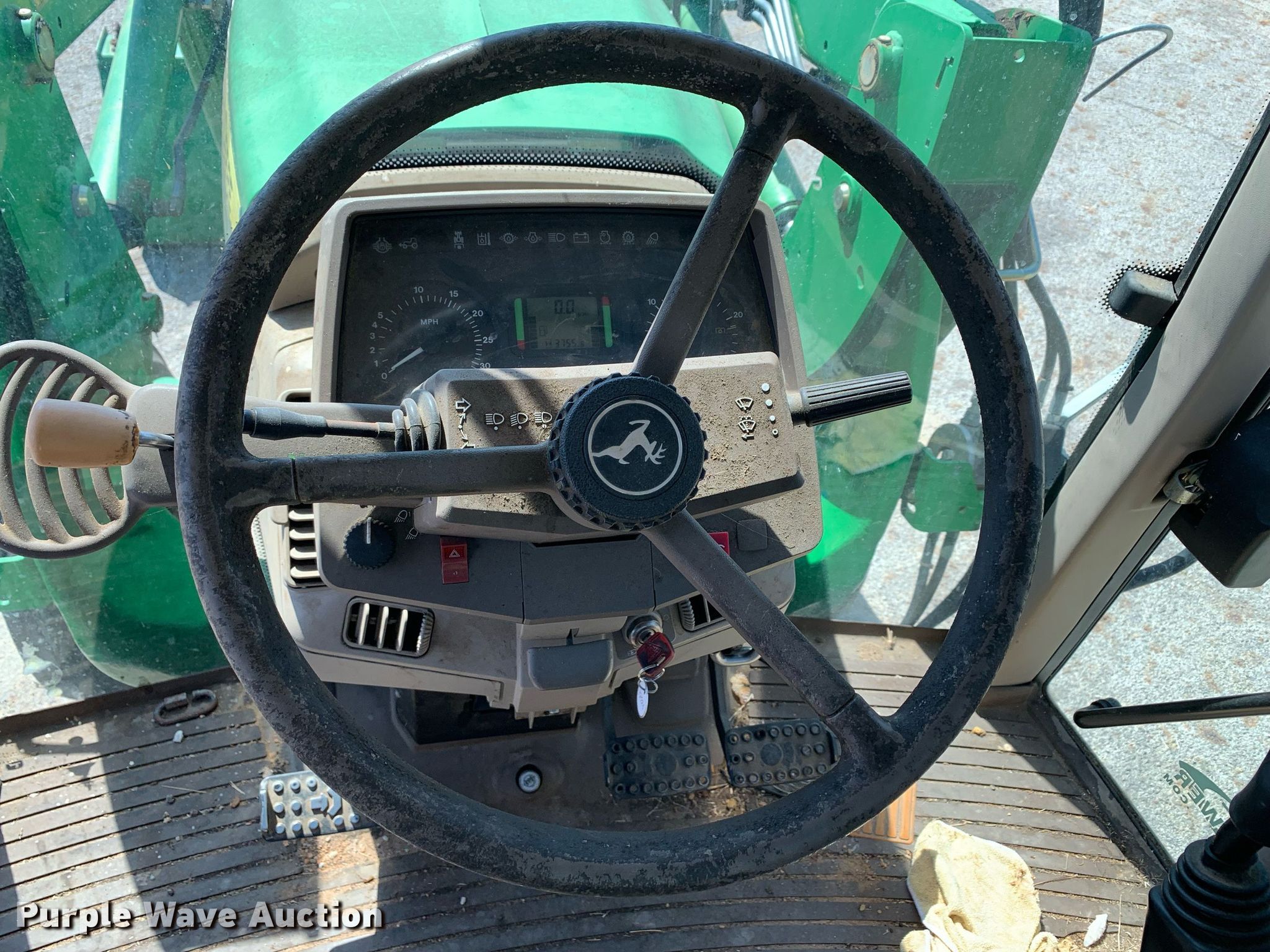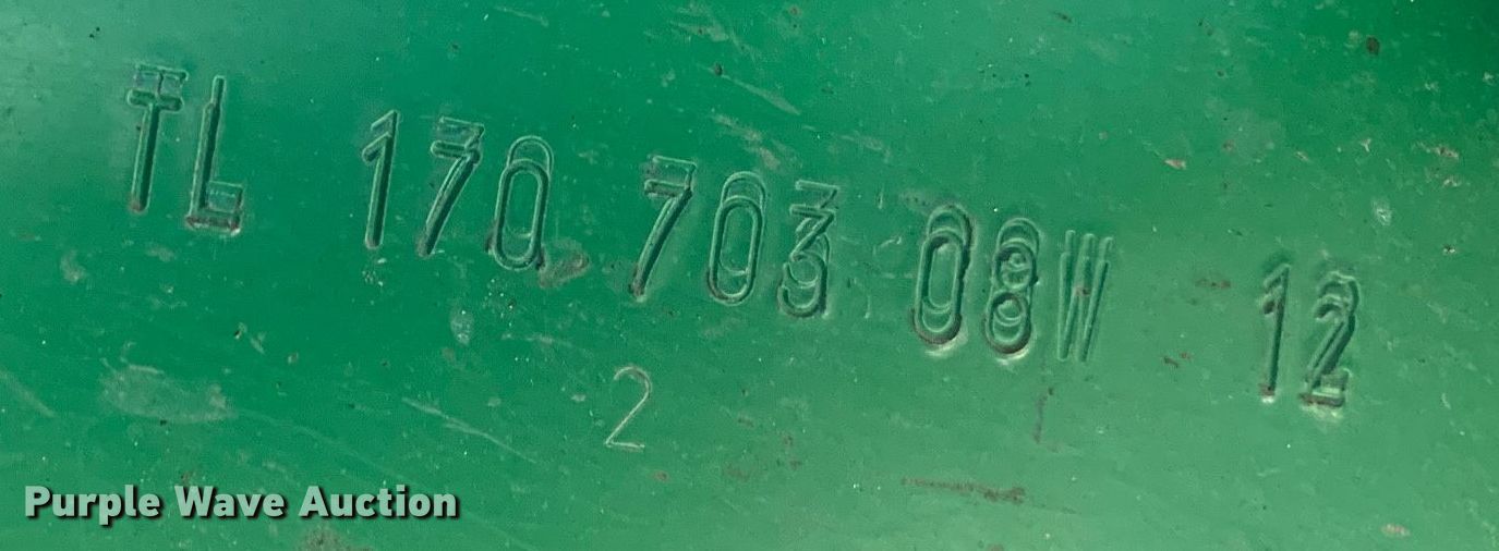 John Deere 6230 tractor. Hours: 3,756 on meter, Serial: TL17070398W12, Unit #: 12520. Engine John Deere, Cylinders: 4, Fuel type: Diesel. Transmission Synchro, 16F - 16R, Left-hand reverser, Differential lock. Operators station AC, Heat. Features PTO: 540, Hitch: Three point, Seven pin outlet, Hydraulic remote sets Rear: 2, Loader John Deere 673, Controls: Joystick, Bucket Width: 86", Forks Length: 48". Tires Front: 10.00-16, Rear: 460/85R30. City of Tyler, TX. Tyler, TX 75702