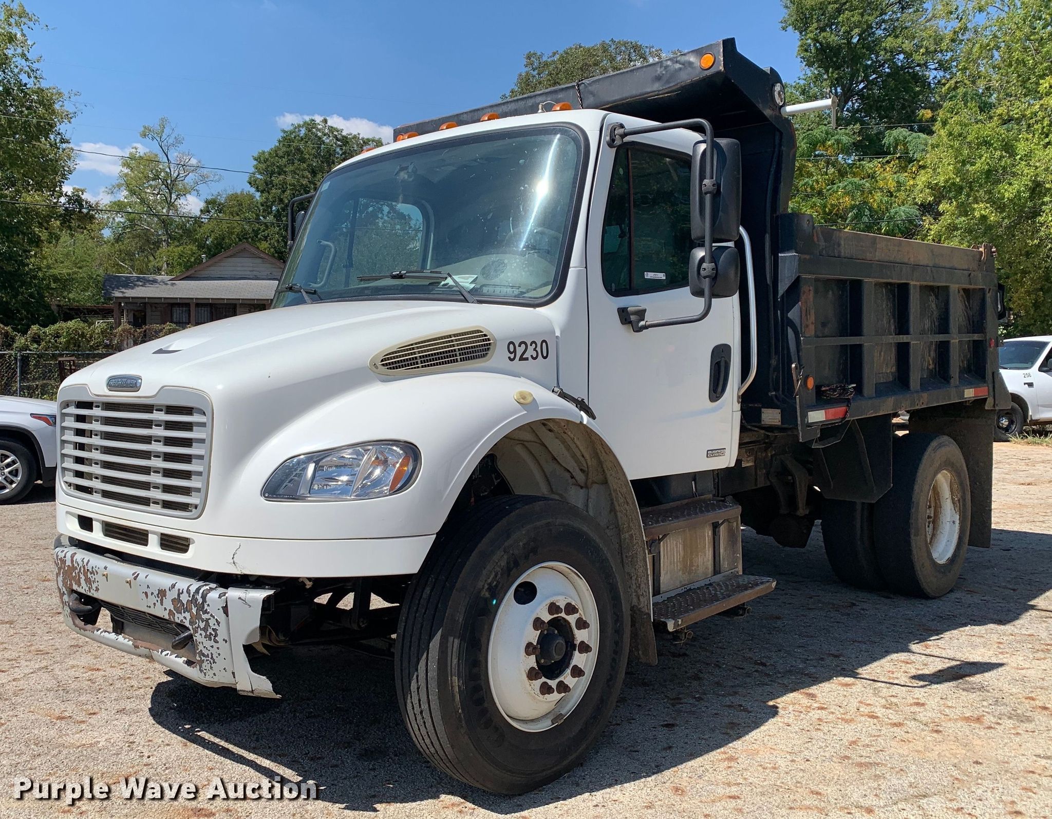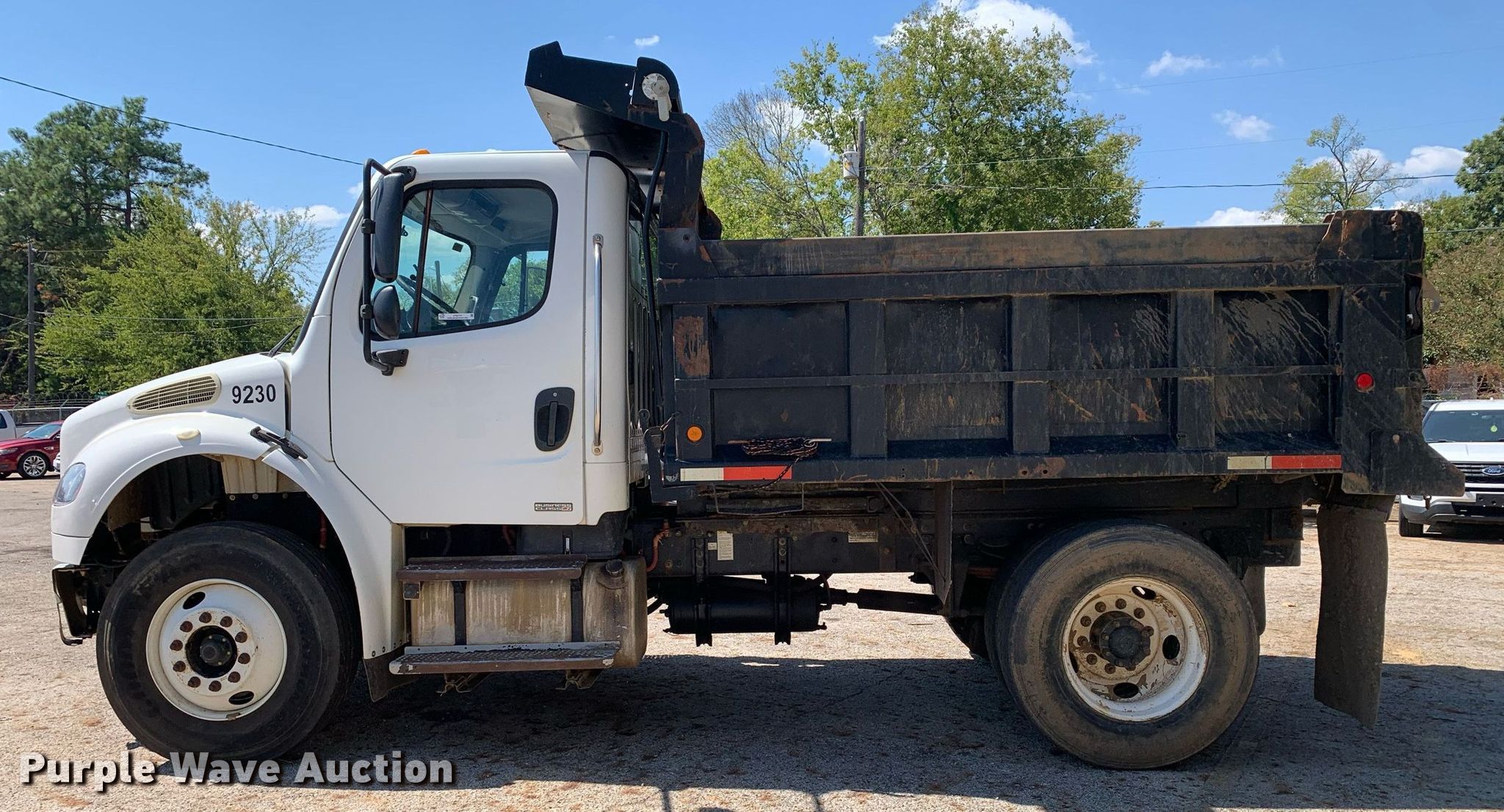 Purple Wave is selling a used Construction Dump Truck in Texas. This item is a 2009 Freightliner Business Class M2 dump truck with the following: Miles: 77,842 on odometer, Hours: 9,636 on meter, VIN: 1FVACXBS09DAK0779, Unit #: 9230