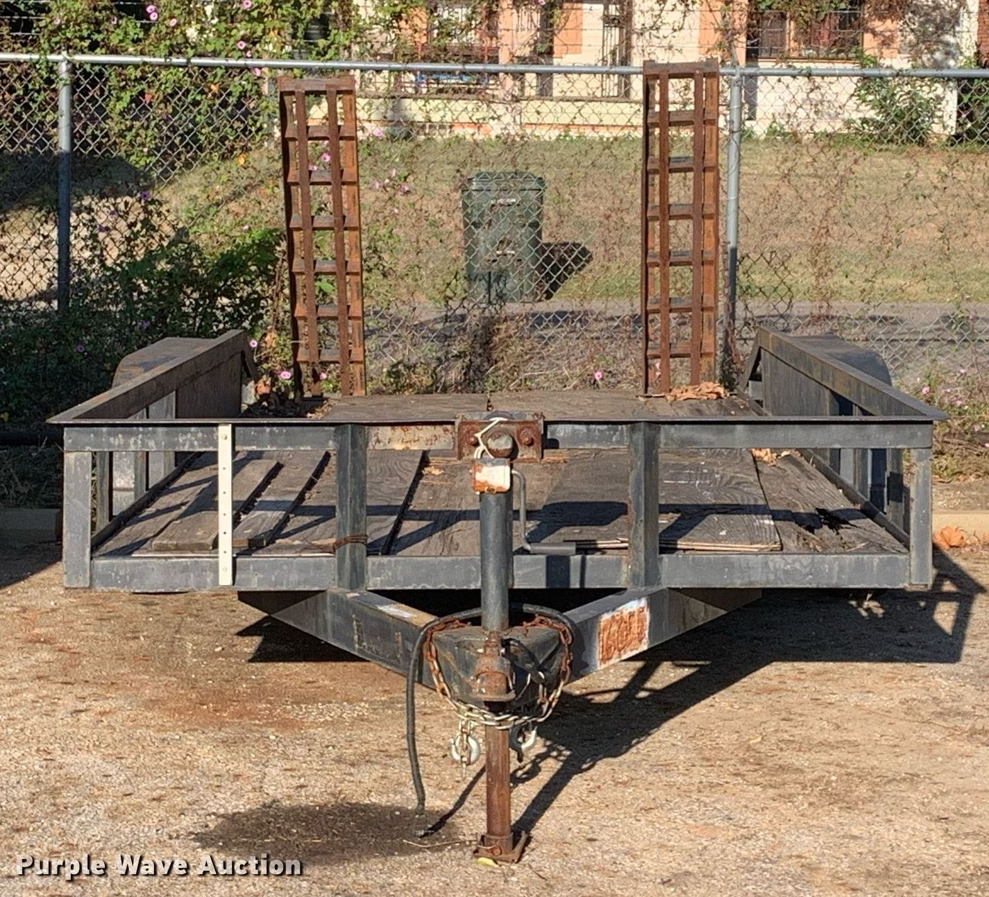 1990 Shop built utility trailer. VIN: 16050, Unit #: 16050. Dimensions Overall: 19' x 6' 9" W, Deck: 16' 1" L x 6' 9" W, Side height: 12", Deck height: 20", Ramps: Manual Length: 5'. Features Deck type: Wood. Chassis Ball hitch: 2", Landing gear: Single, Suspension: Spring, Axles: Tandem. Tires Steel wheels, Size: ST225/75R15. Transfer of ownership documentation will be a bill of sale. City of Tyler, TX. Tyler, TX 75702