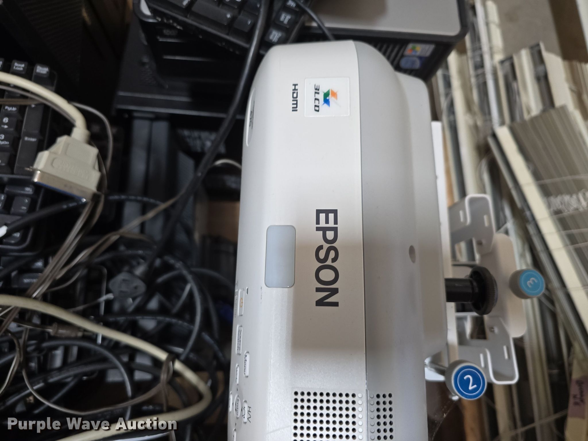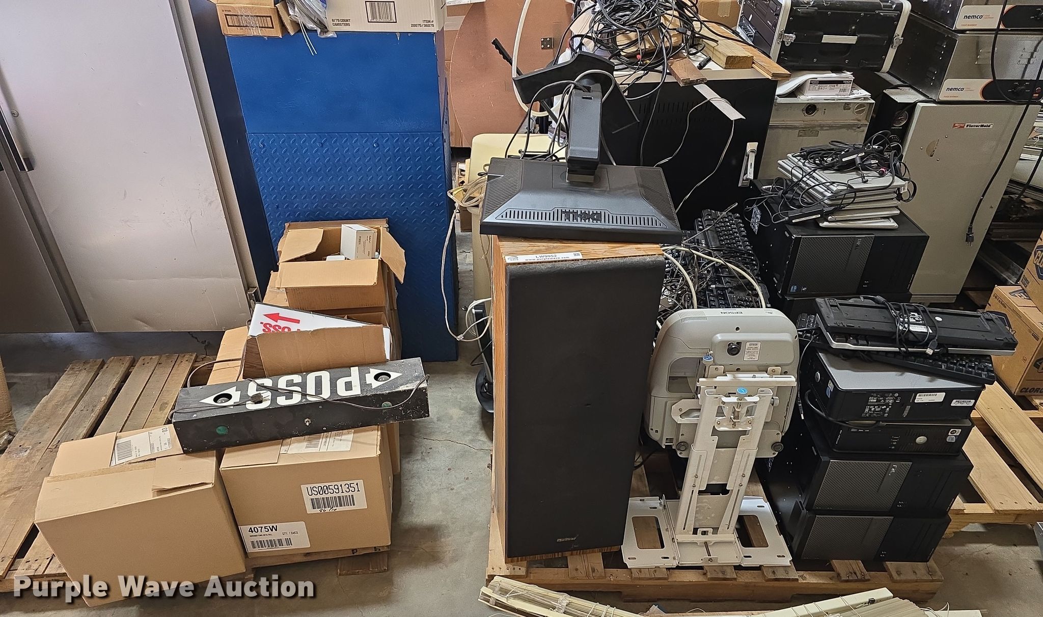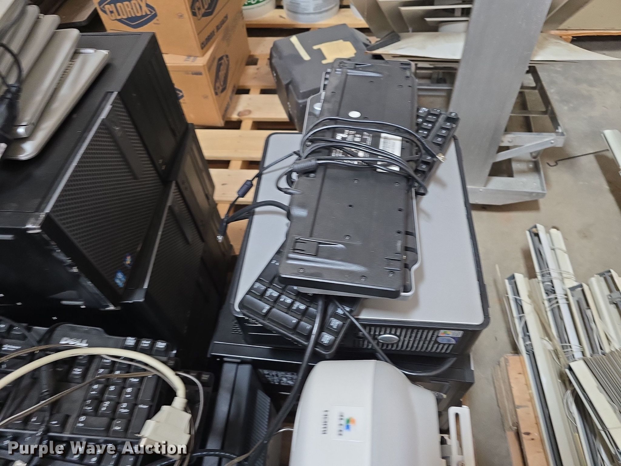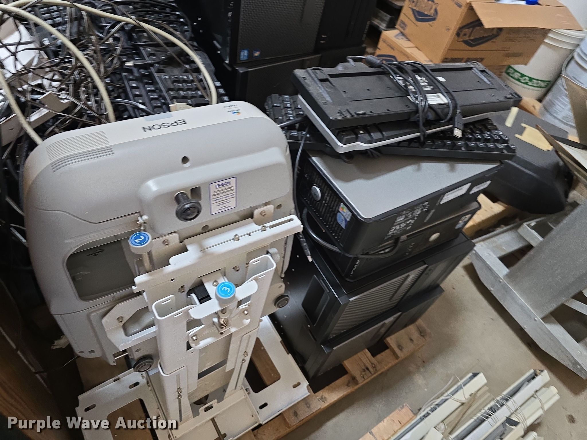 Purple Wave is selling a used Electronics in Kansas. This item is a Electronics with the following: (17) window screens, (13) keyboards, (8) modems, (8) monitors, (6) electric motors, (2) speakers, (2) paper towel dispensers, Epson projector