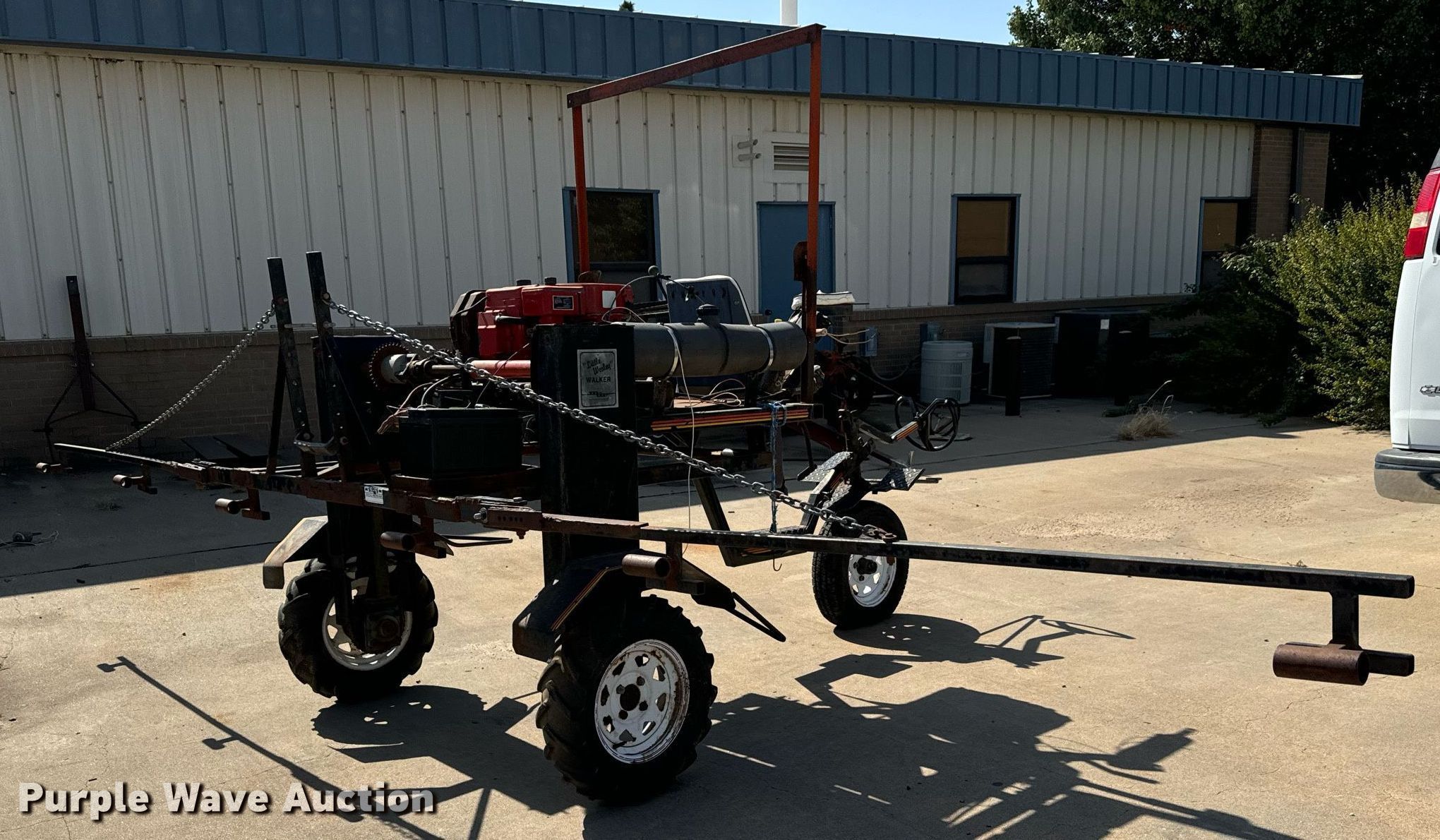 May-West Little Wesley Walker weed wiper. Serial: 29025015B. Engine Cylinders: 1, Fuel type: Gas. Transmission Manual, 5F - 1R. Features Boom Sections: 3, Width: 18' 2". Tires Front: 155R12, Rear: 6-12. Notes Battery not included, Parts missing, Fuel issues, Non-operational unit. Pratt Community College. Pratt, KS 67124