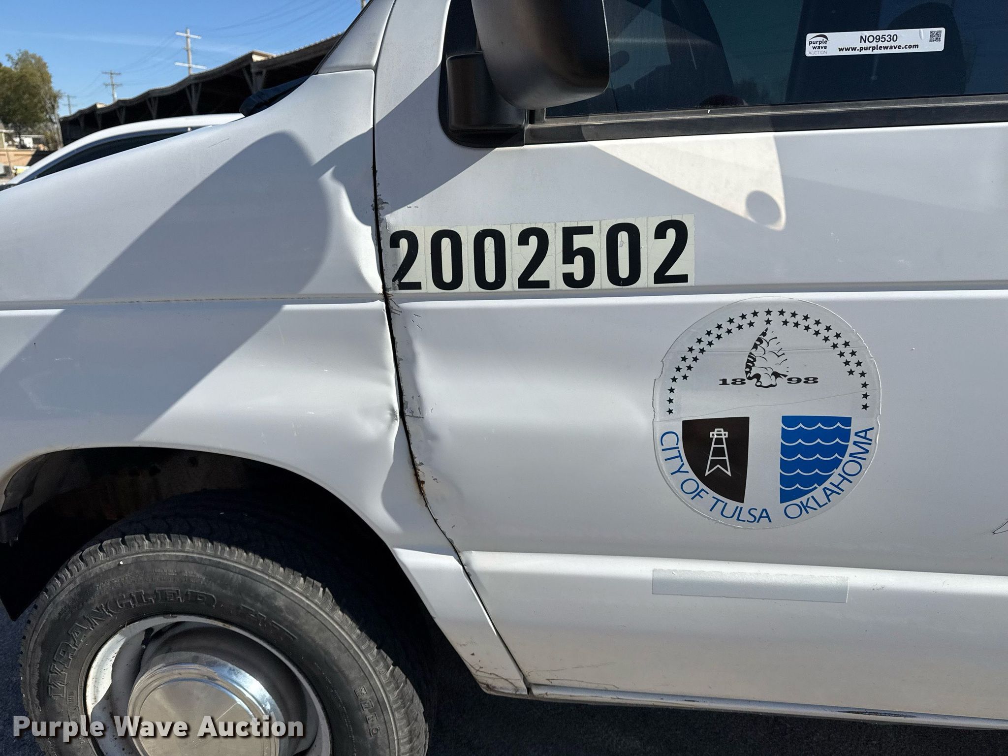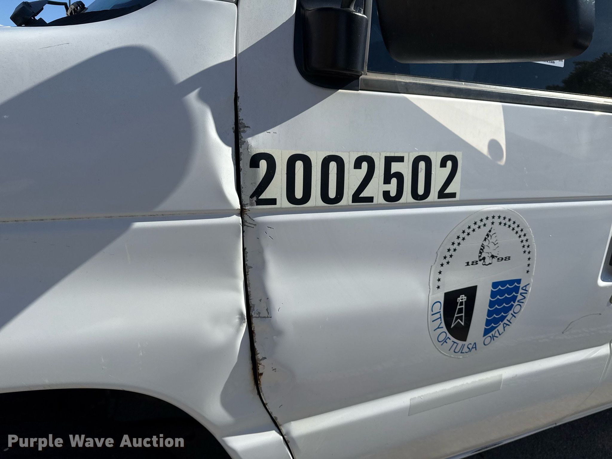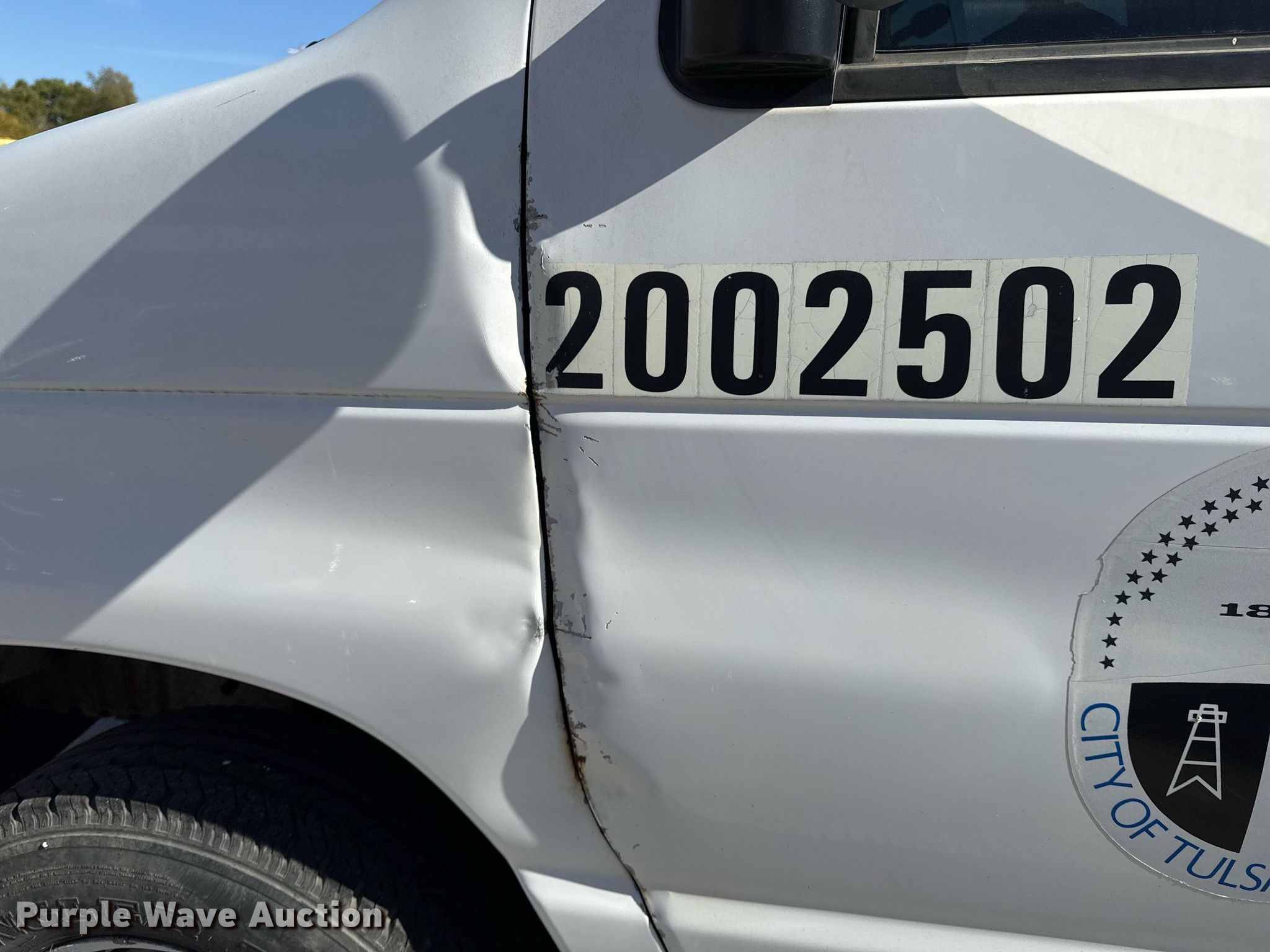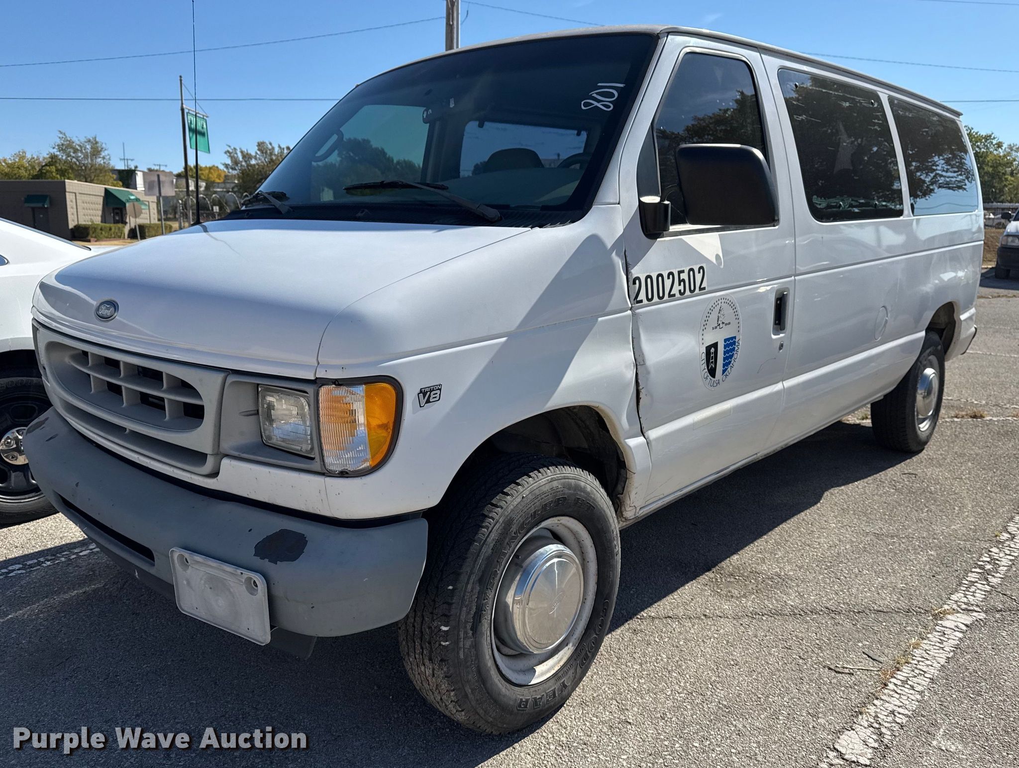 2002 Ford E350 Super Duty XL van. Miles: 90,136 on odometer, VIN: 1FBNE31L82HA00841, Unit #: 801. Engine Displacement: 5.4L V8 SOHC, Cylinders: 8, Fuel type: Gas. Transmission Automatic. Interior AC, Heat, Power windows, Power locks, Cruise control. Tires Size: LT225/75R16. Notes Rear seat not bolted down, Driver side door damaged. Oklahoma title. Seller is a government entity who will be assigning and distributing the title. Please contact the seller for distribution questions. Title distribution may be delayed up to 30 days from verification of funds. City of Tulsa. 108 N Trenton Ave. Tulsa, OK 74120