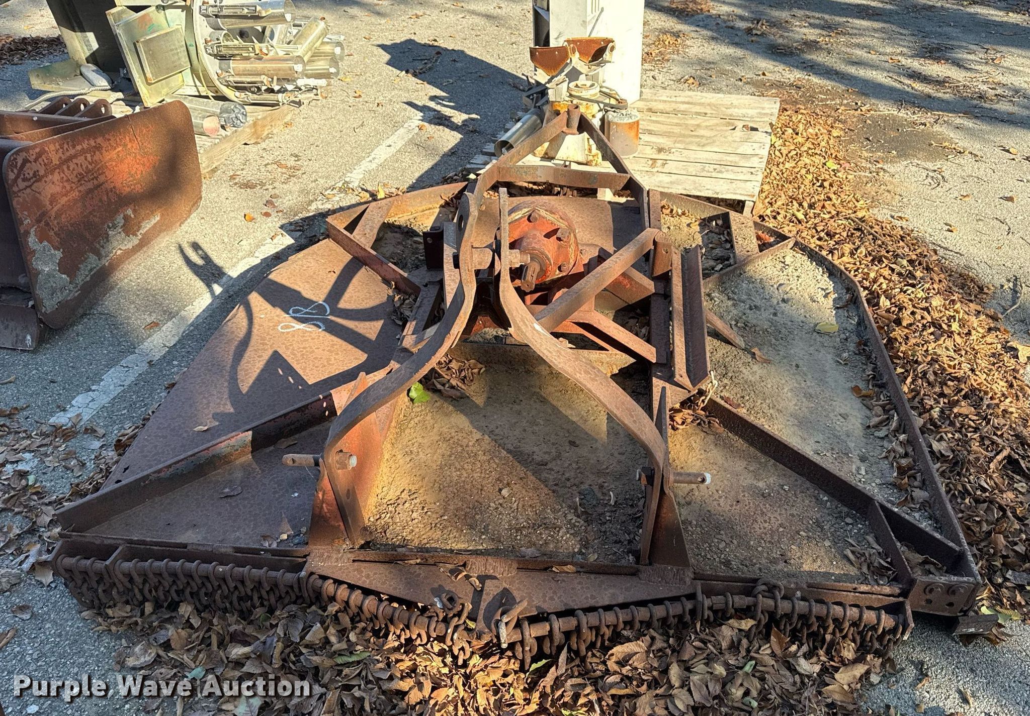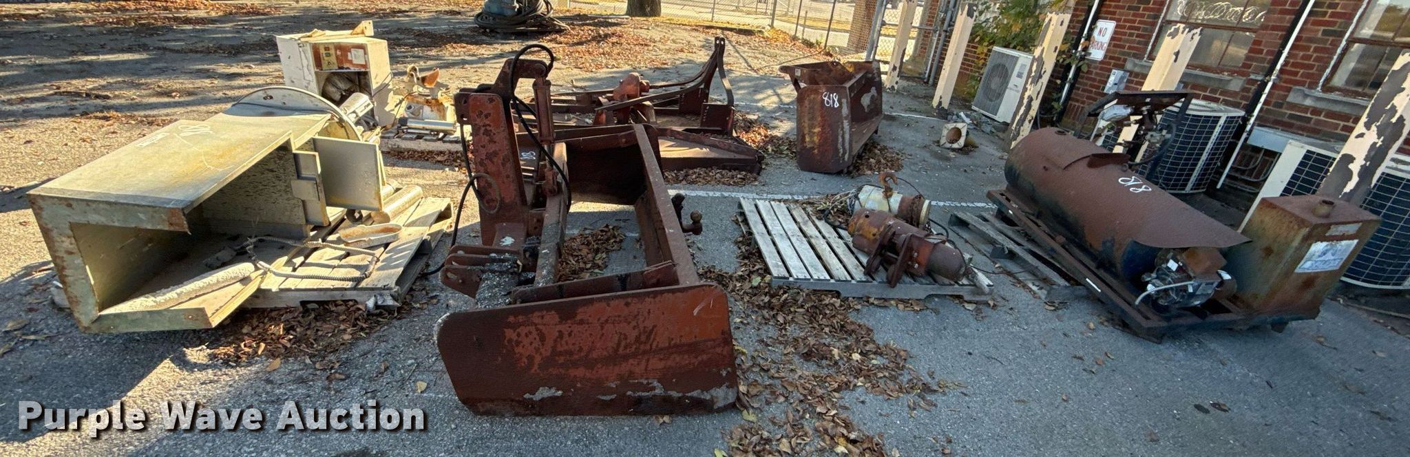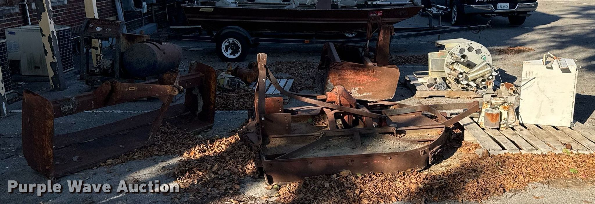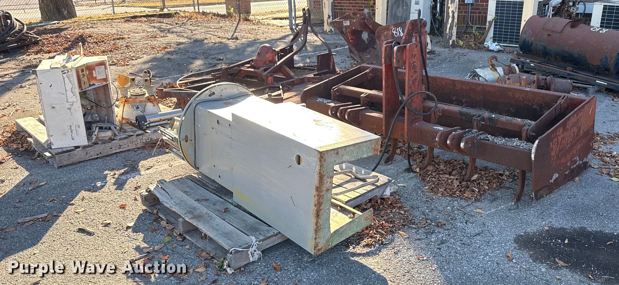 Purple Wave is selling a used Tools in Oklahoma. This item is a Tools with the following: Unit #: 818, FM Direct paint mixer, Phase: Single, Box blade, Width: 75", Teeth: 6, Rust damage, Yale Load King 1H20L16RPW2 electric hoist, Capacity: 2,000 lbs, Overhead hoist, Fuel tank, Skid mounted, Pump, Wayne EHA oil burner, Box blade, Hitch: Three point, Width: 72", Rust damage, 74" W brush mower, Hitch: Three point, PTO: 1,000