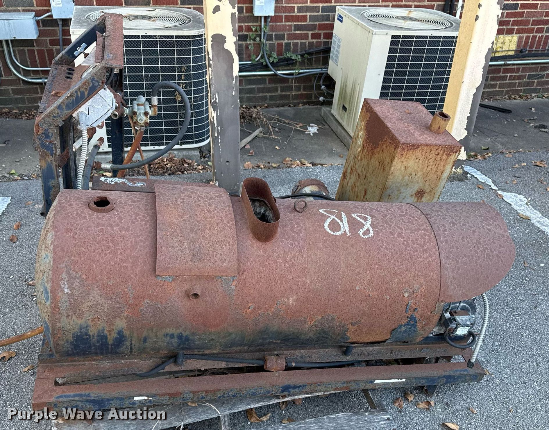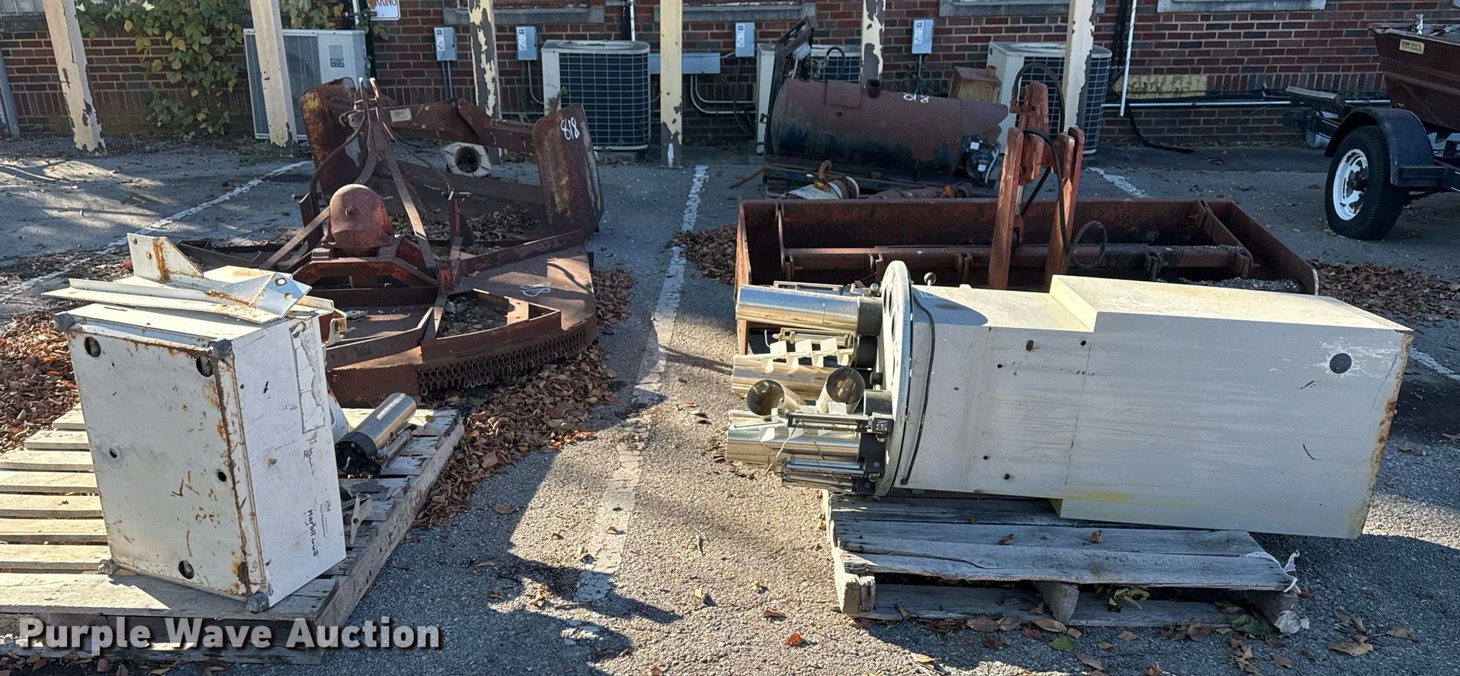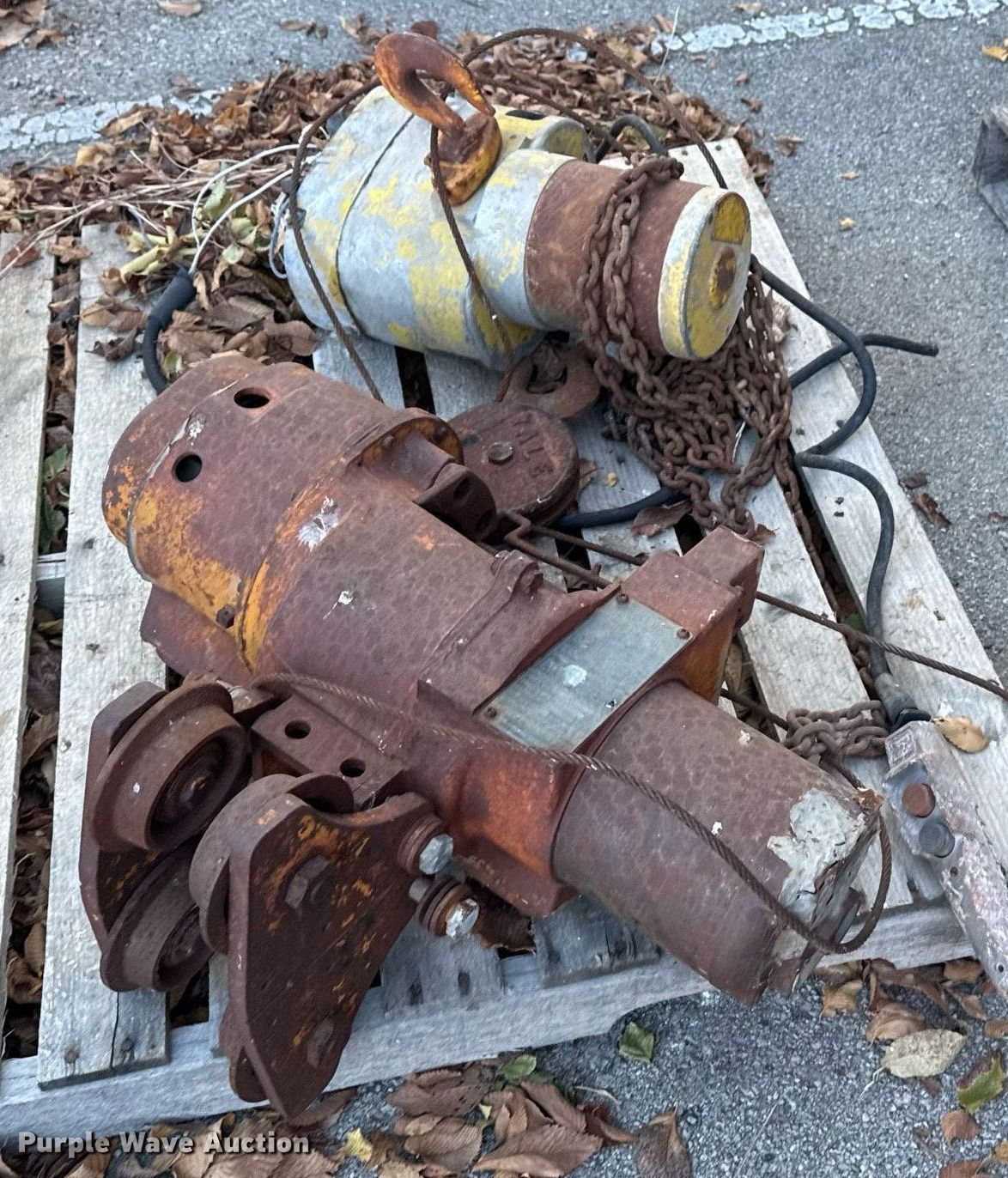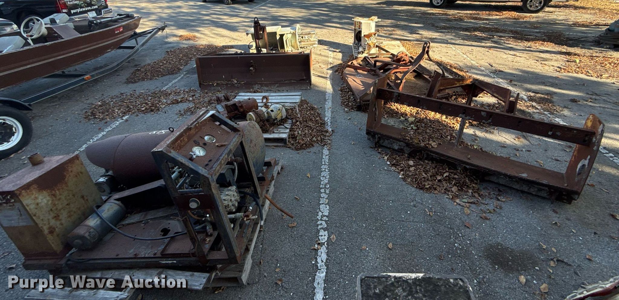 Purple Wave is selling a used Tools in Oklahoma. This item is a Tools with the following: Unit #: 818, FM Direct paint mixer, Phase: Single, Box blade, Width: 75", Teeth: 6, Rust damage, Yale Load King 1H20L16RPW2 electric hoist, Capacity: 2,000 lbs, Overhead hoist, Fuel tank, Skid mounted, Pump, Wayne EHA oil burner, Box blade, Hitch: Three point, Width: 72", Rust damage, 74" W brush mower, Hitch: Three point, PTO: 1,000