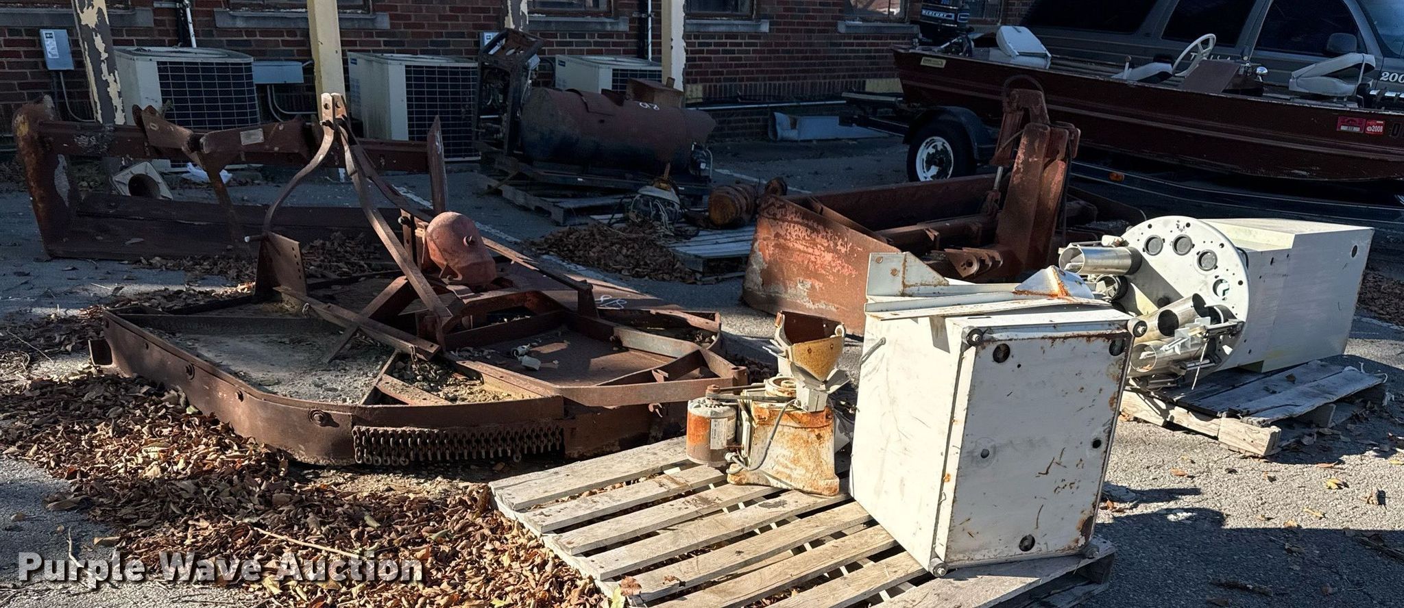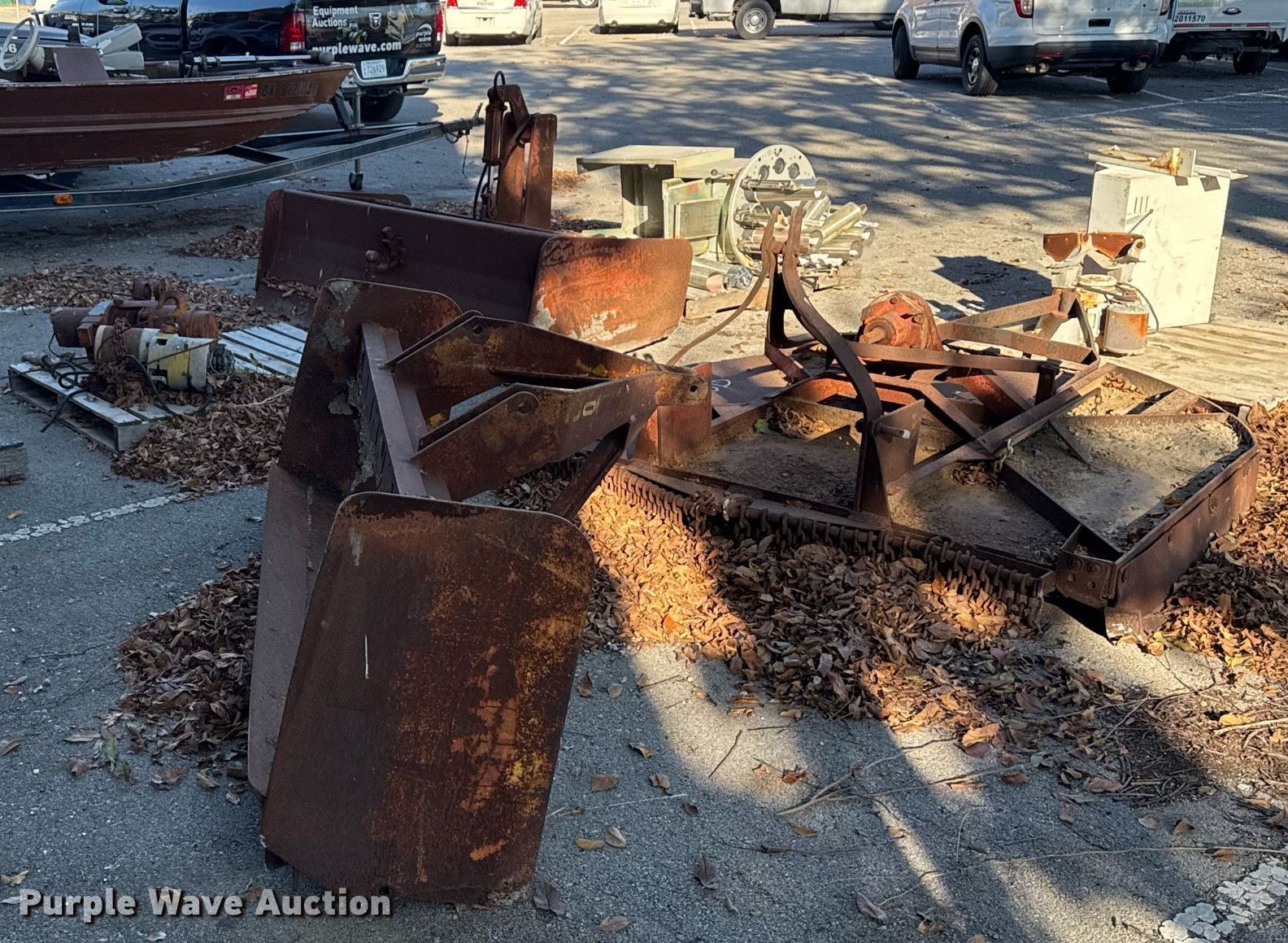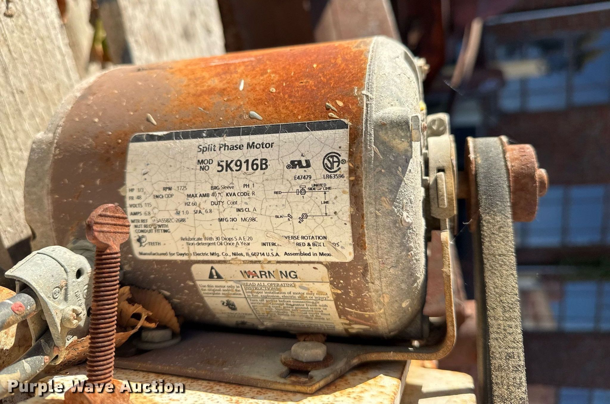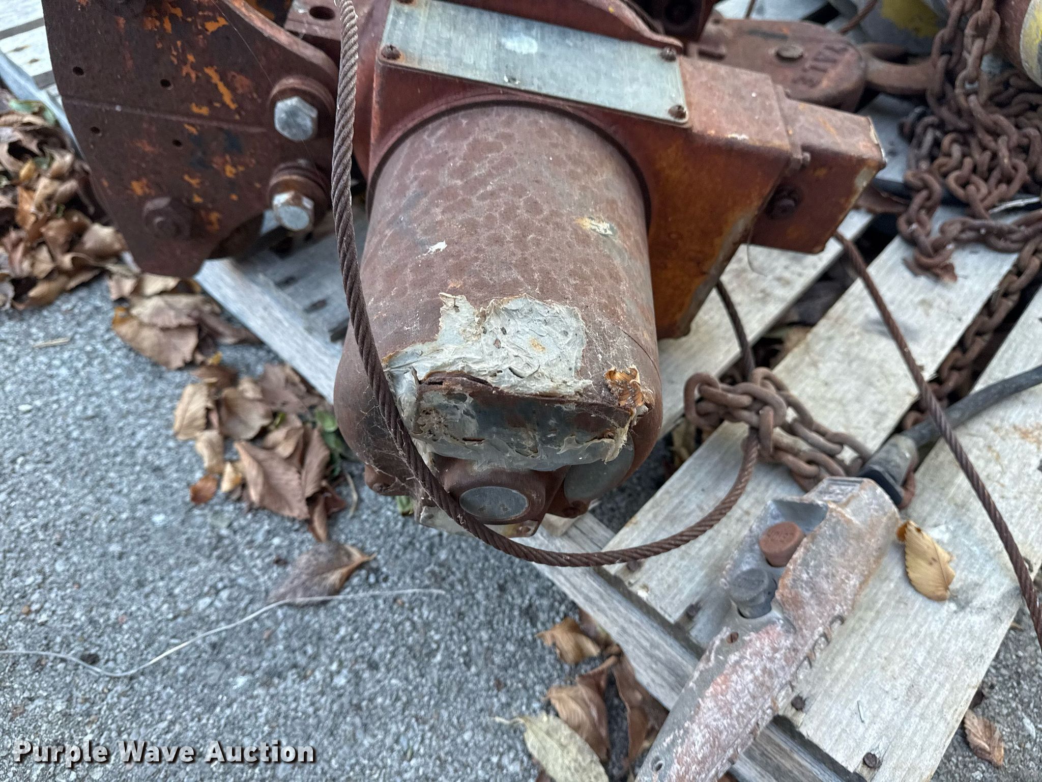 Purple Wave is selling a used Tools in Oklahoma. This item is a Tools with the following: Unit #: 818, FM Direct paint mixer, Phase: Single, Box blade, Width: 75", Teeth: 6, Rust damage, Yale Load King 1H20L16RPW2 electric hoist, Capacity: 2,000 lbs, Overhead hoist, Fuel tank, Skid mounted, Pump, Wayne EHA oil burner, Box blade, Hitch: Three point, Width: 72", Rust damage, 74" W brush mower, Hitch: Three point, PTO: 1,000