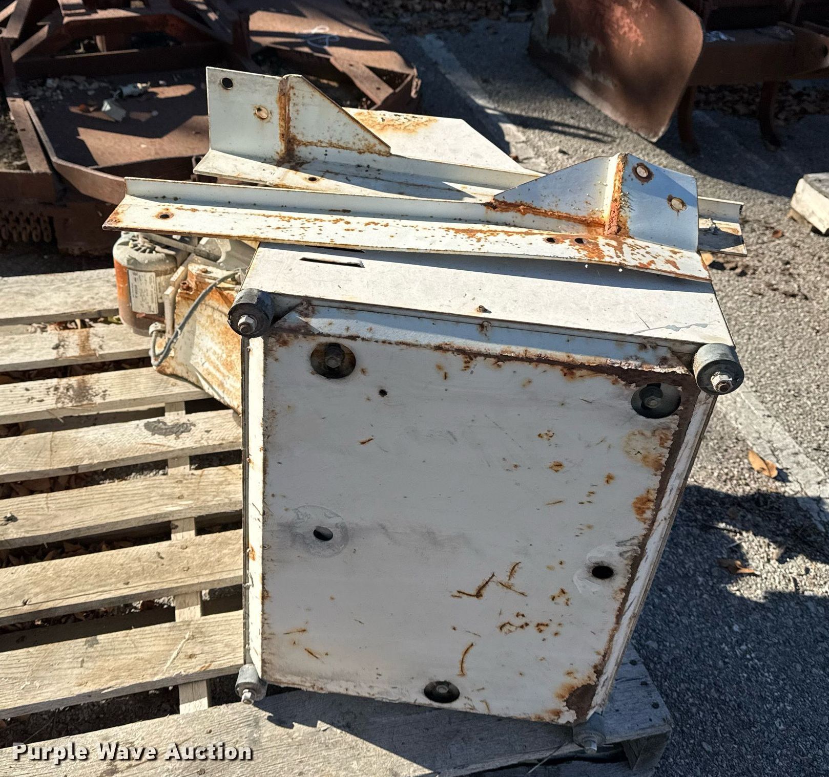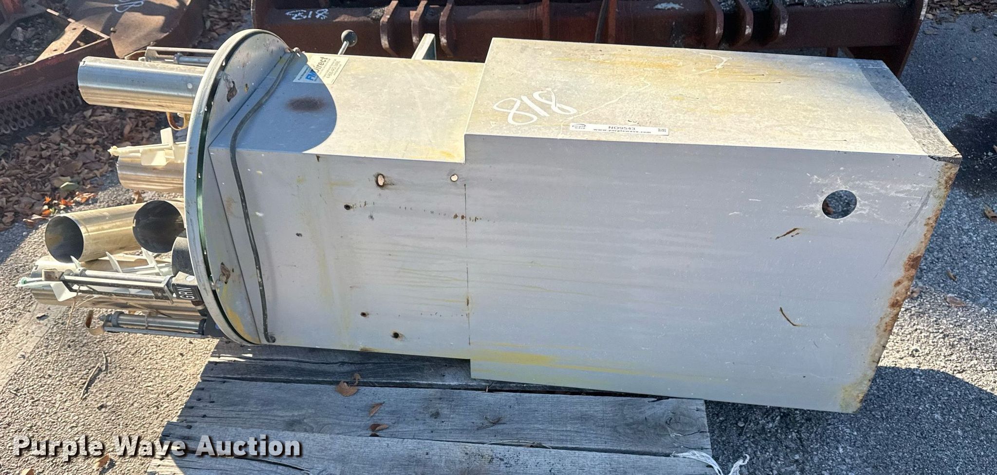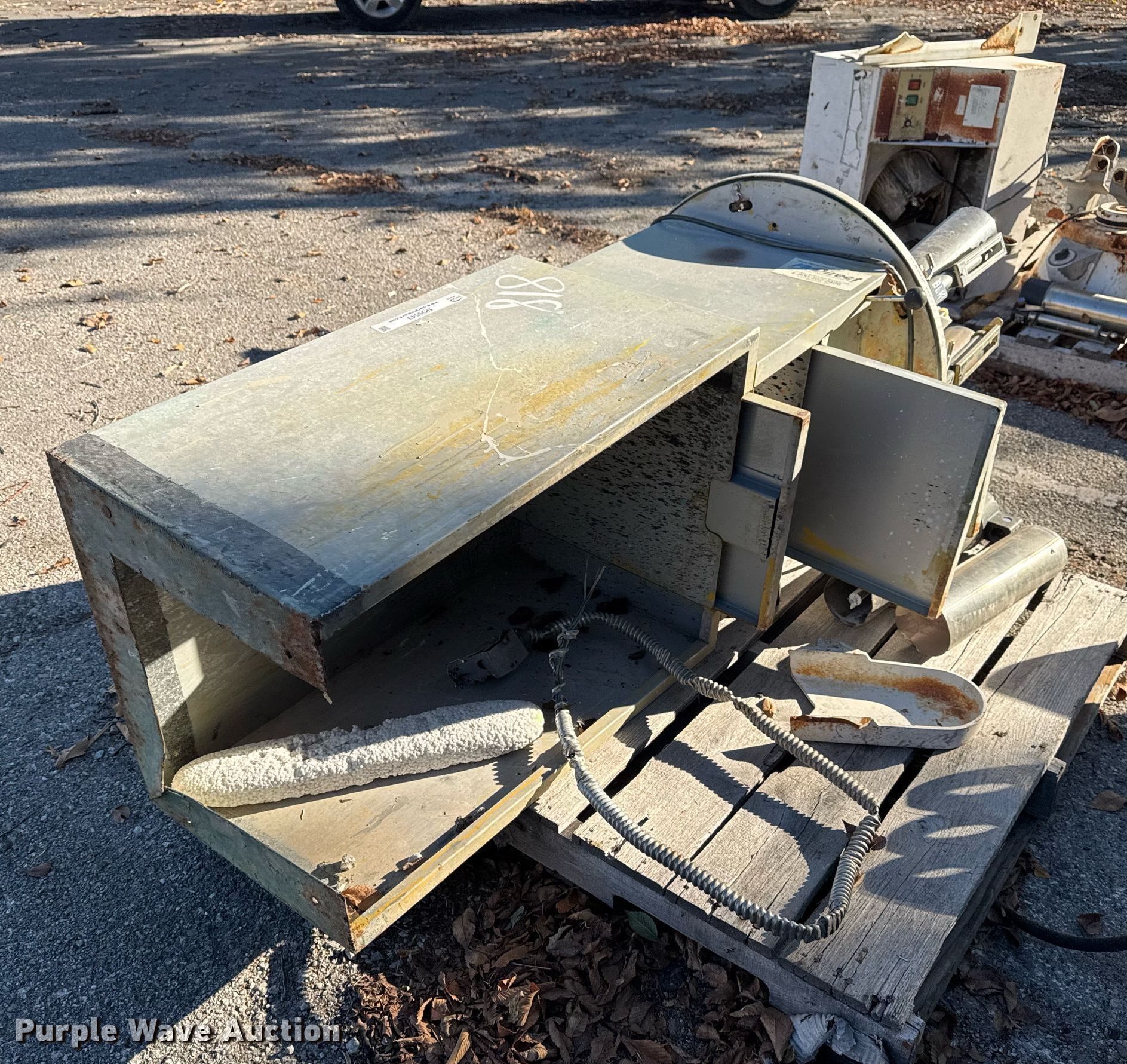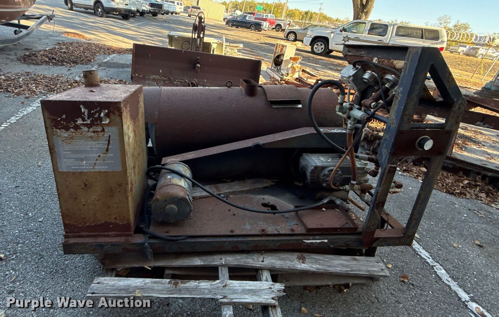 Purple Wave is selling a used Tools in Oklahoma. This item is a Tools with the following: Unit #: 818, FM Direct paint mixer, Phase: Single, Box blade, Width: 75", Teeth: 6, Rust damage, Yale Load King 1H20L16RPW2 electric hoist, Capacity: 2,000 lbs, Overhead hoist, Fuel tank, Skid mounted, Pump, Wayne EHA oil burner, Box blade, Hitch: Three point, Width: 72", Rust damage, 74" W brush mower, Hitch: Three point, PTO: 1,000