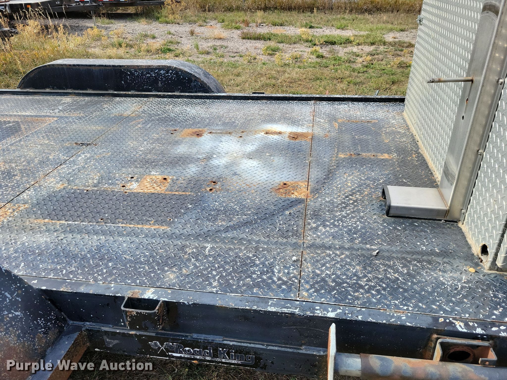 2009 Road King utility trailer. VIN: 1R9FS202591093053, Unit #: DPS01. Dimensions Overall: 19' 10" L x 102" W, Deck: 16' L x 78" W. Features Deck type: Steel. Chassis Ball hitch: 2 5/16", Landing gear: Single, Brakes: Electric, Axles: Tandem. Tires Steel wheels, Size: 205/75R15. South Dakota title. State of South Dakota Bureau of Administration. Sturgis, SD 57785