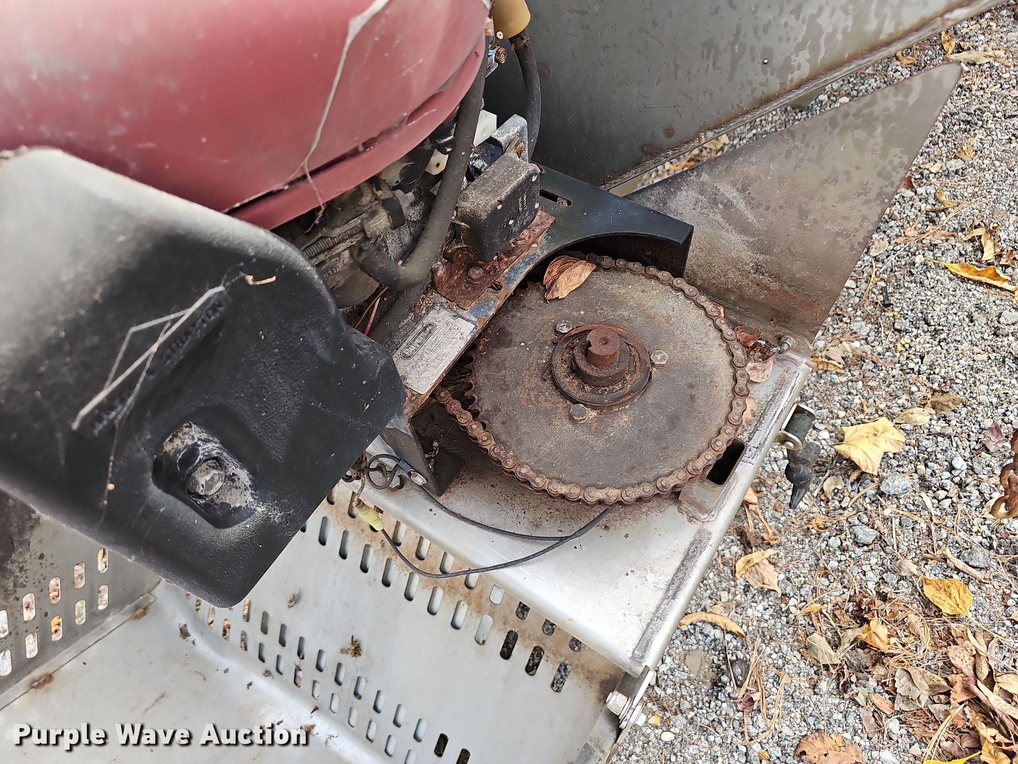 Buyers Salt Dogg spreader. Serial: 8848. Features 8' L x 47" W, Side height: 31", Bed type: Aluminum, Conveyor: 12". Engine Briggs and Stratton, Displacement: 344 cc, HP: 10.5. Notes Non-operational unit, Non-operational engine. City of Branson. Branson, MO 65616