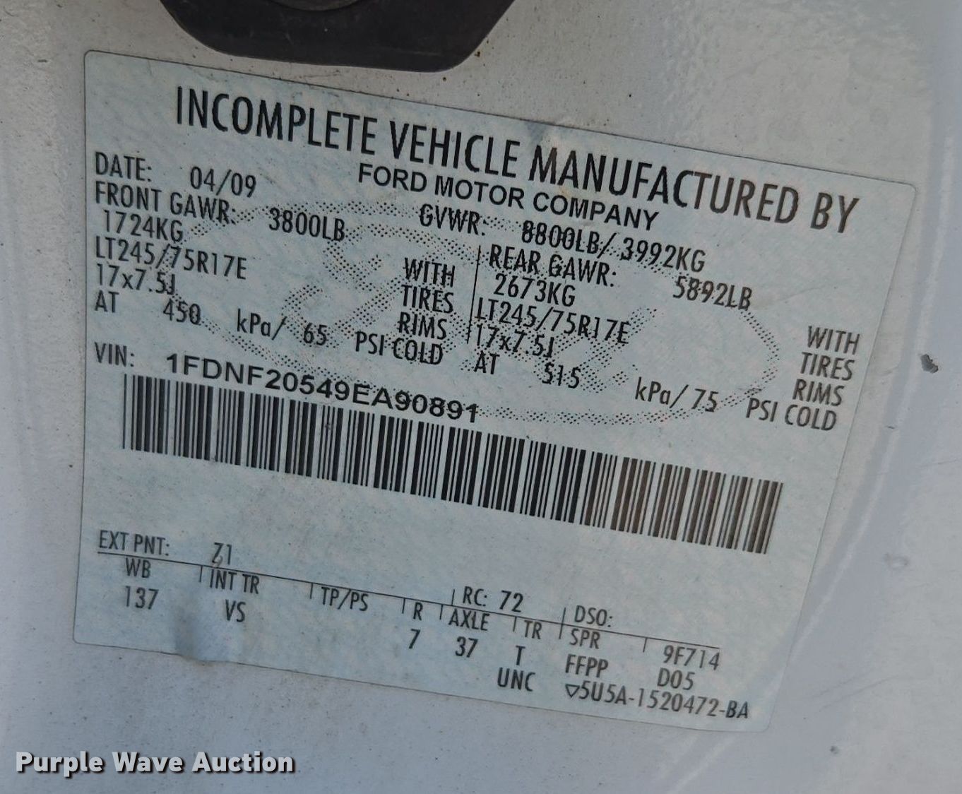 - VIN: 1FDNF20549EA90891