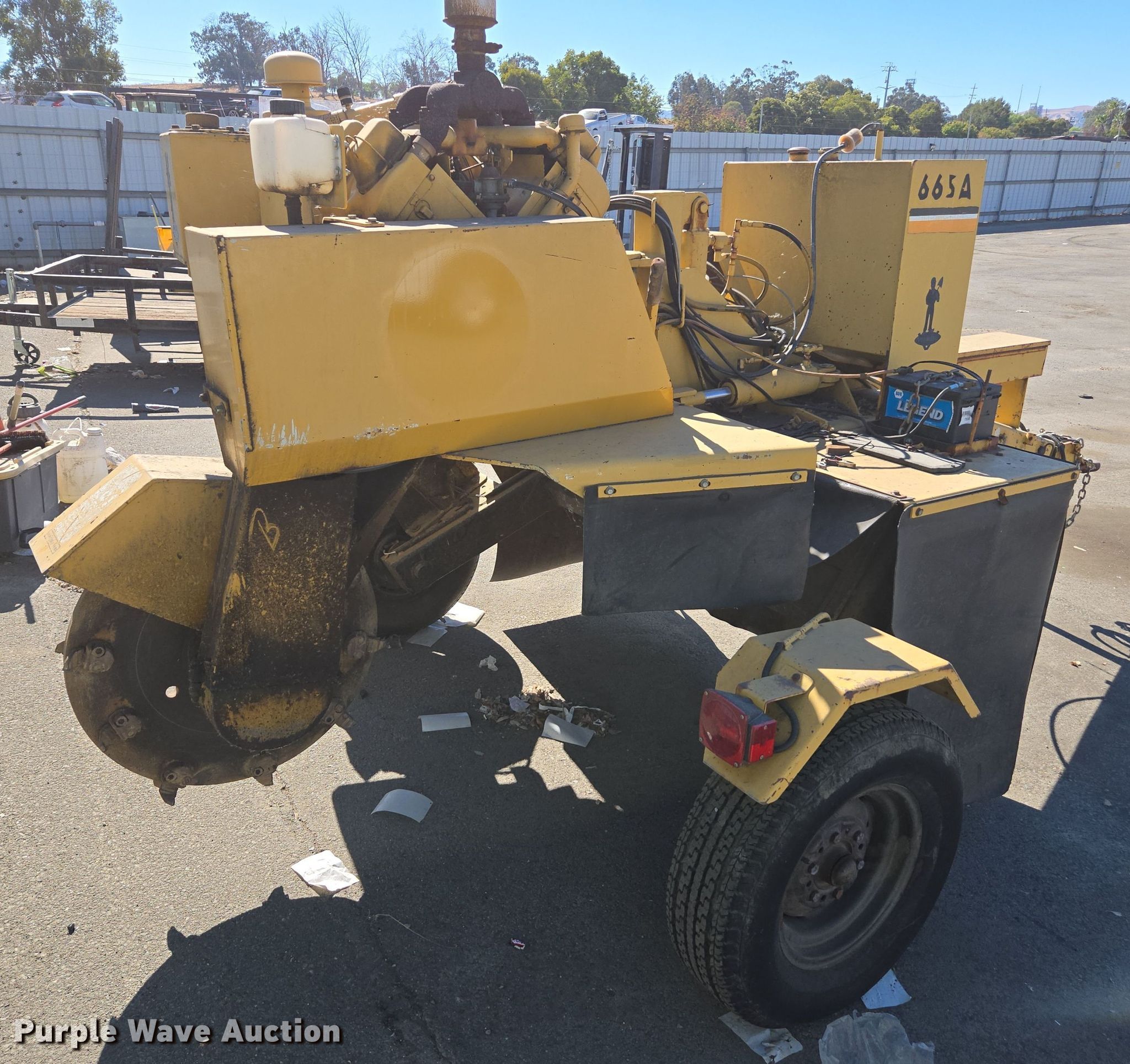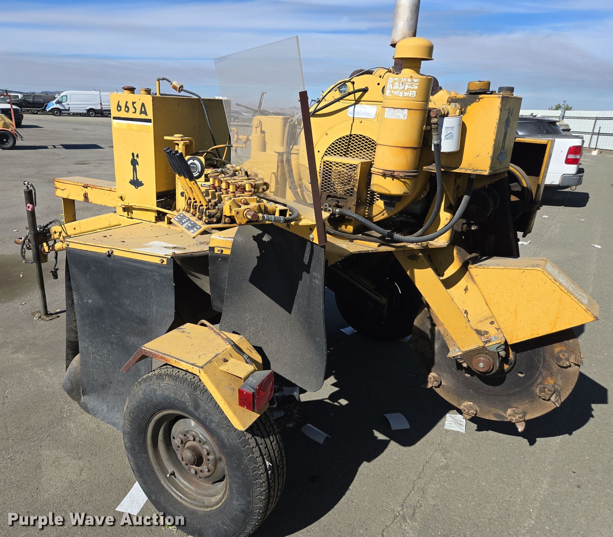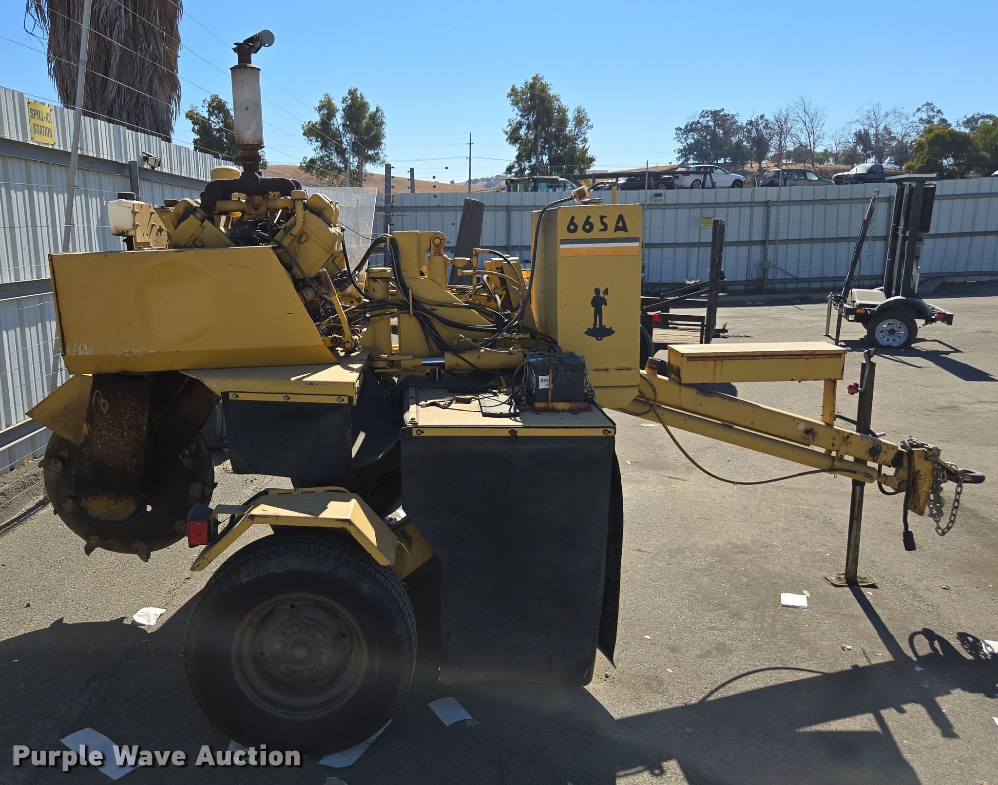 1990 Vermeer 665A stump grinder. Hours: 395 on meter, Serial: 1VRC131F9L1002505, Unit #: 951. Engine Wisconsin, Cylinders: 4, Fuel type: Gas, HP: 65. Features Cutting head diameter: 28" Bolt-on teeth. Tires Size: 225/75R15. Trailer Brakes: Electric, Axles: Single, Hitch: Pintle. Notes Non-operational brakes, Dead battery, Unknown operating condition of unit. Buyer responsible for all aspects of state emissions compliance. Please review special removal instructions. This is worksite support equipment and will not come with a title. Transfer of ownership documentation will be a bill of sale. City of Pittsburg, CA. Martinez, CA 94553