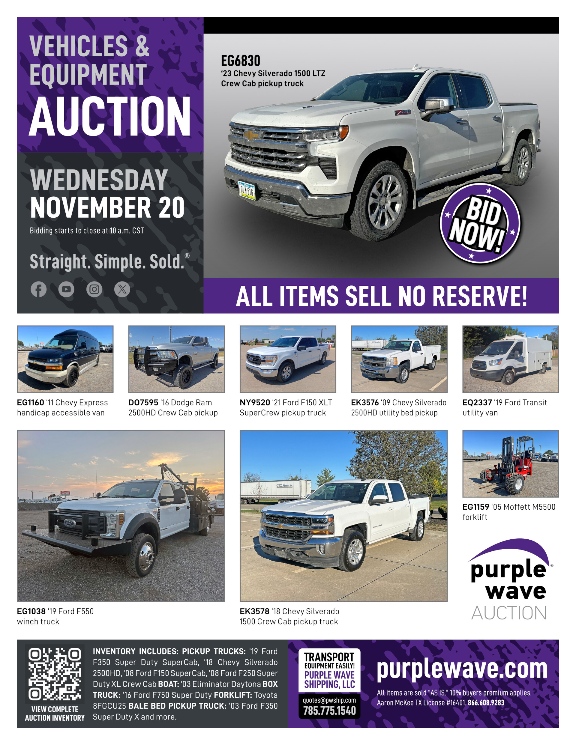 SOLD! Vehicles and Equipment Auction | 11-20-2024