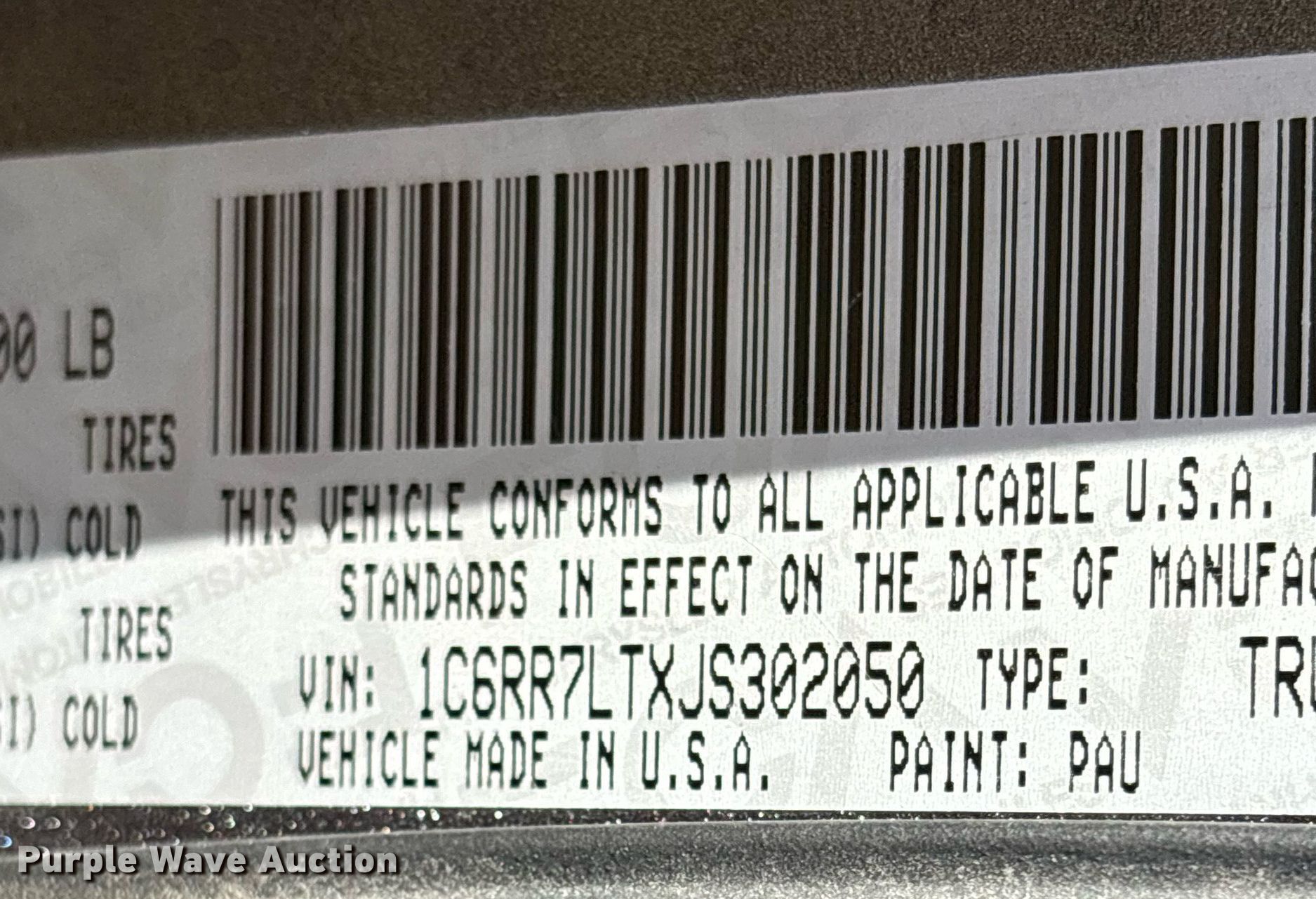 - VIN: 1C6RR7LTXJS302050
