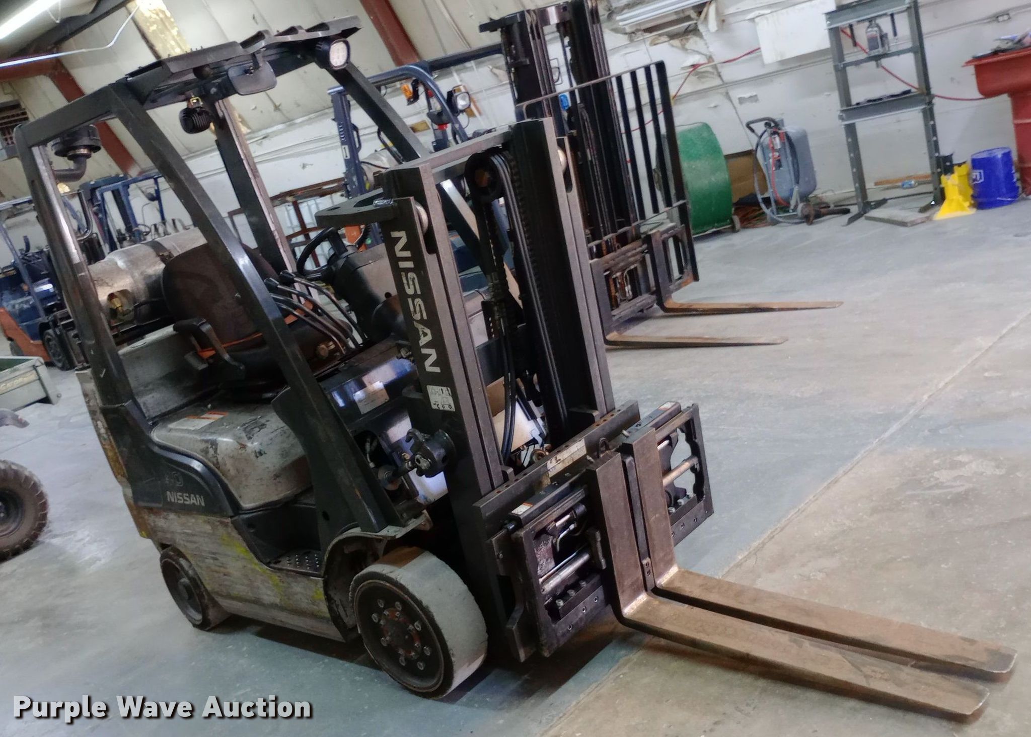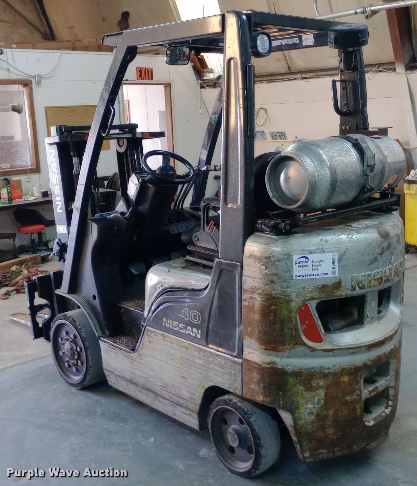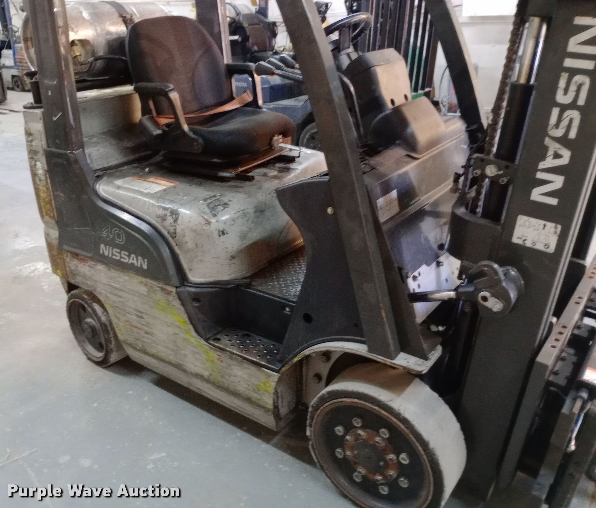Purple Wave is selling a used Warehouse Forklift in Kansas. This item is a Nissan 40 forklift with the following: Hours: 10,628 on meter