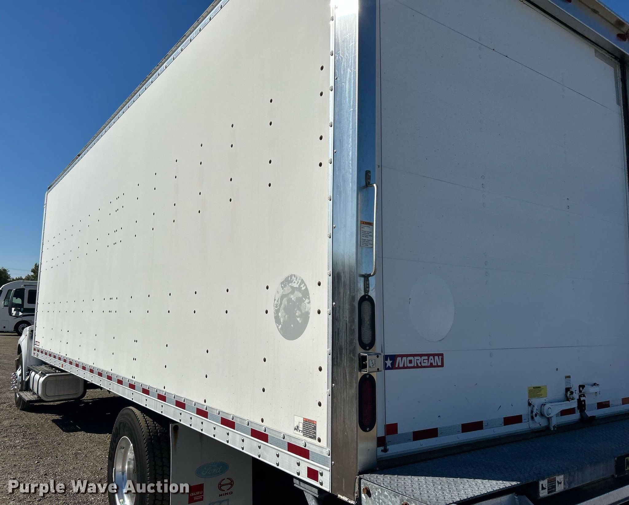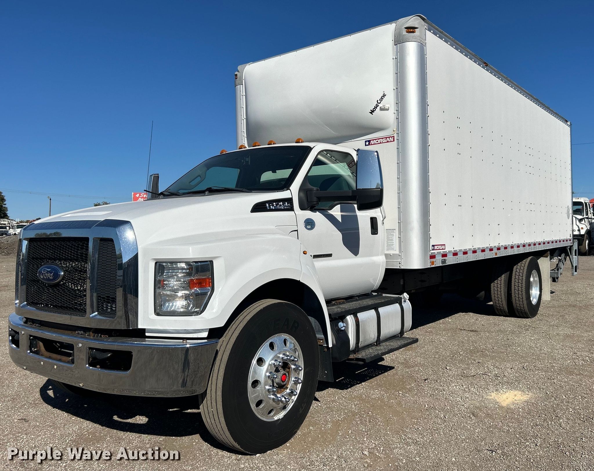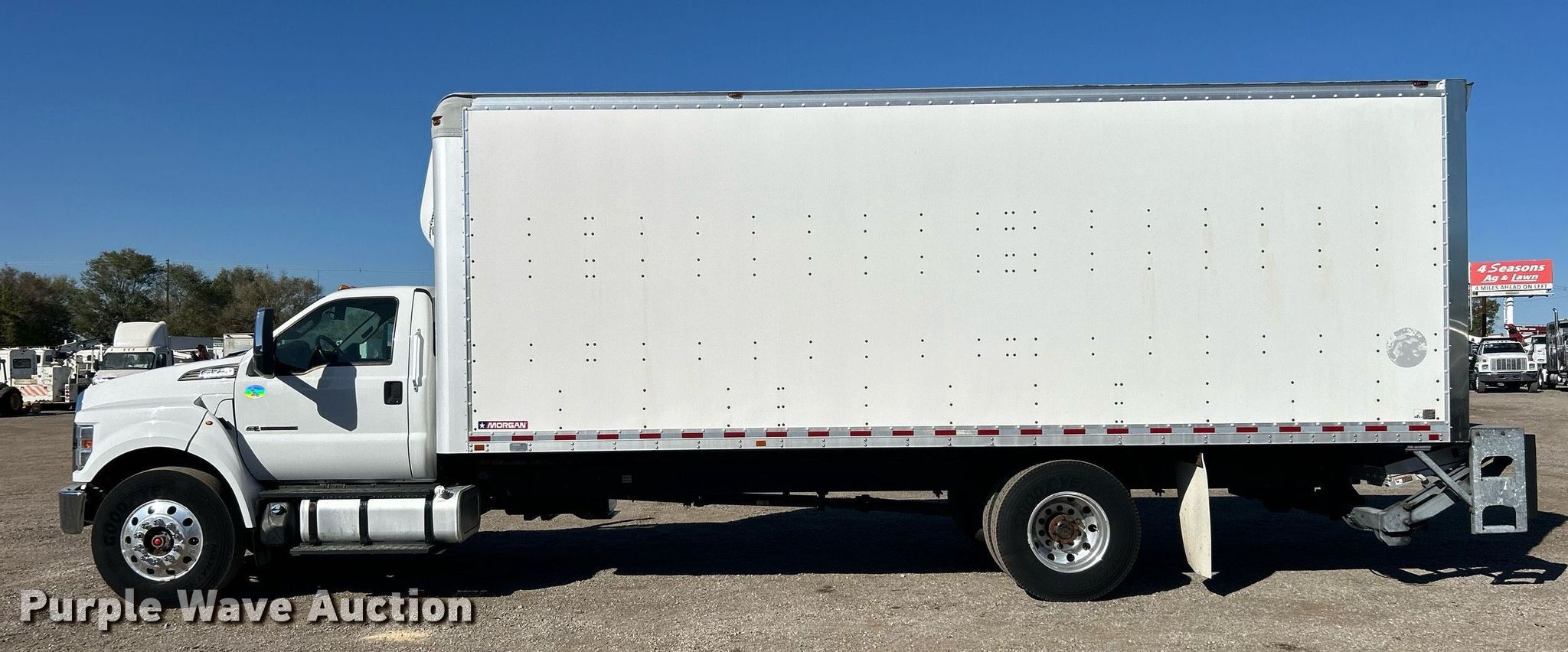 2016 Ford F750 Super Duty box truck. Miles: 317,924 on odometer, VIN: 1FDWF7DC8GDA03975. Engine Displacement: 6.7L, Cylinders: 8, Fuel type: Diesel. Transmission Automatic. Chassis Axles: Single, Suspension: Air, Brakes: Air, GVWR: 25,999 lbs, Wheelbase: 260". Interior AC, Heat, Power windows, Power locks, Cruise control, Auxiliary controls. Features Box bed Morgan GVFD09724102, Serial: PM34760-001, 23' L x 102" W x 102" H, E-track rail system, Floor: Wood, End gate lift Maxon, Capacity: 2,500 lbs.. Tires Size: 11R22.5. Notes AC issues, blows hot, Unknown operating condition of backup camera, disabled. Oklahoma title. Collinsville, OK 74021