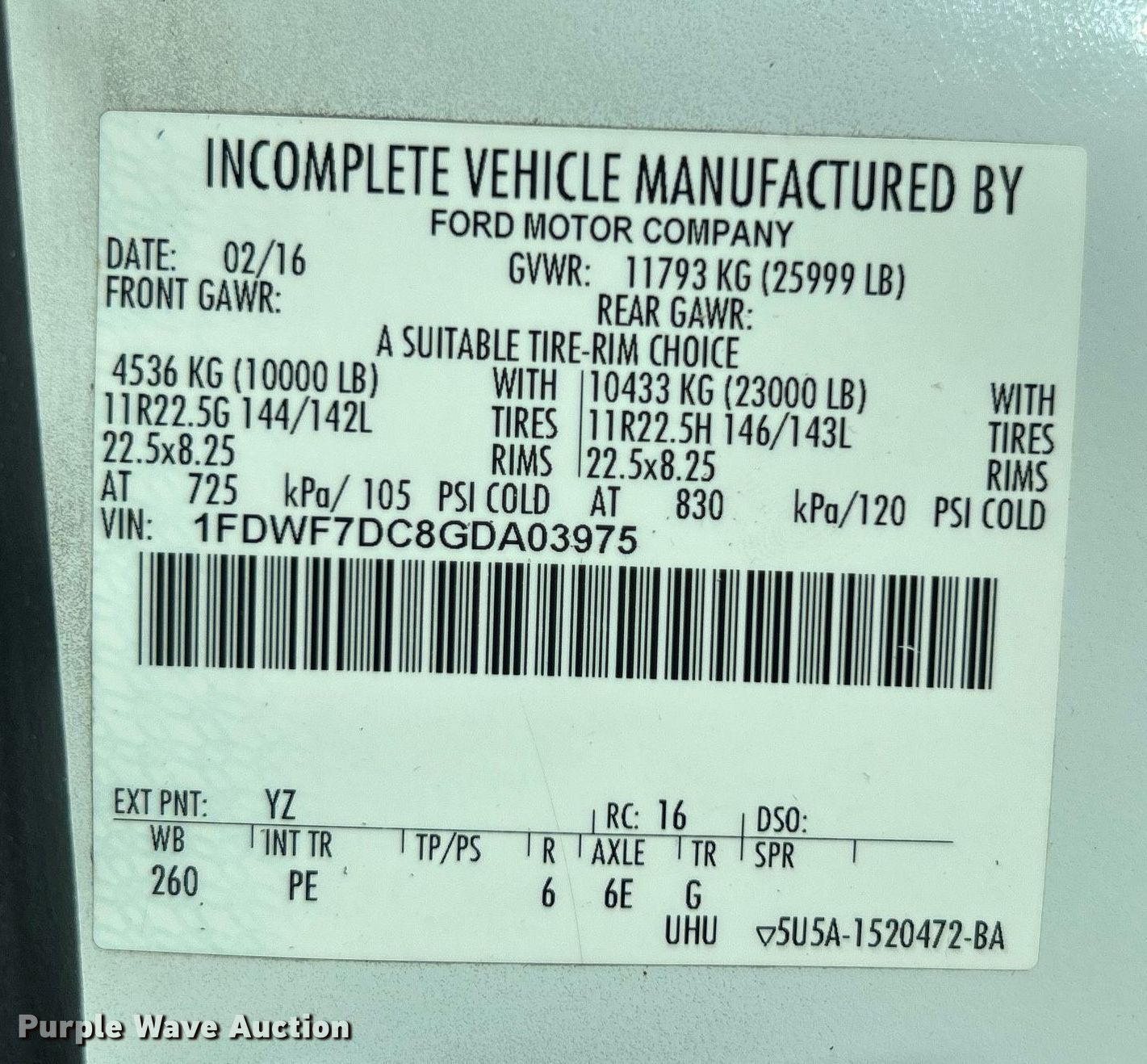 • VIN: 1FDWF7DC8GDA03975