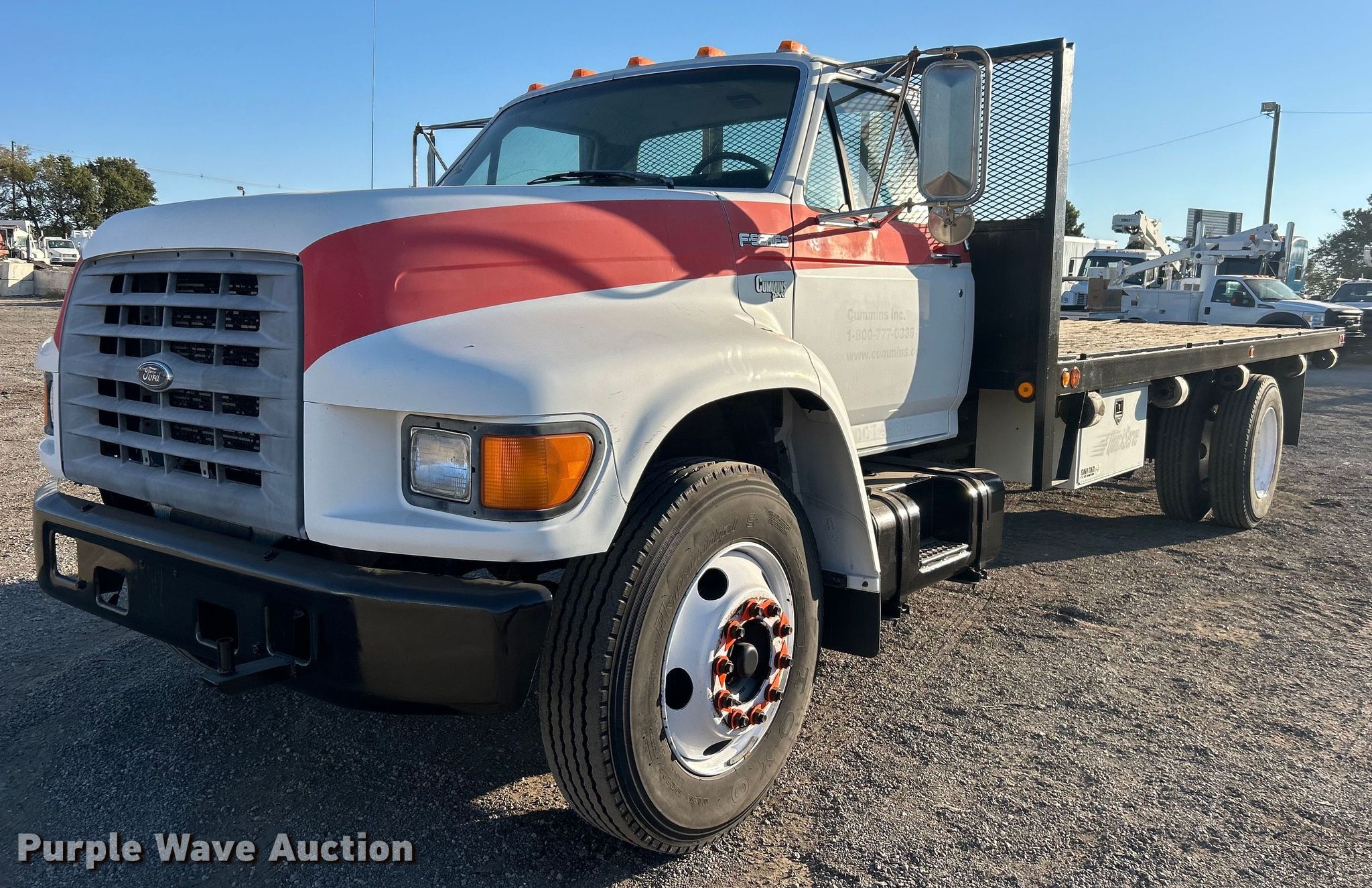 This 1998 Ford F800 flatbed truck will sell to the highest bidder regardless of price.