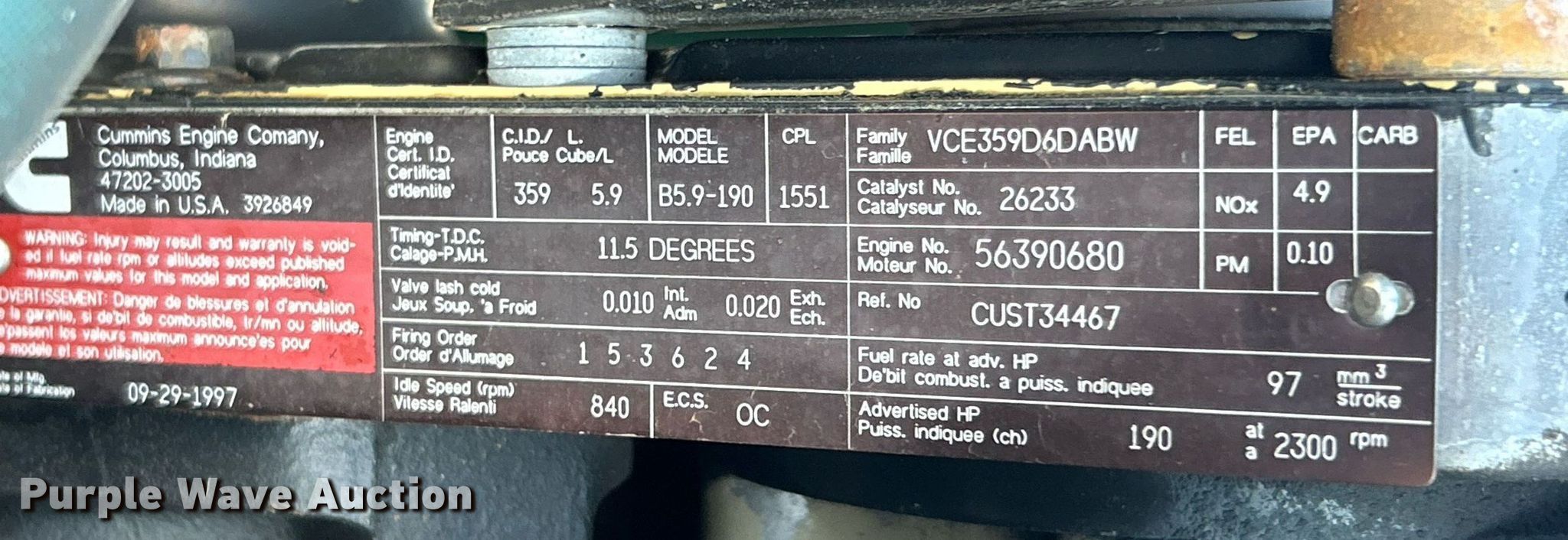1998 Ford F800 flatbed truck. Miles: 120,915 on odometer, VIN: 1FDWF80C4WVA33754. Engine Cummins B5.9, Serial: 56390680, Displacement: 5.9L, Cylinders: 6, Fuel type: Diesel. Transmission Manual, Speed: 6. Chassis Axles: Single, Suspension: Spring, Brakes: Air, GVWR: 26,000 lbs, Wheelbase: 225". Interior Heat. Features Flatbed 20' 5" L x 96" W. Tires Size: 10R22.5. Notes Windshield chipped or cracked. Oklahoma classic title. Collinsville, OK 74021