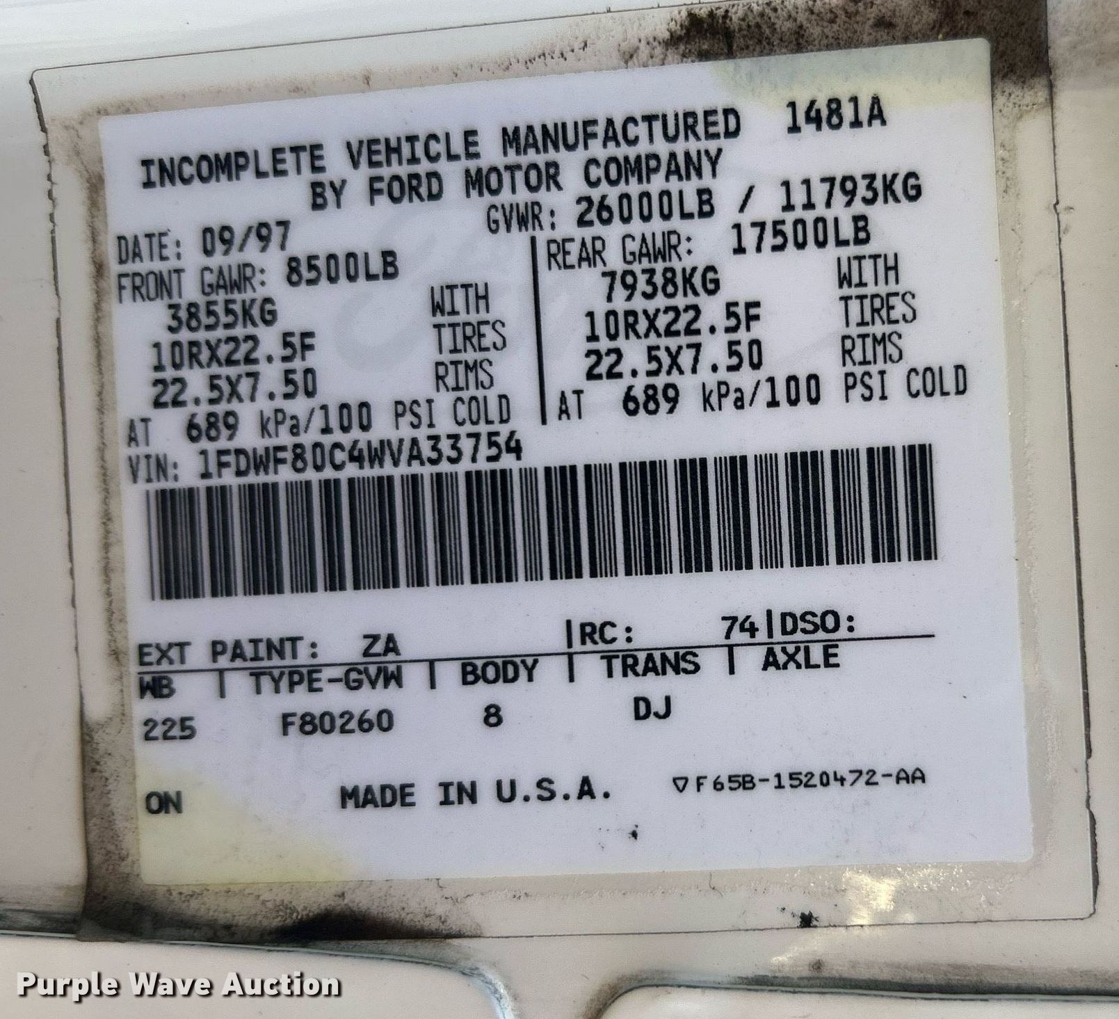 Purple Wave is selling a used Flat Bed Truck in Oklahoma. This item is a 1998 Ford F800 flatbed truck with the following: Miles: 120,915 on odometer, VIN: 1FDWF80C4WVA33754