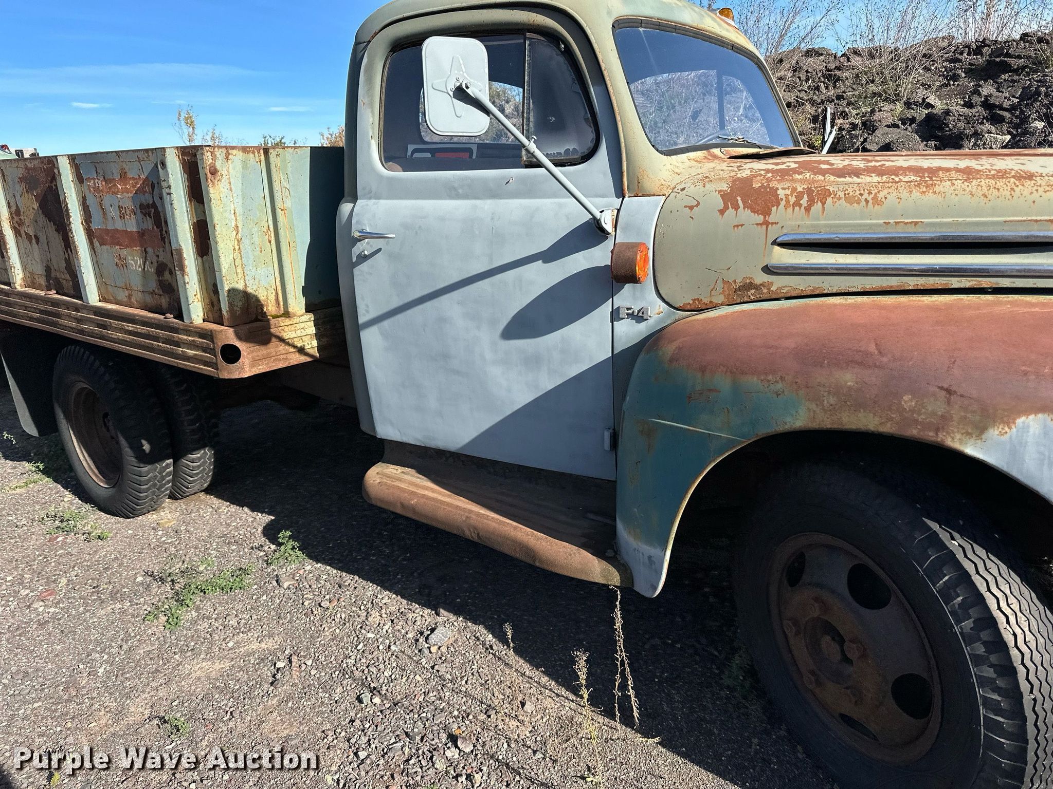 This 1949 Ford F4 flatbed truck will sell to the highest bidder regardless of price.