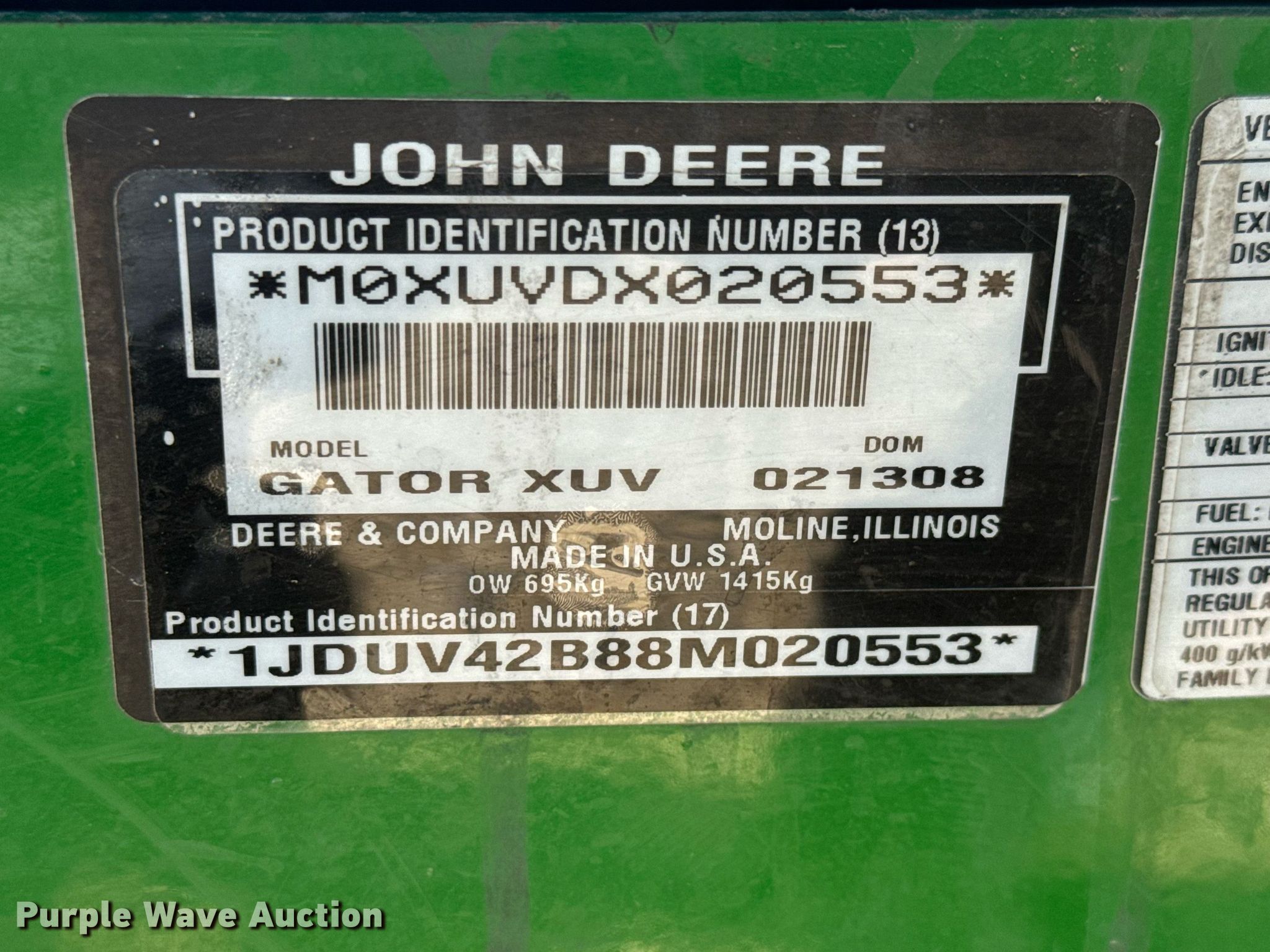Purple Wave is selling a used Utility Vehicle in Kansas. This item is a 2008 John Deere Gator 850D utility vehicle with the following: Hours: 461 on meter, Serial: 1JDUV42B88M020553