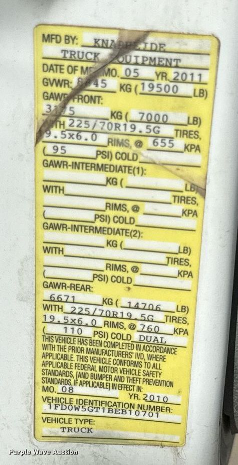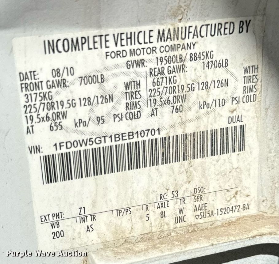 • VIN: 1FD0W5GT1BEB10701