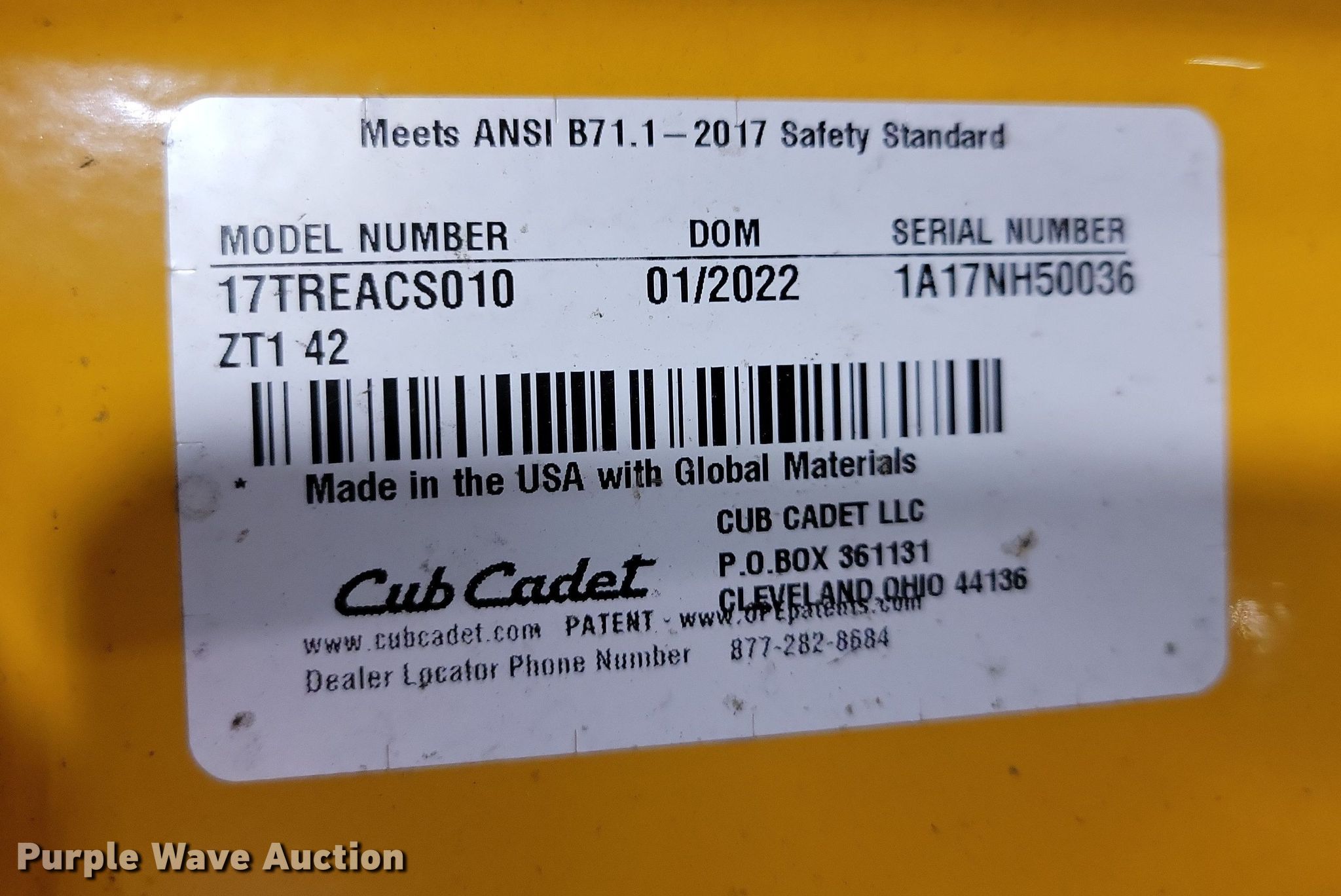 Purple Wave is selling a used Commercial Turf Mower in Iowa. This item is a 2022 Cub Cadet ZTI ZTR lawn mower with the following: Cutting width: 42", Serial: 1A17NH50036