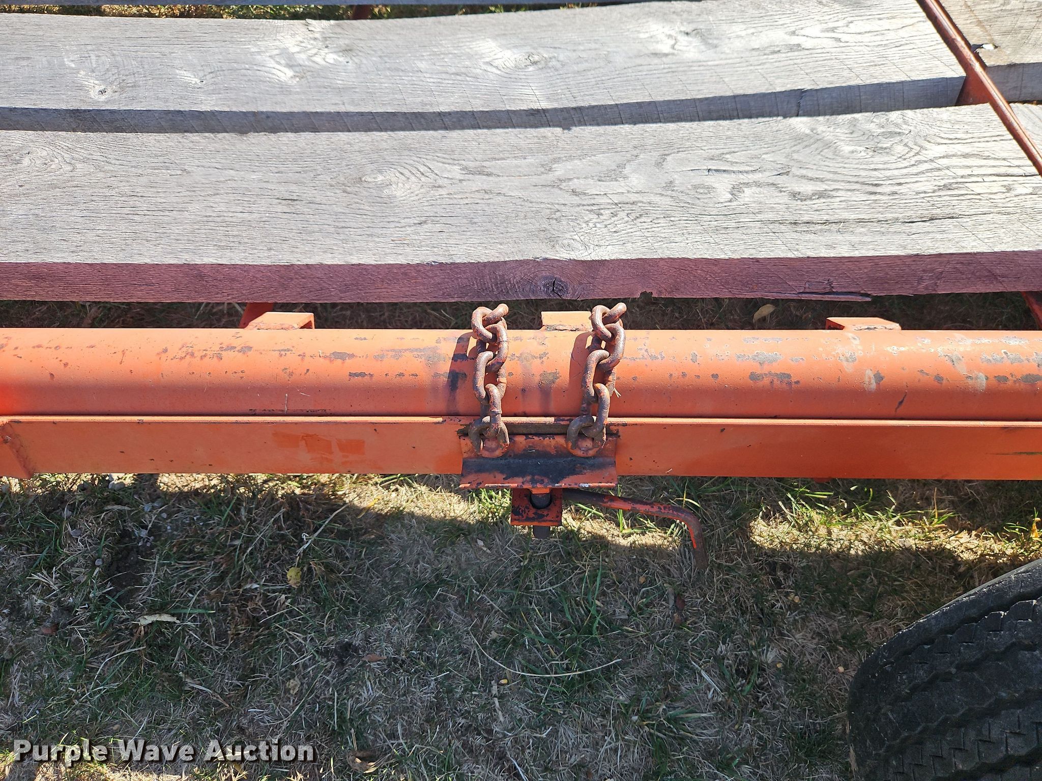 Donahue implement carrier. Dimensions. Overall: 33' L x 112" W, Deck: 28' L x 84" W. Features Deck type: Wood. Chassis Axles: Tandem. Tires Steel wheels, Size: 7.00-15. Scott Moore. Wellsville, KS 66092