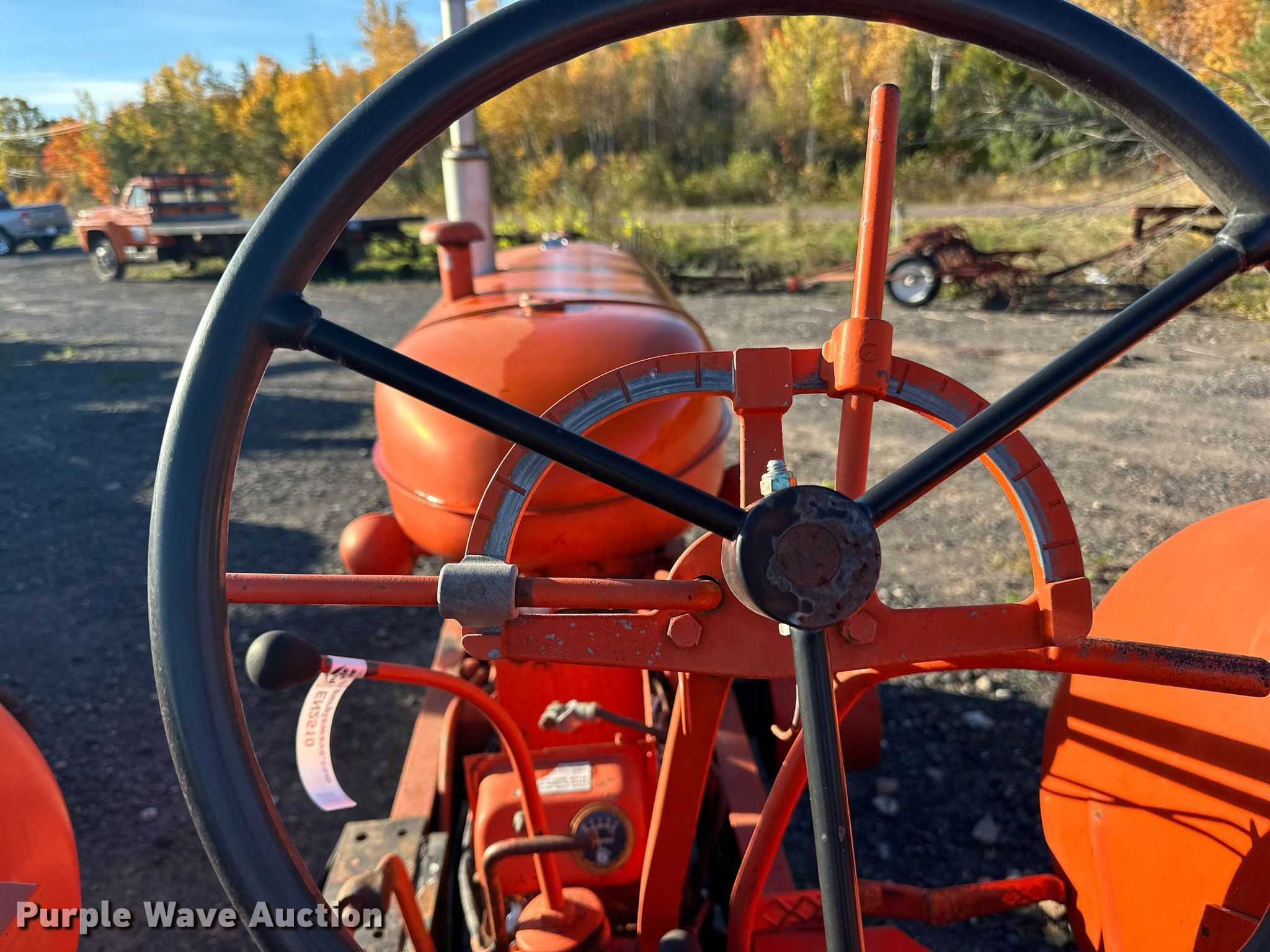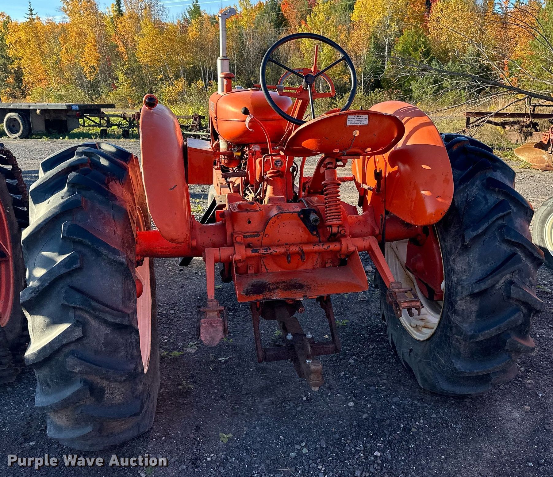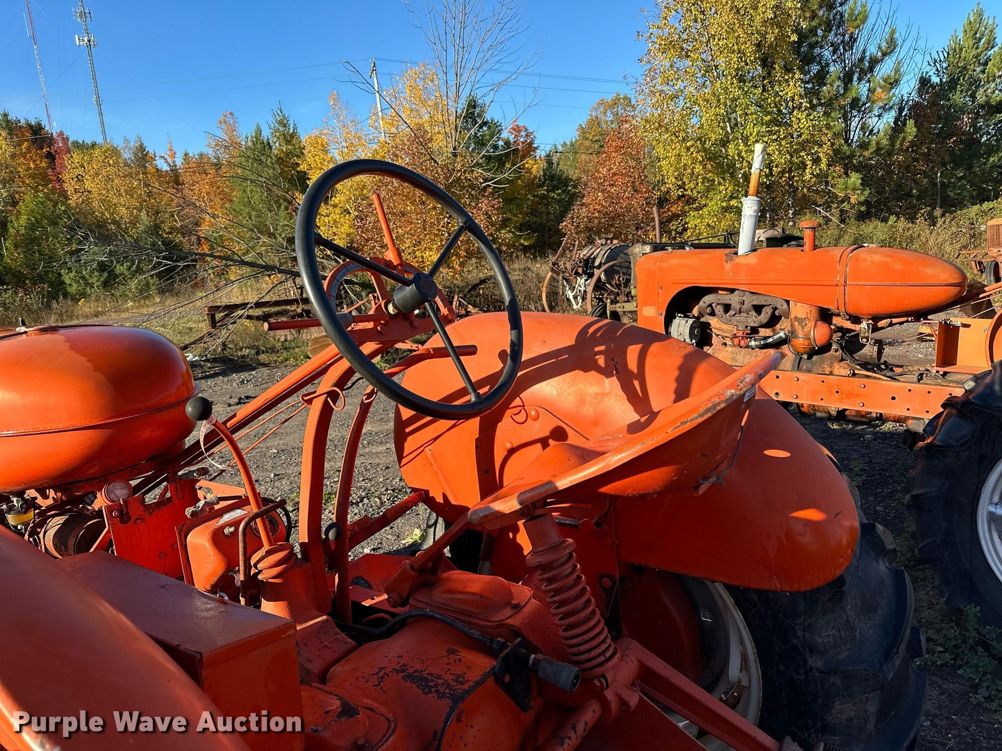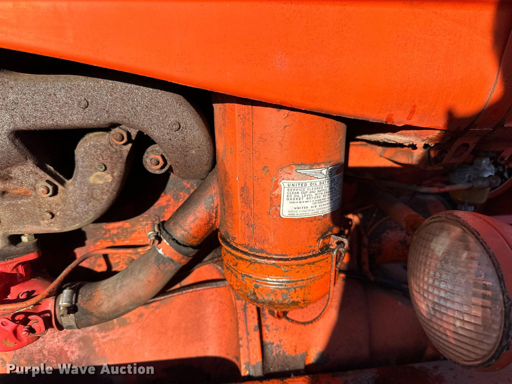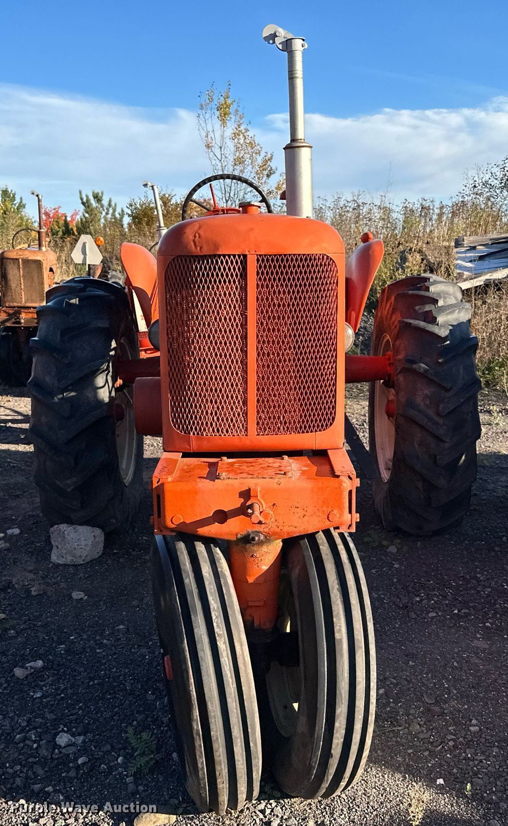 1955 Allis-Chalmers WD-45 tractor. Serial: WD197596. Engine Allis-Chalmers, Cylinders: 4, Fuel type: Gas. Transmission Manual, 4F - 1R. Features PTO: 540. Tires Front: 6.50-16, Rear: 14.9-28. Notes Dead battery, Unknown operating condition. Eds Used Parts. Houghton, MI 49931