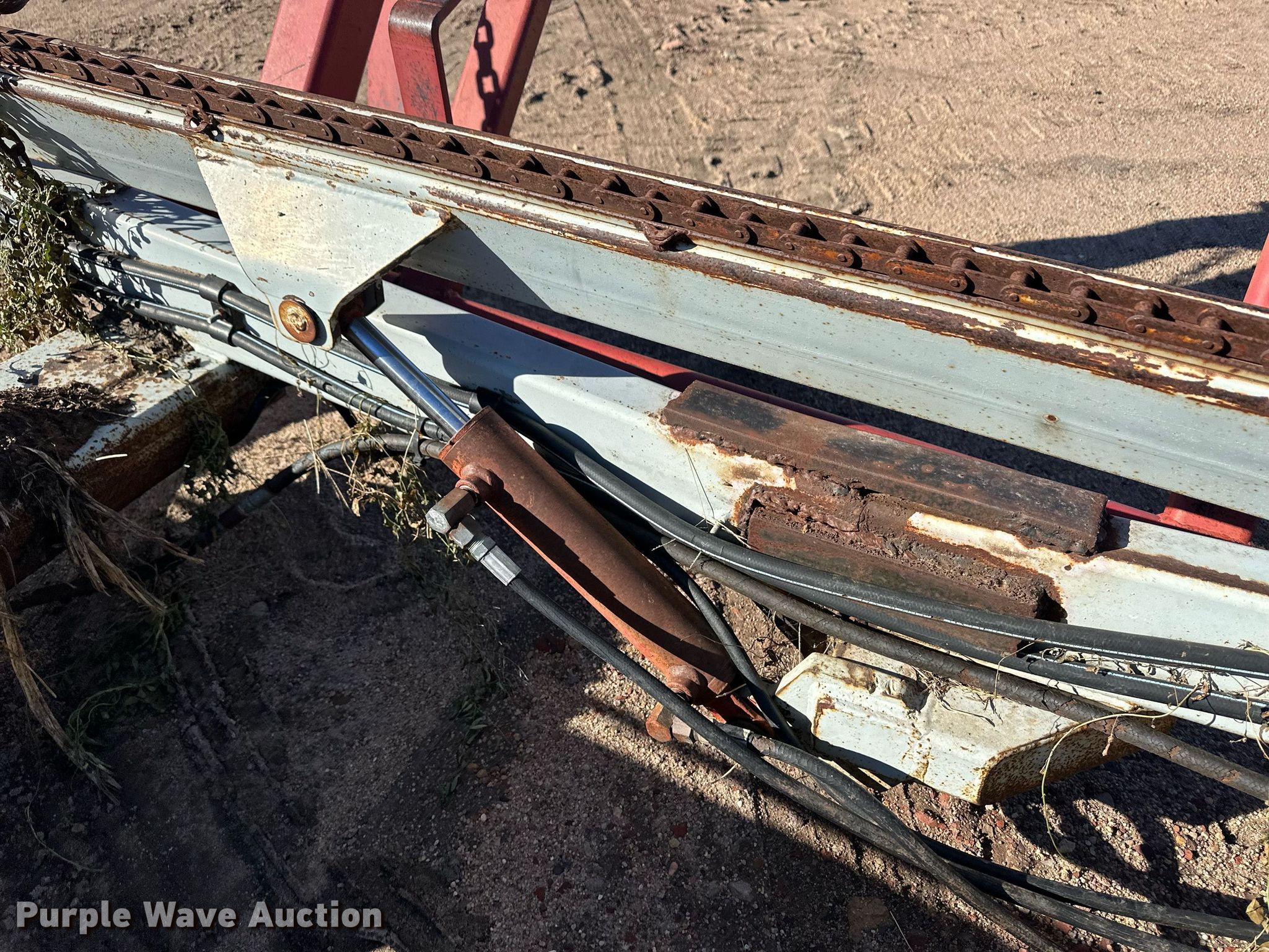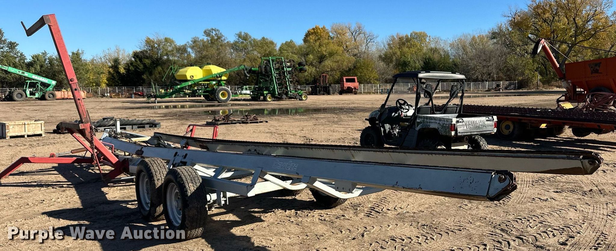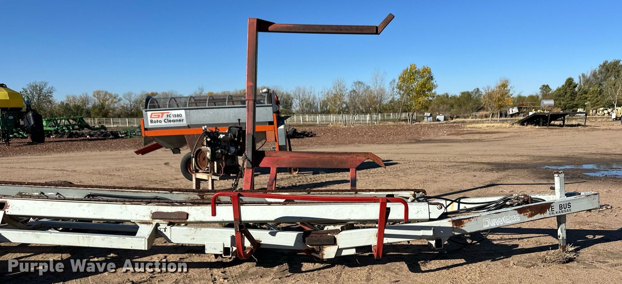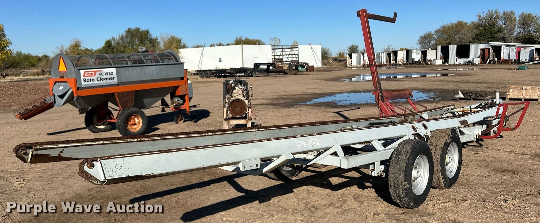 Purple Wave is selling a used Hay Handling in Kansas. This item is a DewEze Bale Bus bale stacker trailer with the following: Hydraulic bed tilt, Hydraulic chain drive, Hydraulic bale lift arm, Suspension: Spring, Axles: Tandem