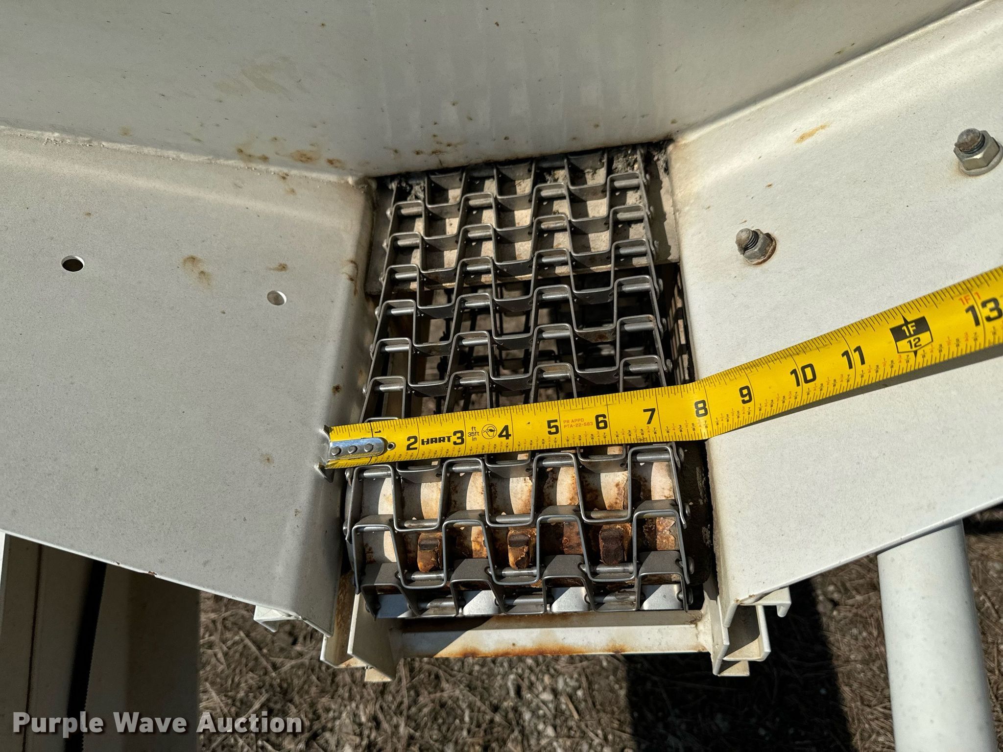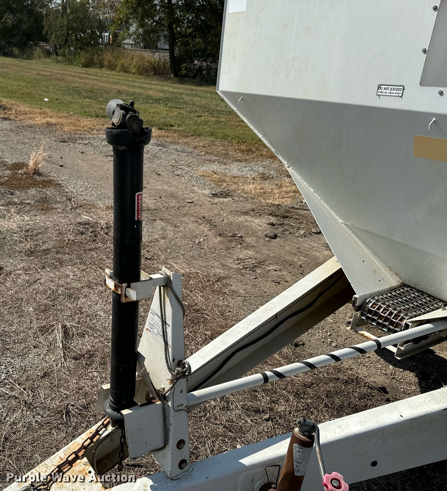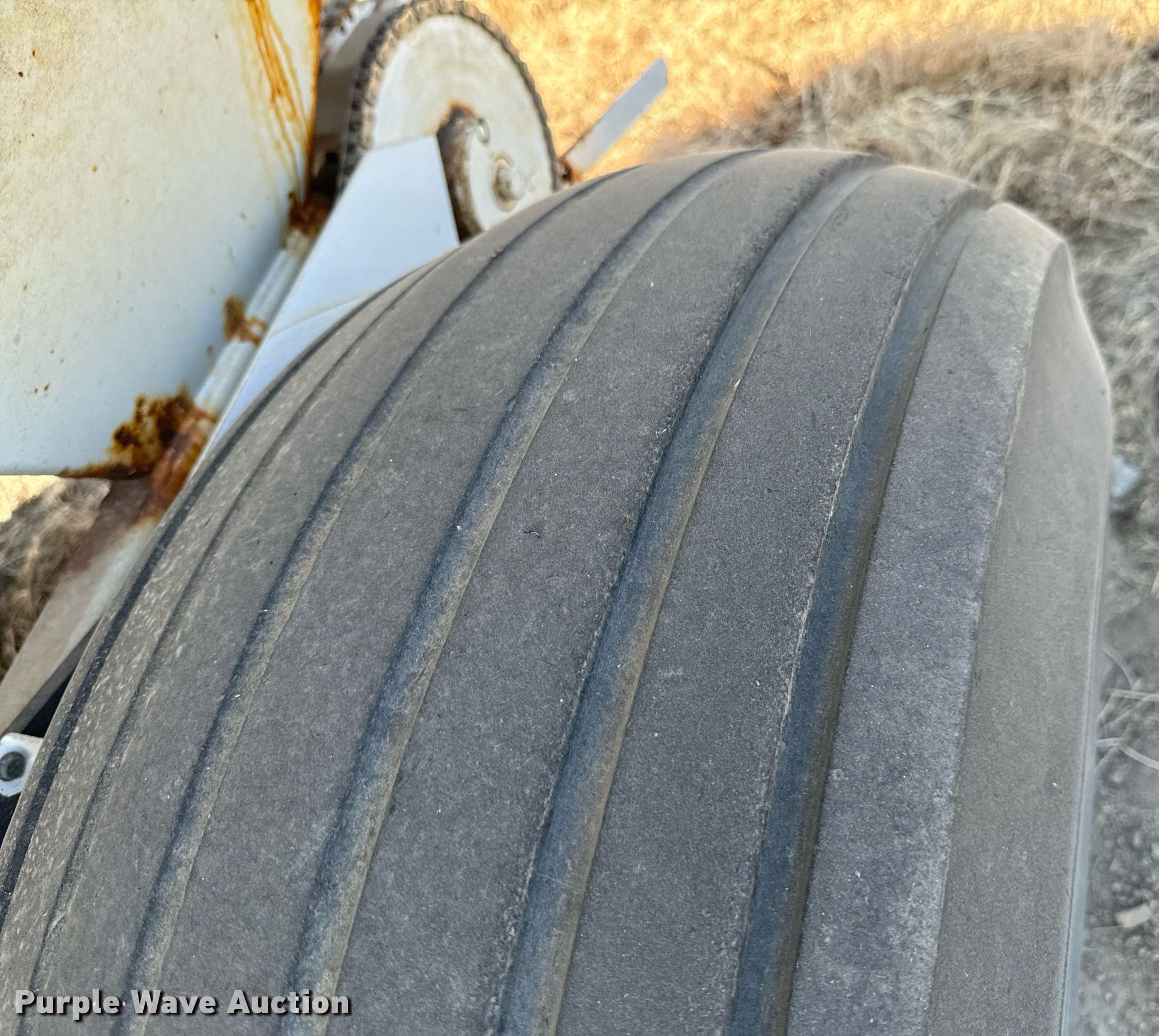 Willmar Super 800 spreader. Serial: AGCWS800ECN001201. Features PTO: 540, Dry fertilizer spreader Ground driven, Conveyor belt Width: 8".. Tires Size: 19L-16.1. Notes (2) tires and wheels missing, Non-operational unit. Farmers Cooperative Assn.. Columbus, KS 66725