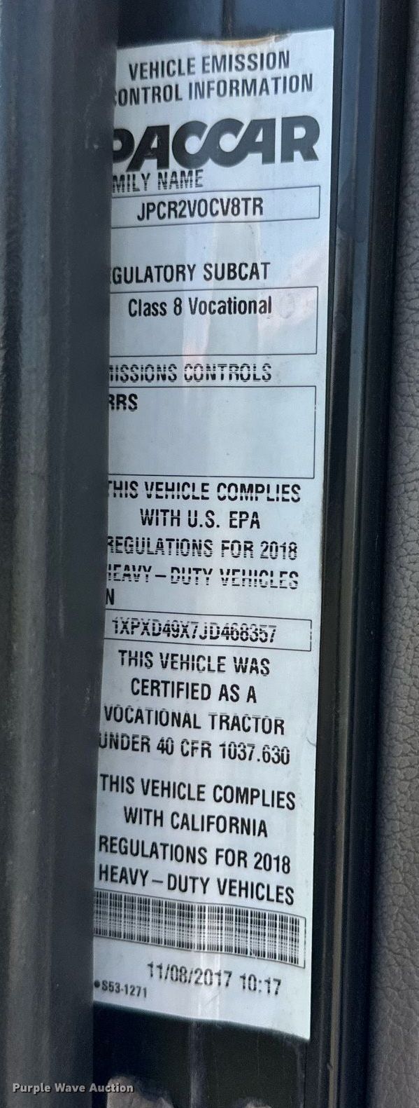 Purple Wave is selling a used Truck Tractor in Texas. This item is a 2018 Peterbilt 389 semi truck with the following: Miles: 679,274 on odometer, Hours: 16,889 on meter, Miles or hours may vary, unit still in use, VIN: 1XPXD49X7JD468357