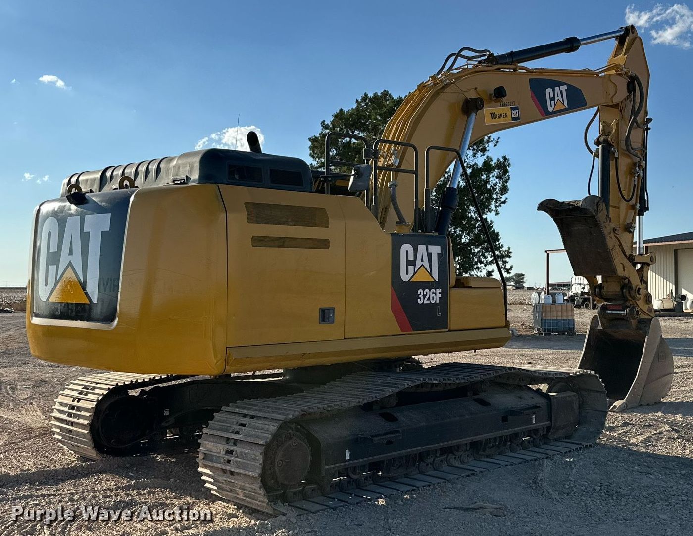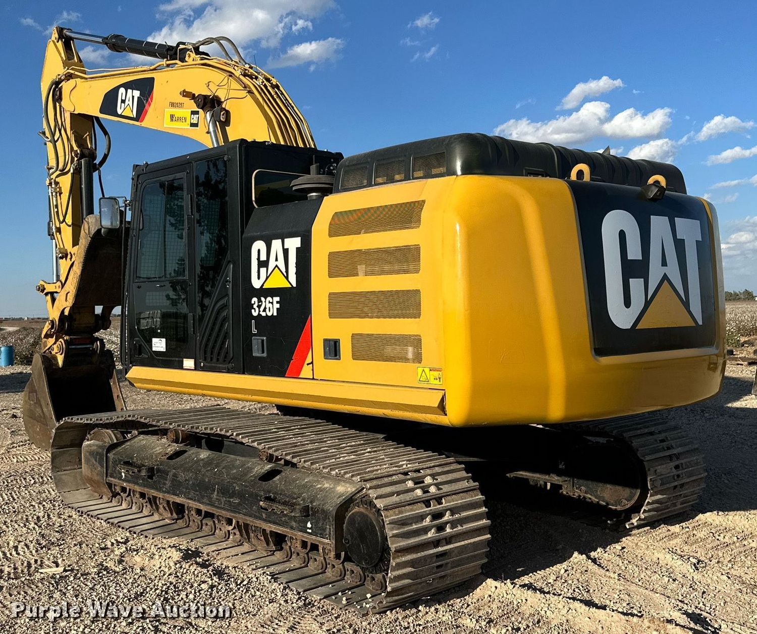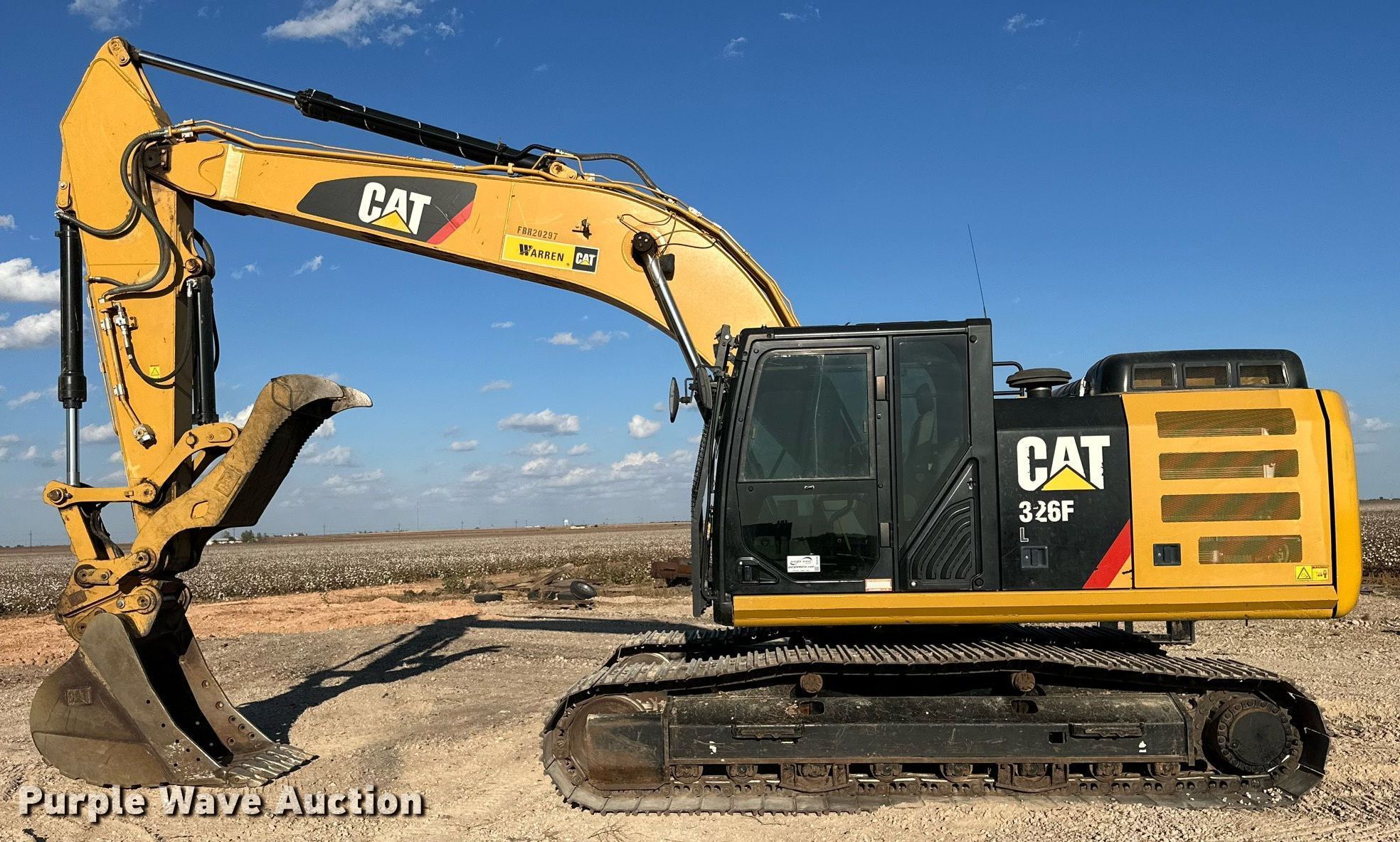 Purple Wave is selling a used Hydraulic Excavator in Texas. This item is a 2018 Caterpillar 326F L excavator with the following: Hours: 4,509 on meter, Serial: CAT0326FTFBR20297