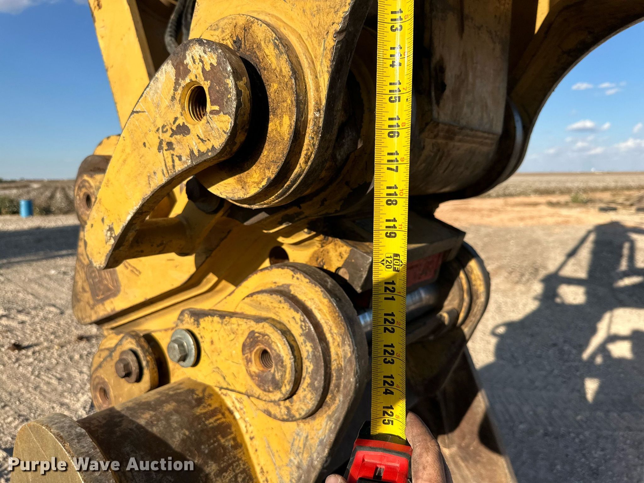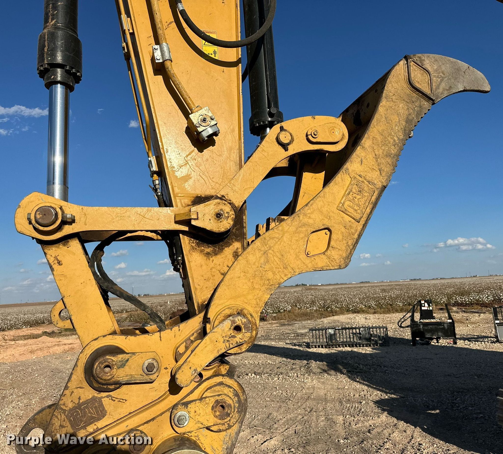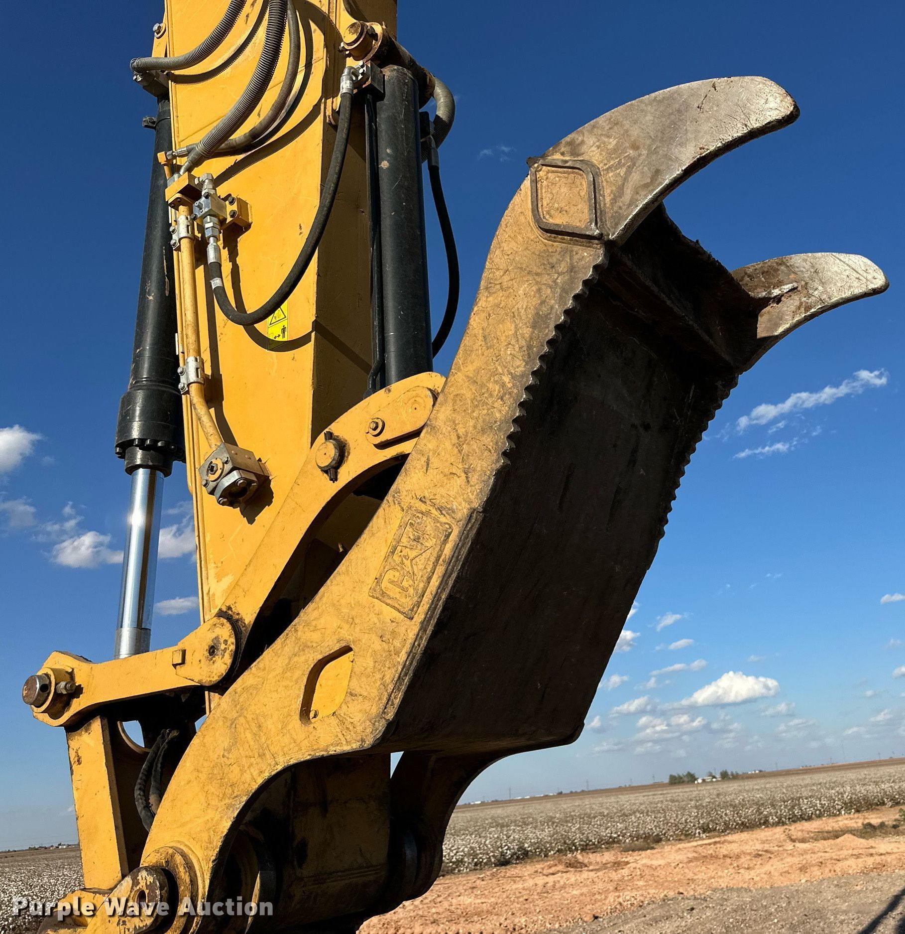 2018 Caterpillar 326F L excavator. Hours: 4,509 on meter, Serial: CAT0326FTFBR20297. Engine Caterpillar C7.1, Displacement: 7.1L, Cylinders: 6, Fuel type: Diesel. Transmission Hydrostatic, Two speed travel. Operators station Enclosed cab, AC, Heat, Backup camera. Features Auxiliary hydraulics, Boom Standard, Stick Stick length: 10', Quick coupler: Hydraulic, Thumb: Hydraulic, Bucket Width: 42", Teeth: 5. Tracks Width: 30", Steel, Grouser pads: Triple. Hargrave Demolition. Slaton, TX 79364