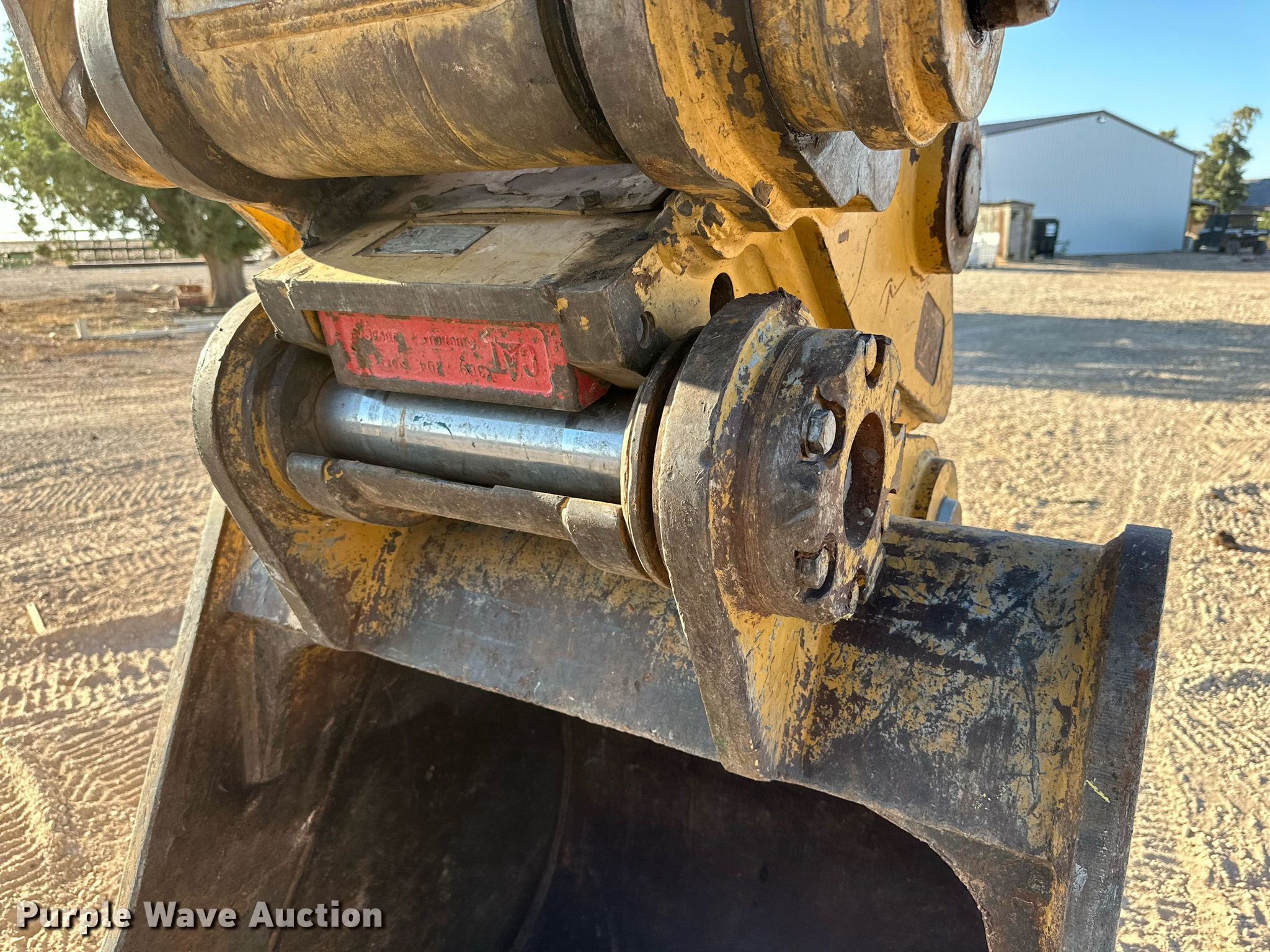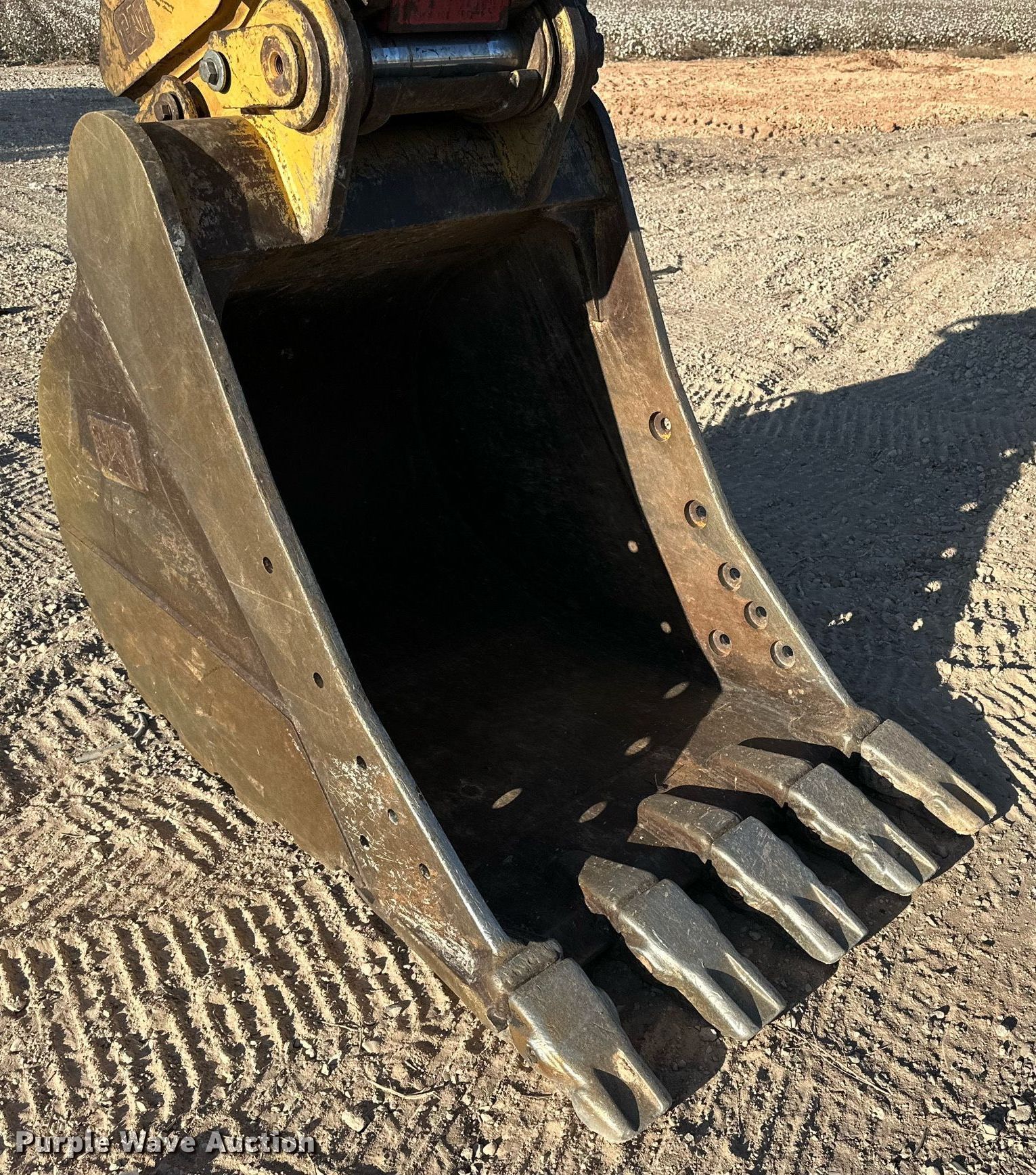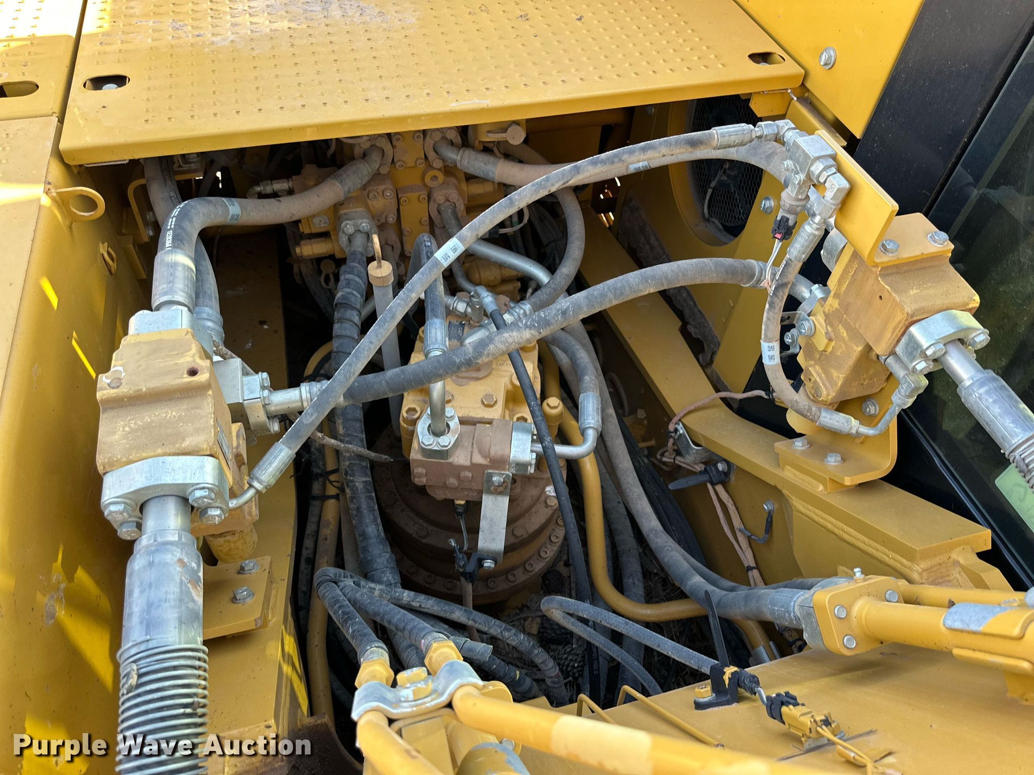 2018 Caterpillar 326F L excavator. Hours: 4,509 on meter, Serial: CAT0326FTFBR20297. Engine Caterpillar C7.1, Displacement: 7.1L, Cylinders: 6, Fuel type: Diesel. Transmission Hydrostatic, Two speed travel. Operators station Enclosed cab, AC, Heat, Backup camera. Features Auxiliary hydraulics, Boom Standard, Stick Stick length: 10', Quick coupler: Hydraulic, Thumb: Hydraulic, Bucket Width: 42", Teeth: 5. Tracks Width: 30", Steel, Grouser pads: Triple. Hargrave Demolition. Slaton, TX 79364
