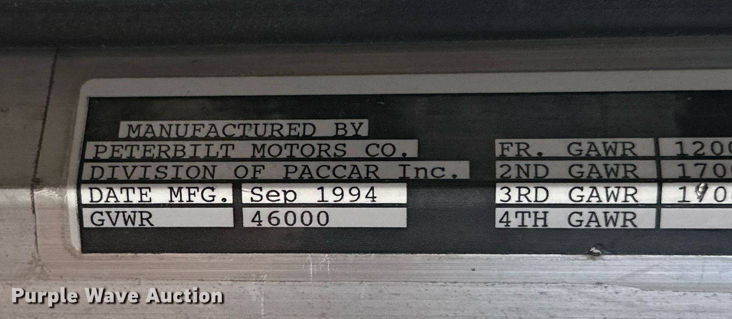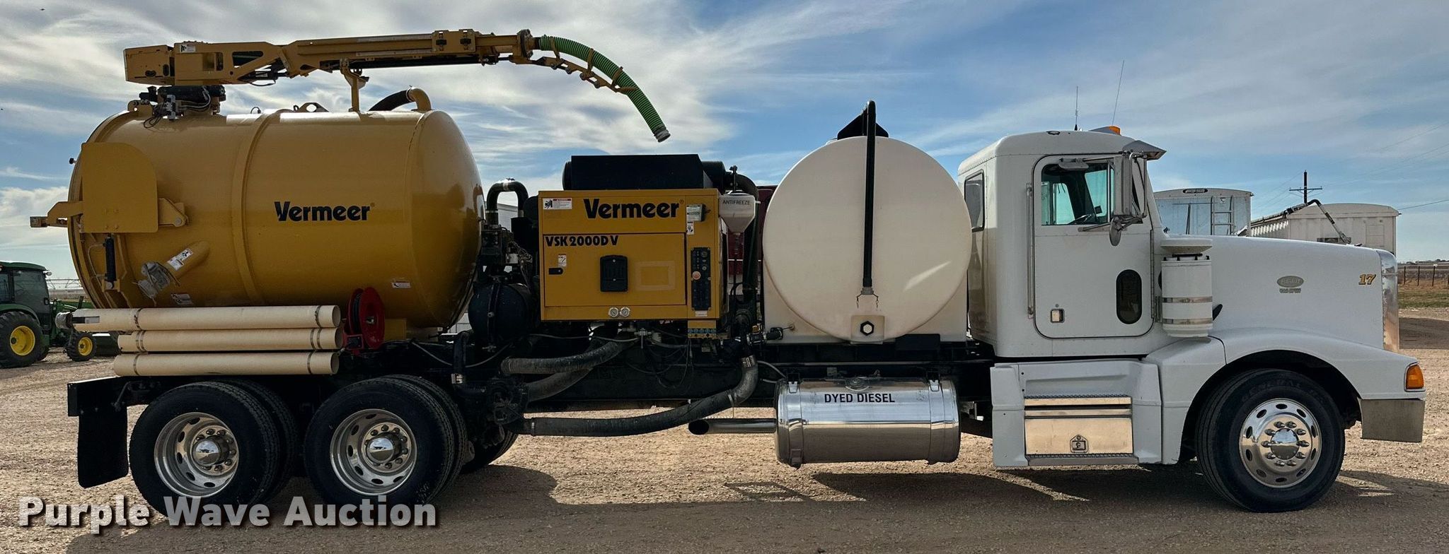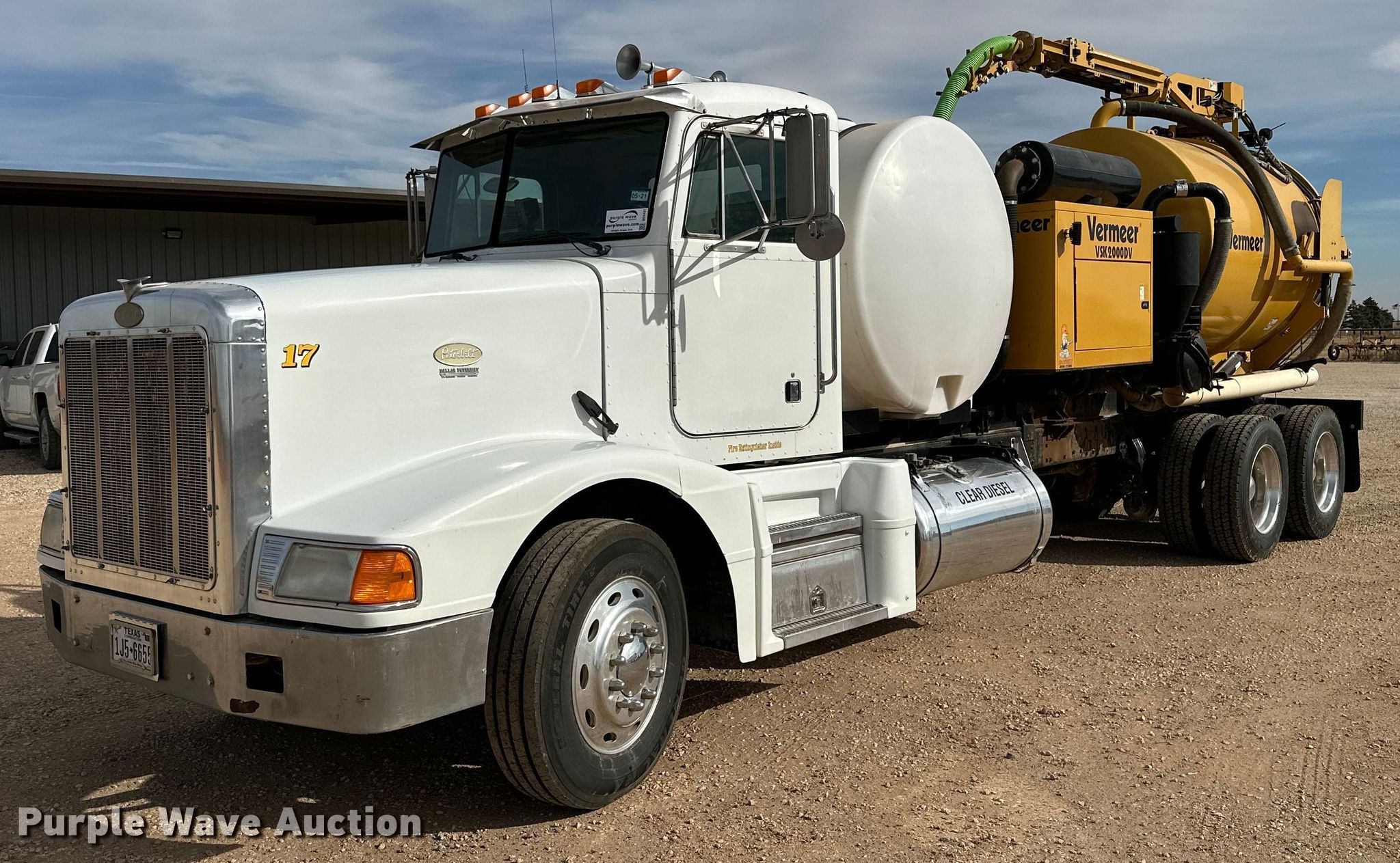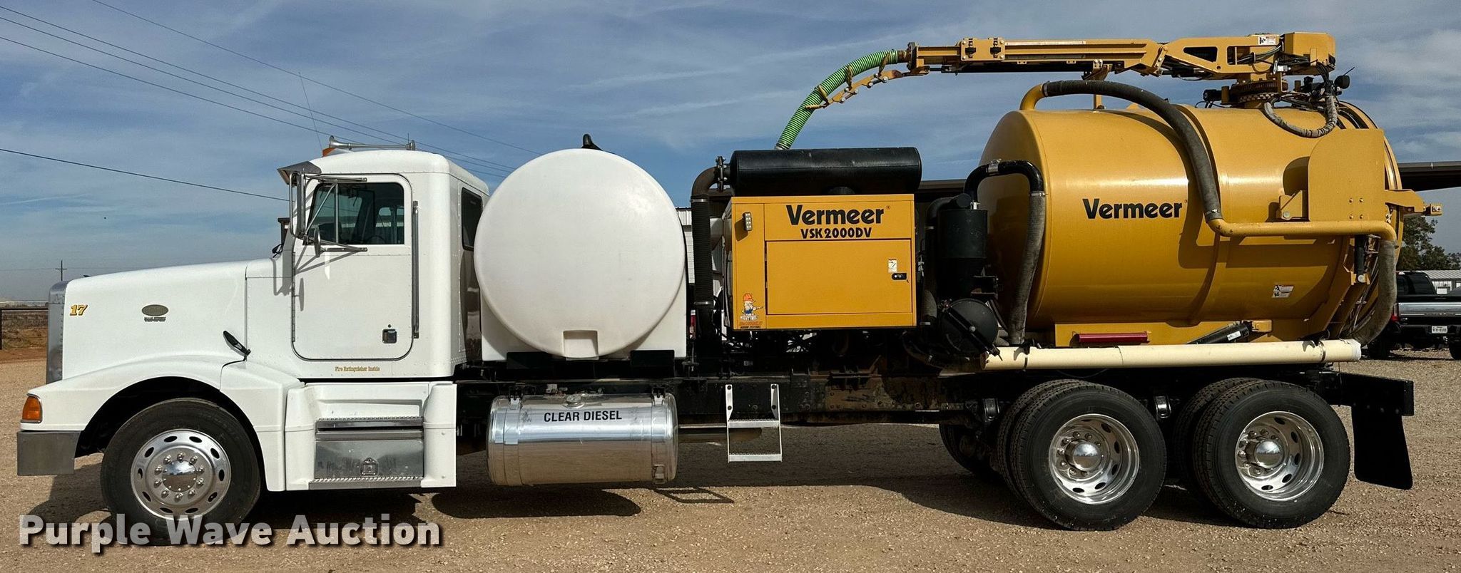 1995 Peterbilt 377 hydrovac truck. Miles: 5,109 on odometer Actual mileage unknown, VIN: 1XPCD68X5SD377990. Engine Cummins N14, Displacement: 14.0L, Cylinders: 6, Fuel type: Diesel. Transmission Eaton Fuller, Manual, Speed: 10. Chassis Axles: Tandem, Suspension: Air, Brakes: Air, PTO, GVWR: 46,000 lbs. Interior AC, Heat, Heated mirrors, Cruise control. Features Tank bed 2020 Vermeer VSK2000DV, Rear outlet: 7", Engine Cylinders: 4, Fuel type: Diesel, Hours: 3,731, Hose reel Telescopic boom Diameter: 4", Remote control, Water tank Capacity: 925 gallons. Tires Size: 285/75R24.5. Notes ECM replaced. Texas title. Mileage has not been verified. Exempt will be written in the odometer disclosure on the title. Lubbock, TX 79364