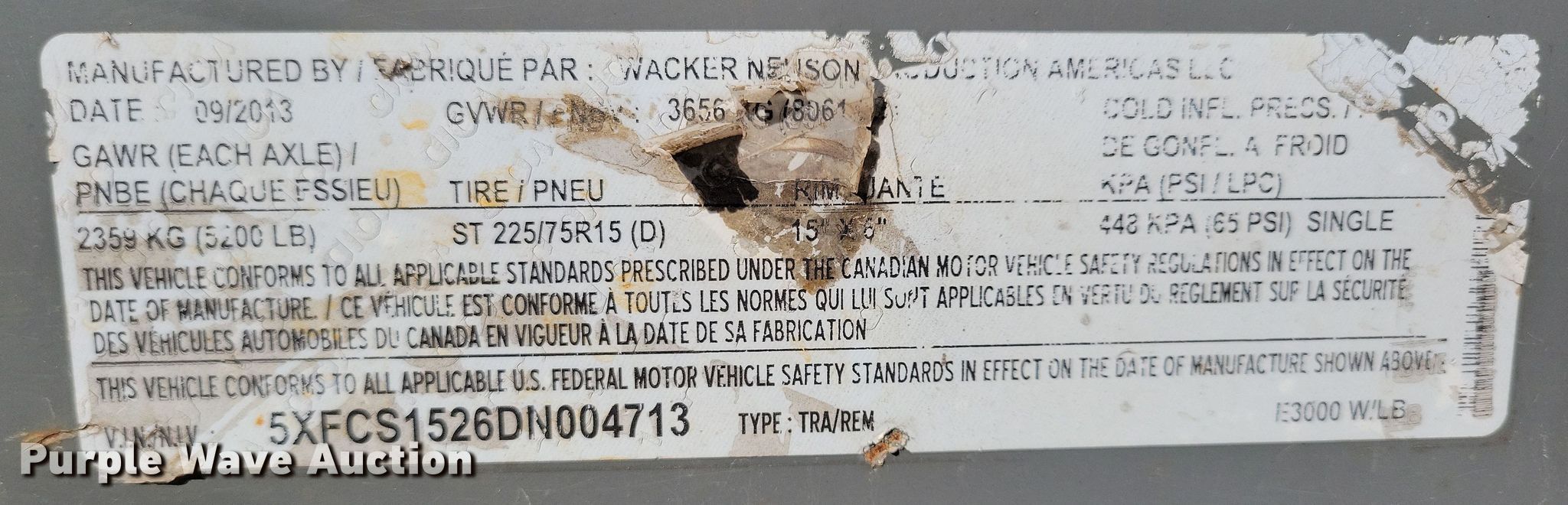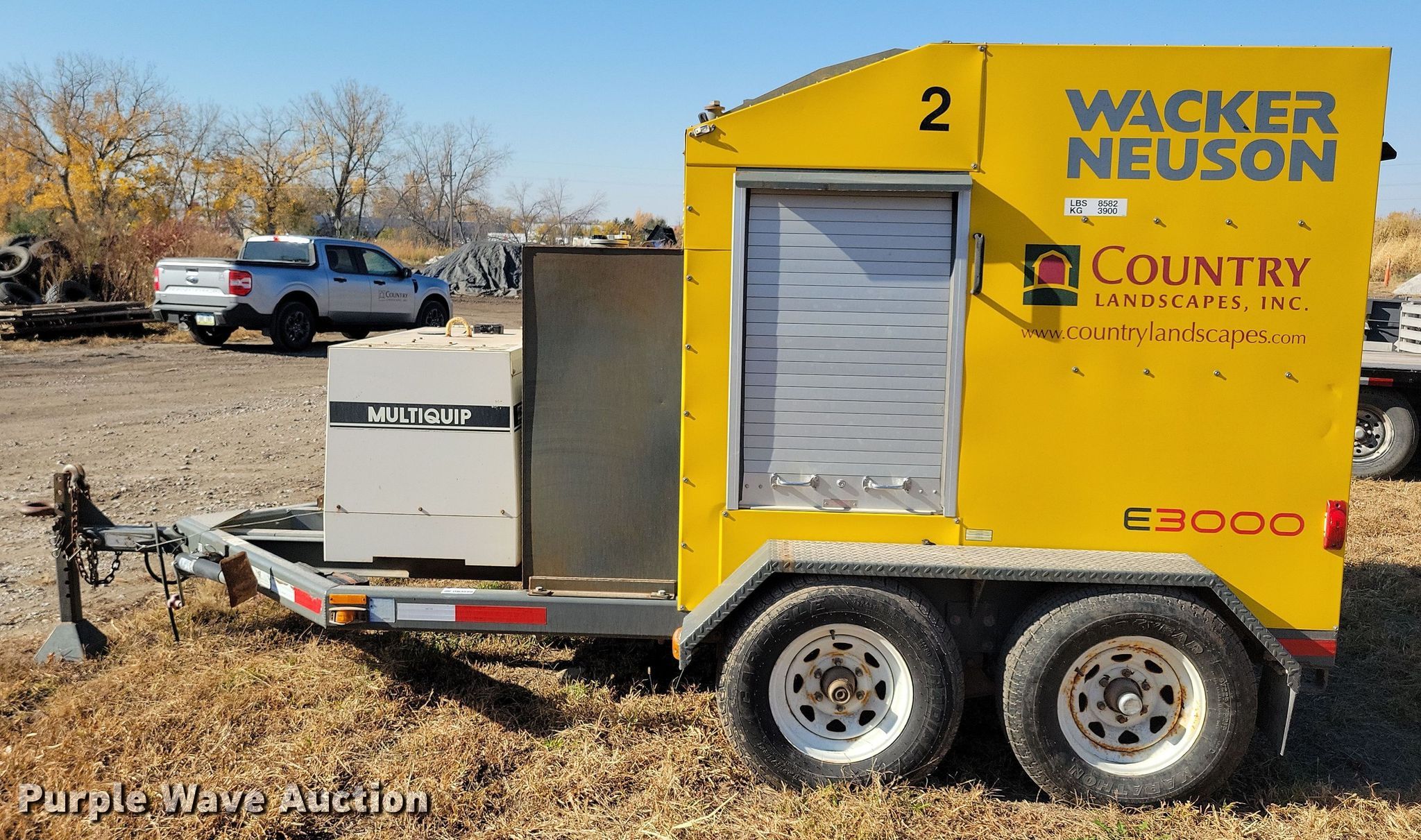 2013 Wacker Neuson E3000 ground heater. Hours: 4,821 on meter, Hours: 5,073 on second meter, VIN: 5XFCS1526DN004713. Engine Kubota Z482, Displacement:.479L, Cylinders: 2, Fuel type: Diesel, kW: 9.2. Features (2) hose reels, Generator Multiquip Whisperwatt 7000 Serial: 5702924, Volts: 120/240, Phase: Single, Watts: 7,000.. Tires Size: ST225/75R15. This is worksite support equipment and will not come with a title. Transfer of ownership documentation will be a bill of sale. Country Landscapes, Inc.. Ames, IA 50010