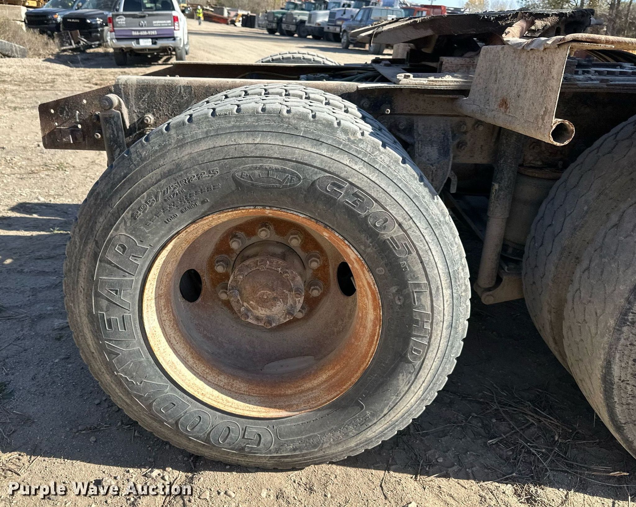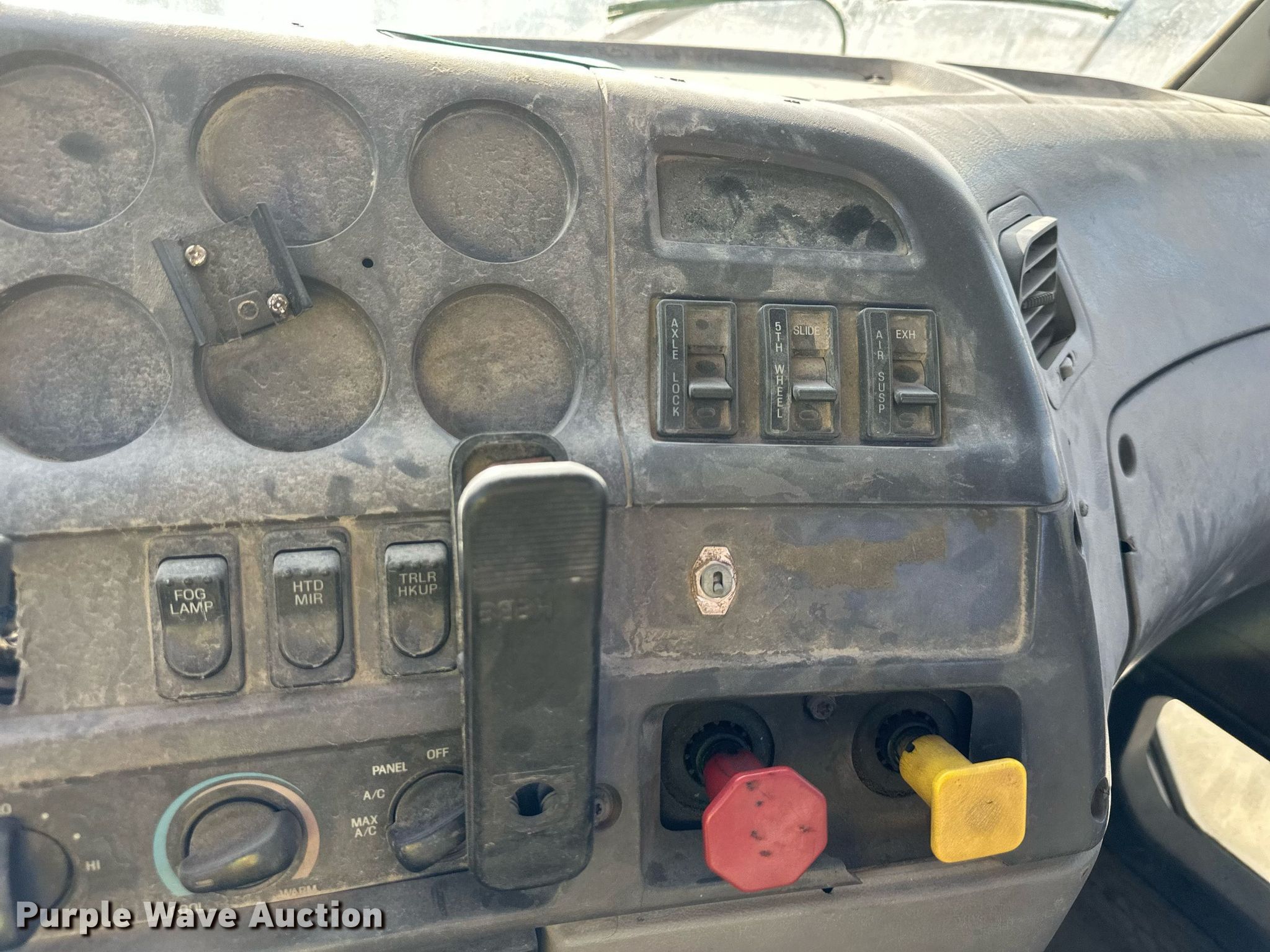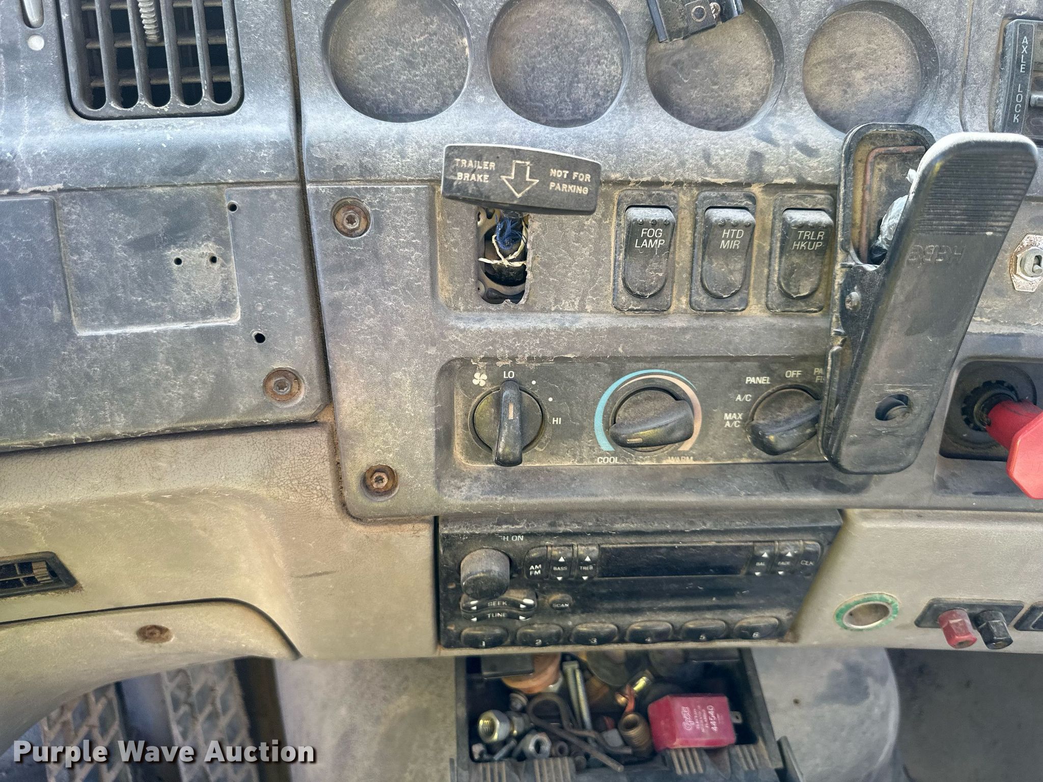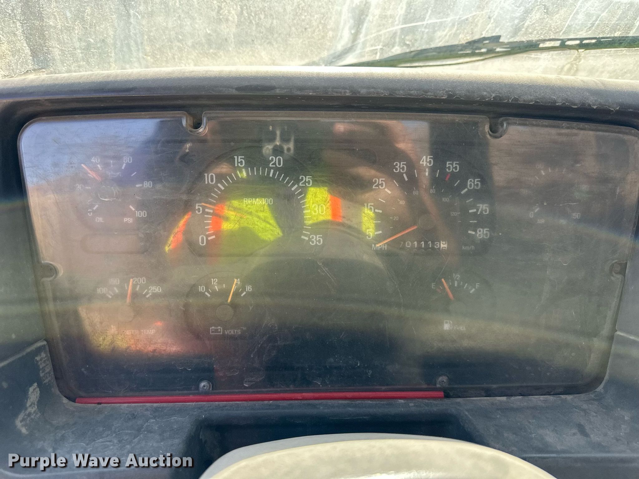 1998 Ford AT9513 semi truck. Miles: 701,113 on odometer, VIN: 1FTYY96W1WVA32026. Engine Caterpillar 3406, Displacement: 14.6L, Cylinders: 6, Fuel type: Diesel. Transmission Manual. Chassis Axles: Tandem, Differential lock: Inter-axle, Suspension: Air Dump valves, Brakes: Air, PTO, Wet kit, Truck chassis: 15'. Interior AC, Heat. Features Deck plate: Aluminum, Fifth wheel type: Sliding, Fuel tank: Dual. Tires Front: 11R22.5, Rear: 295/75R22.5. Notes Brake pod issues. Iowa title. BMC Aggregates LC. Mason City, IA 50401