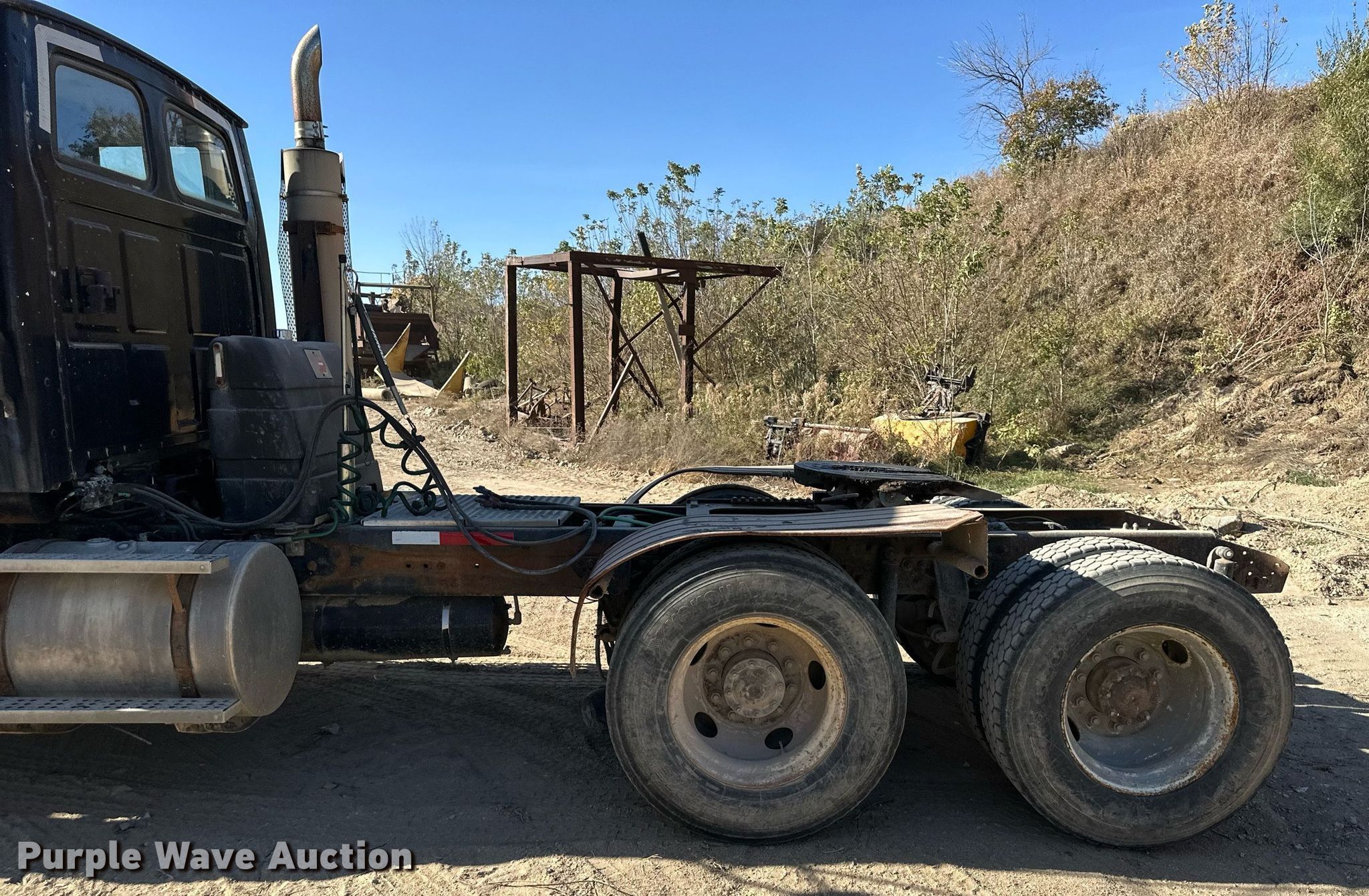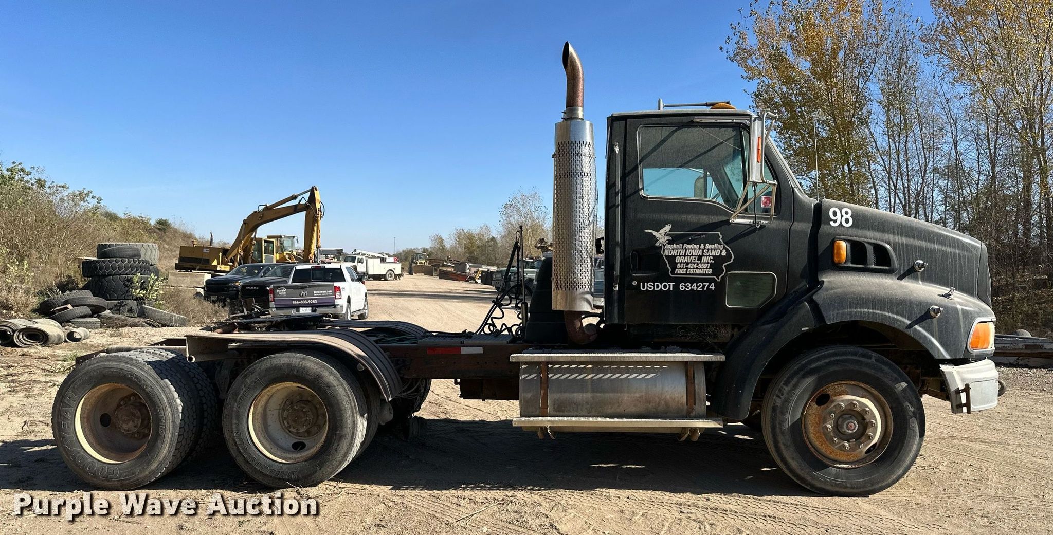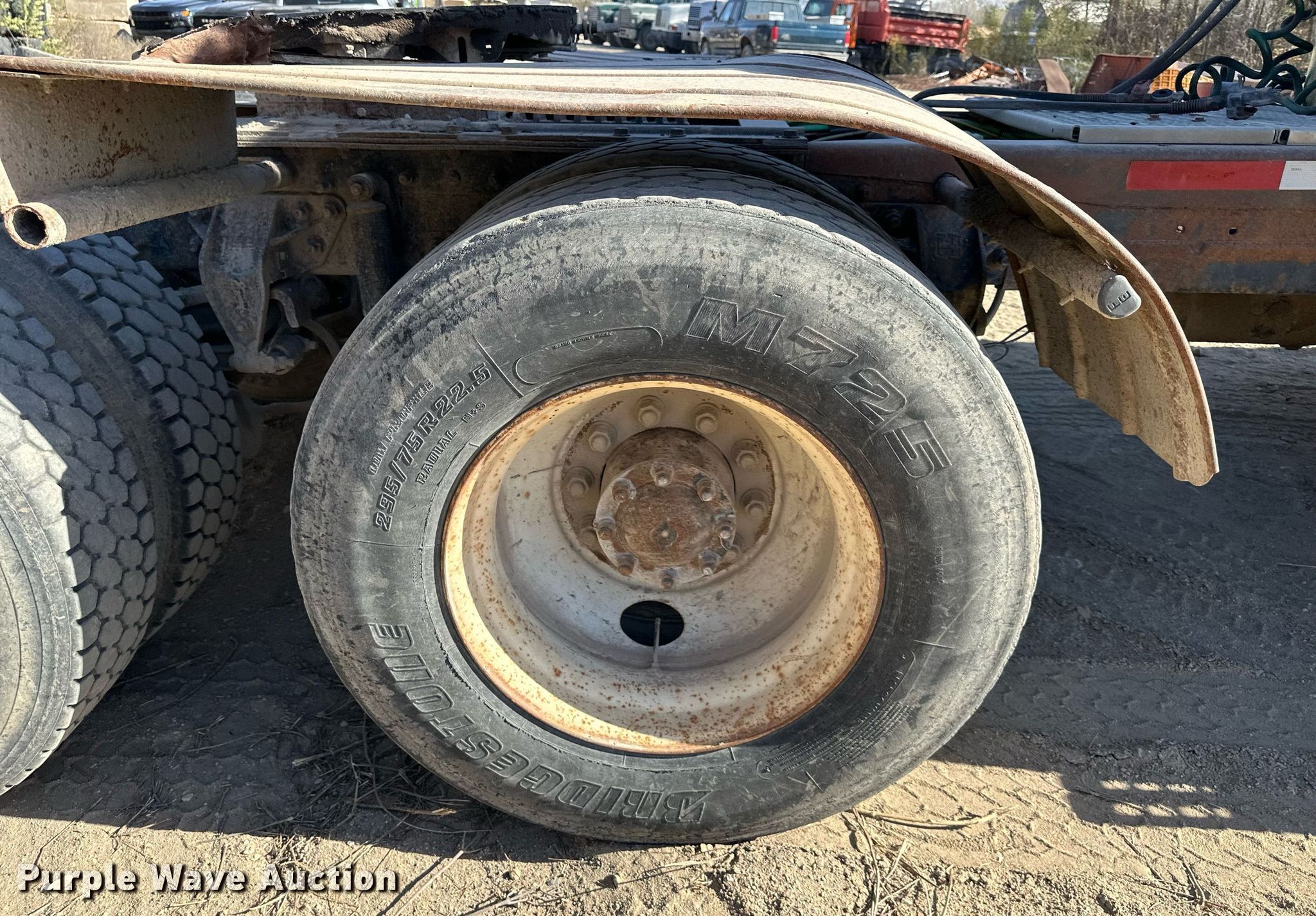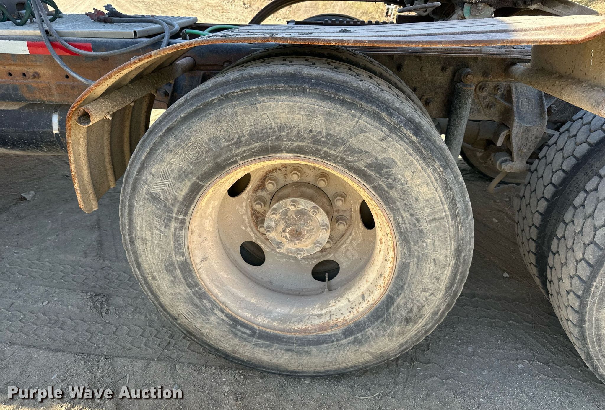 1998 Ford AT9513 semi truck. Miles: 701,113 on odometer, VIN: 1FTYY96W1WVA32026. Engine Caterpillar 3406, Displacement: 14.6L, Cylinders: 6, Fuel type: Diesel. Transmission Manual. Chassis Axles: Tandem, Differential lock: Inter-axle, Suspension: Air Dump valves, Brakes: Air, PTO, Wet kit, Truck chassis: 15'. Interior AC, Heat. Features Deck plate: Aluminum, Fifth wheel type: Sliding, Fuel tank: Dual. Tires Front: 11R22.5, Rear: 295/75R22.5. Notes Brake pod issues. Iowa title. BMC Aggregates LC. Mason City, IA 50401