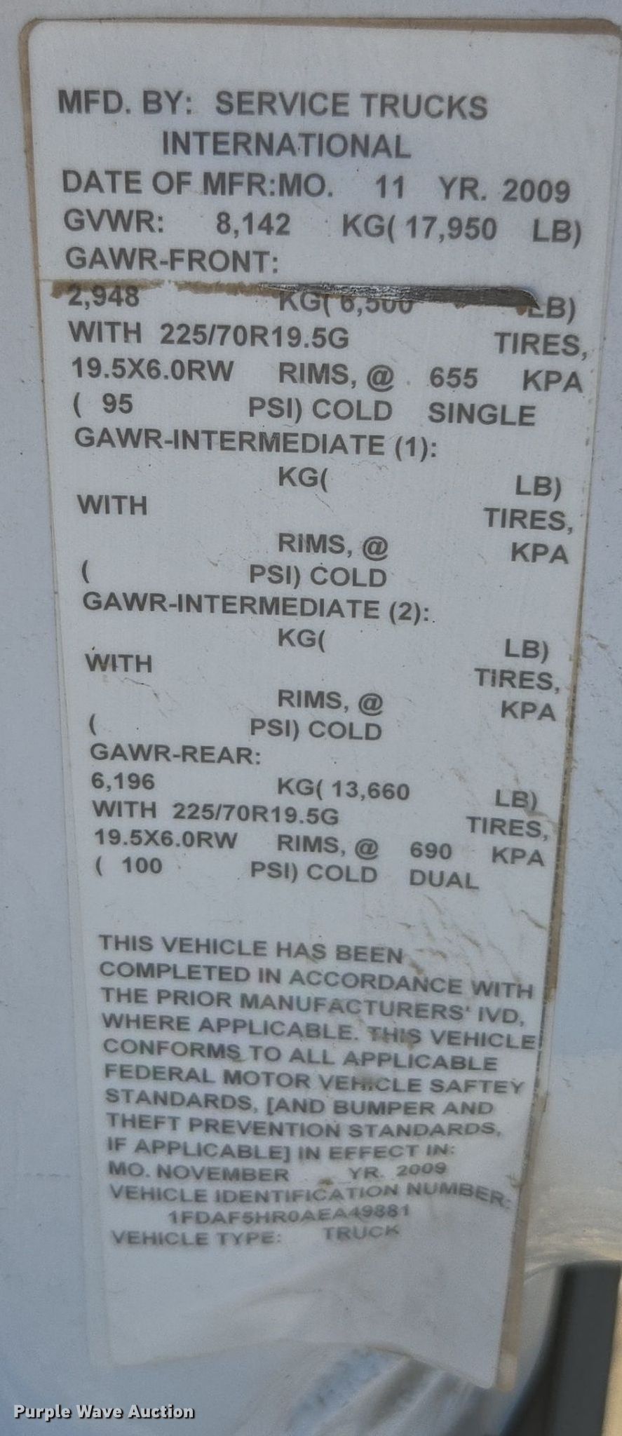 - VIN: 1FDAF5HR0AEA49881