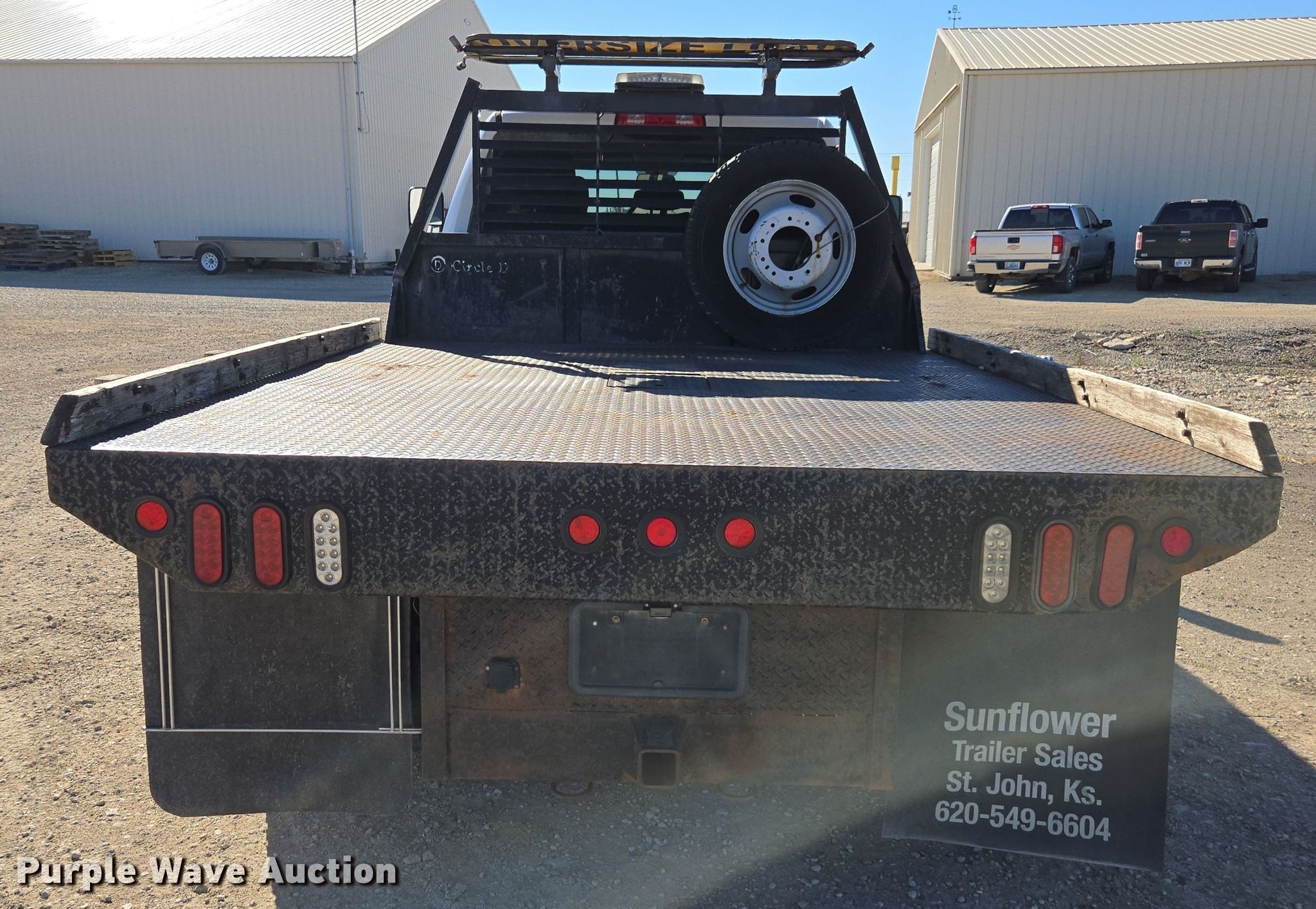 2014 Dodge Ram 4500HD Crew Cab flatbed truck. Miles: 160,766 on odometer, VIN: 3C7WRLEL7EG175713. Engine Cummins, Displacement: 6.7L, Cylinders: 8, Fuel type: Diesel. Transmission Automatic. Chassis Four wheel drive, Axles: Single, Suspension: Spring, Brakes: Hydraulic. Interior AC, Heat, Heated mirrors, Power windows, Power locks, Cruise control, Auxiliary controls, Brake controller. Features Flatbed Circle D, 9' 4" L x 96" W, Removable sides, Hitch: Gooseneck. Tires Size: 225/70R19.5. Kansas title. KanEquip Inc.. Wamego, KS 66547